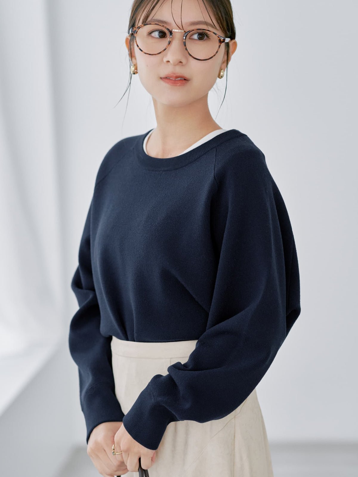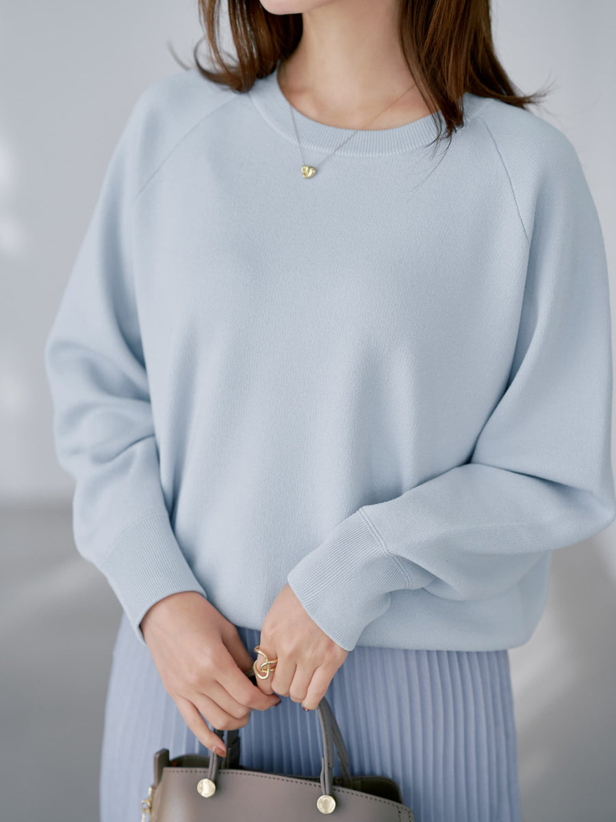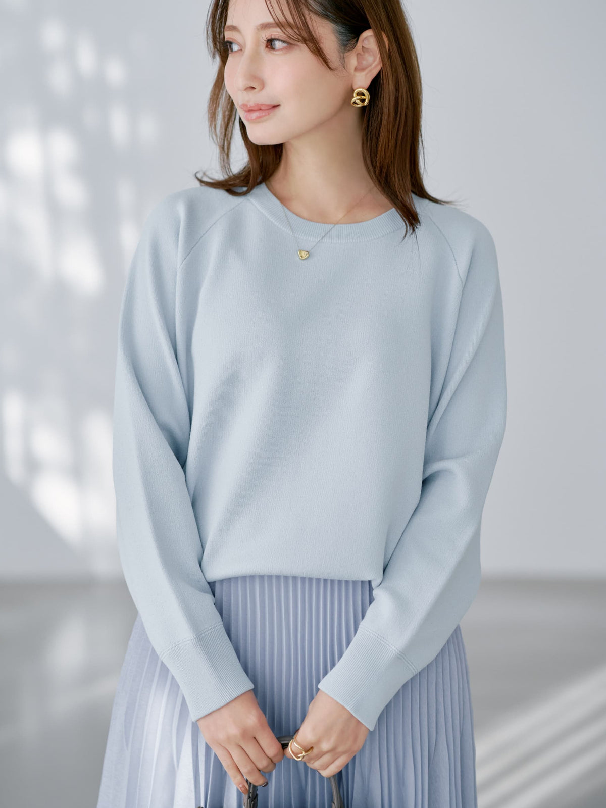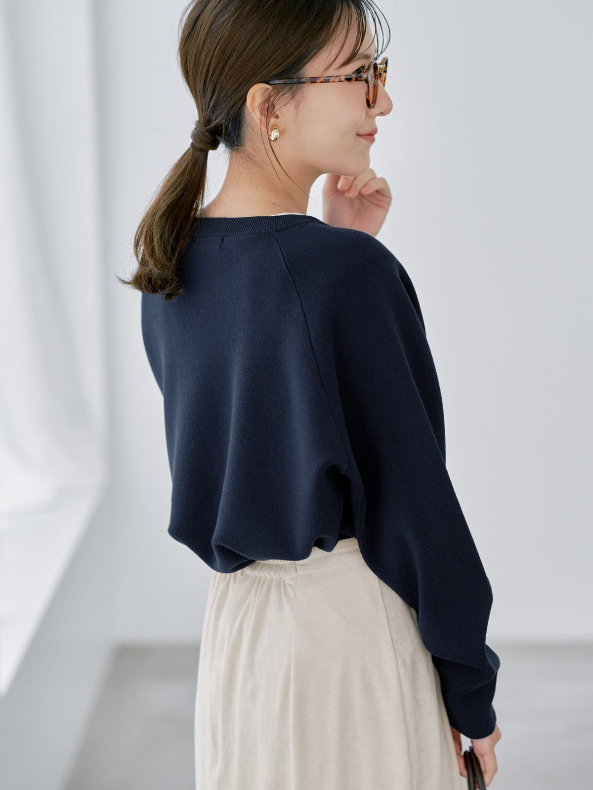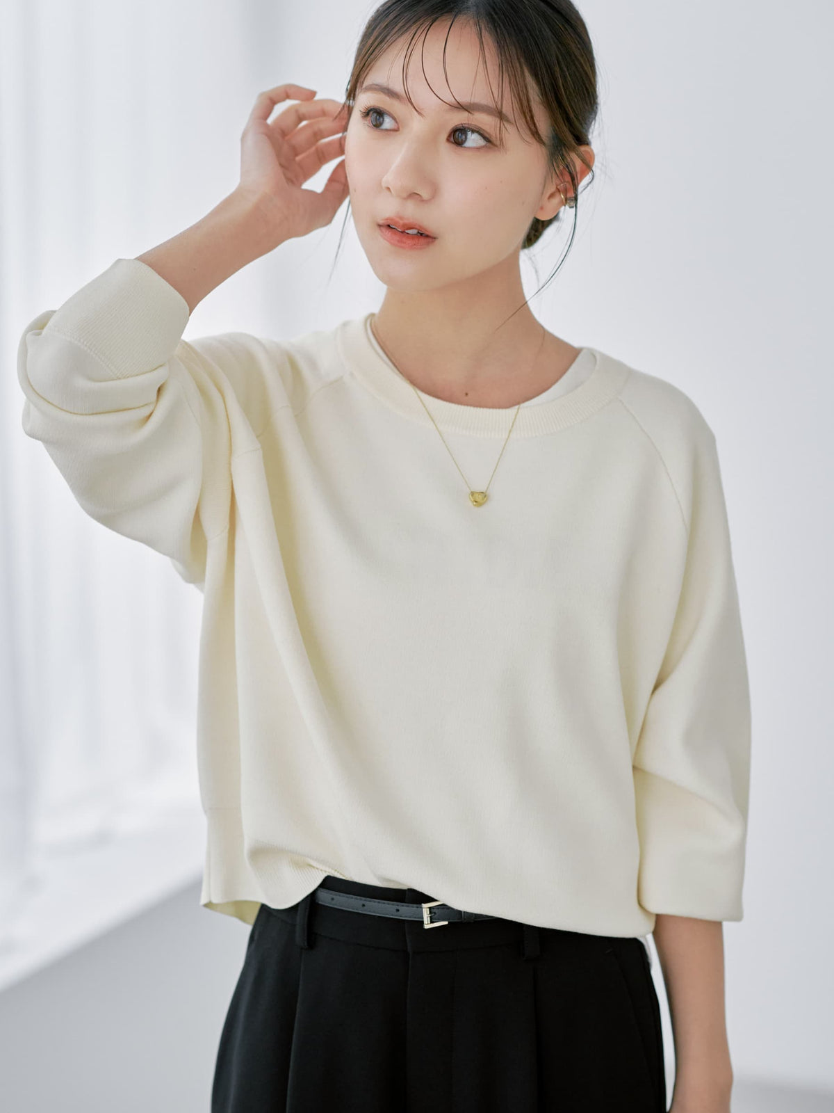 ベーシックなニットトップスは、スカートからパンツまでどんなボトムスとも好相性。スウェットよりもカジュアルになり過ぎないため、幅広いシーンで着回していただけます。