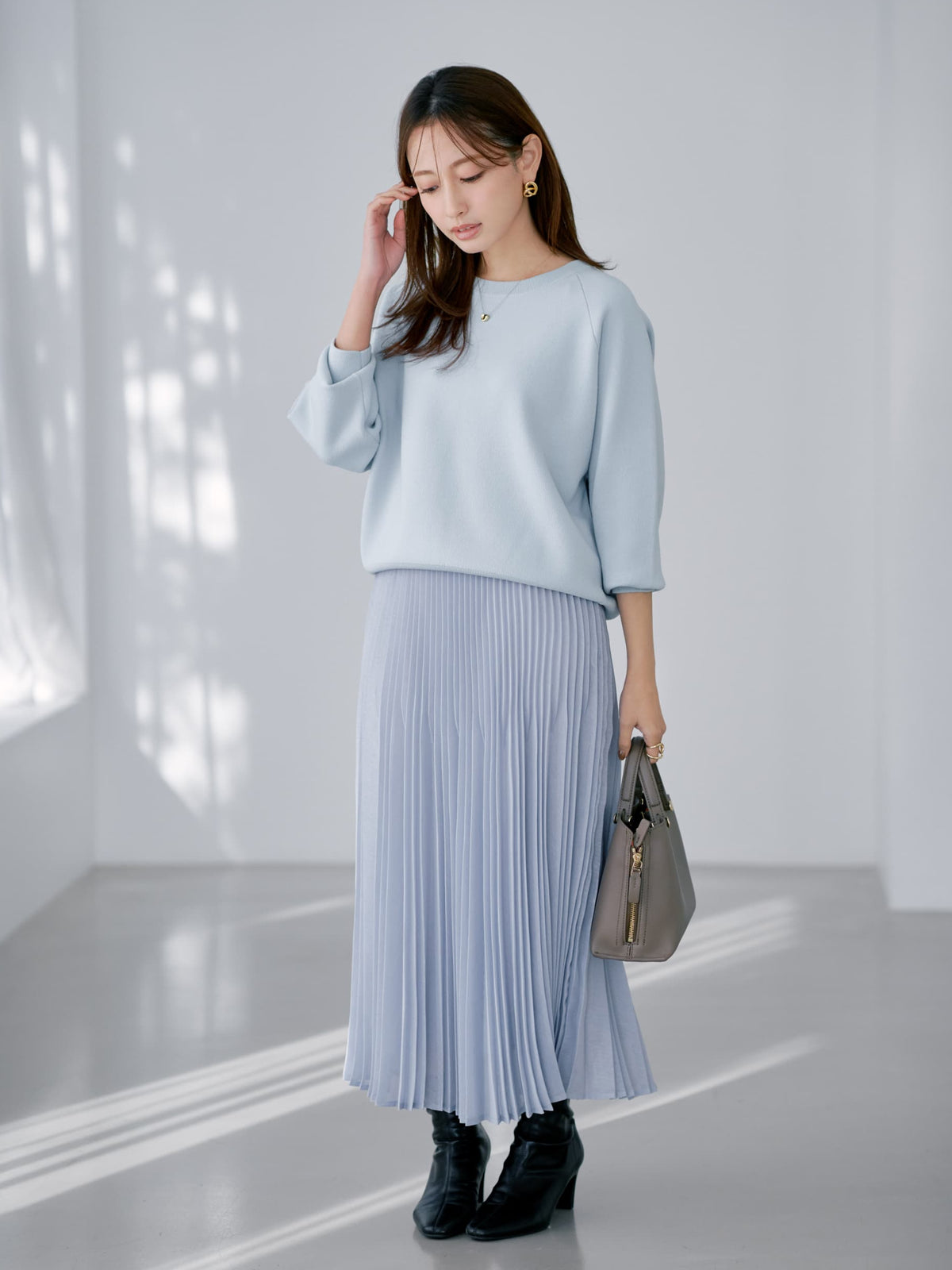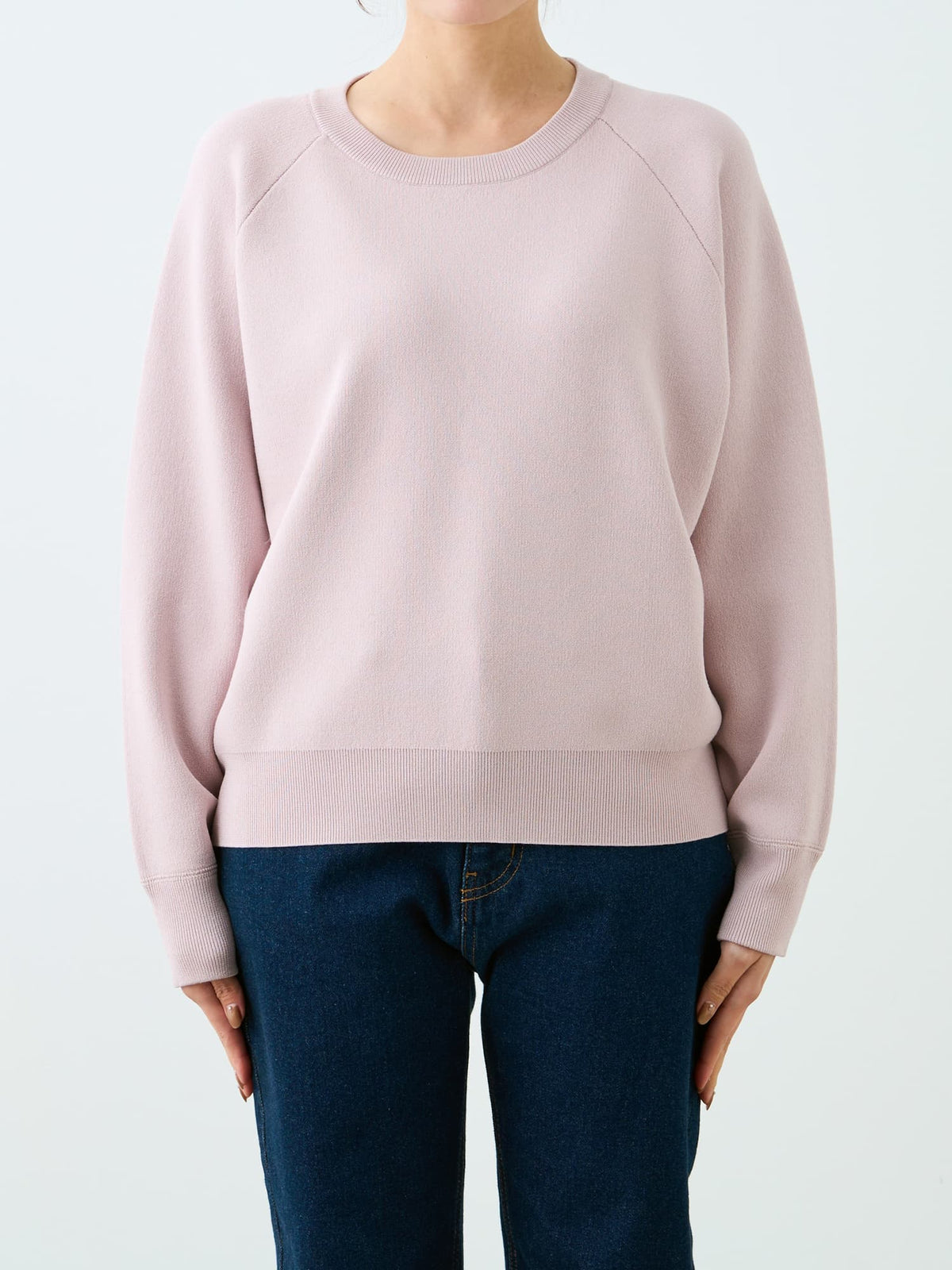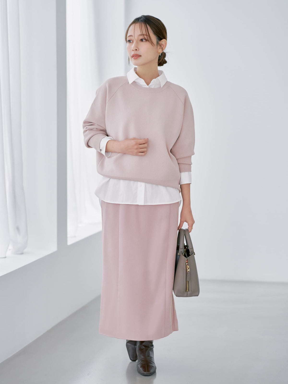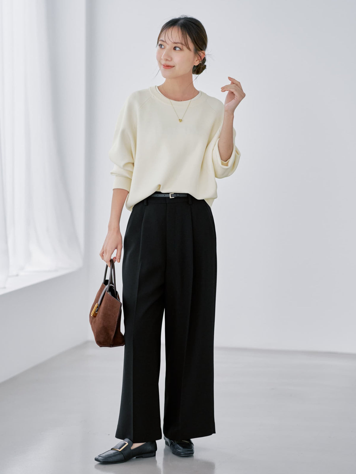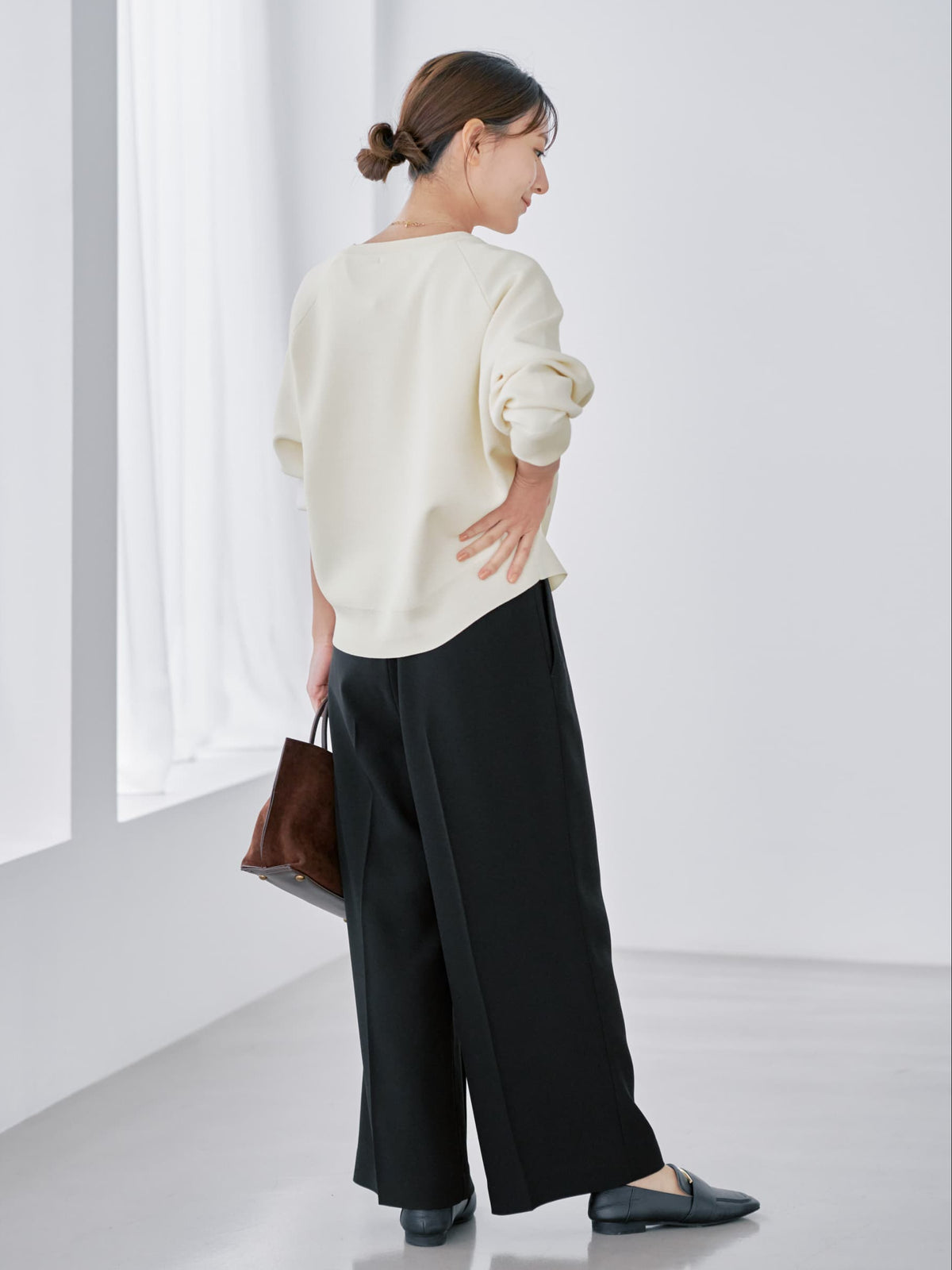 ベーシックなニットトップスは、スカートからパンツまでどんなボトムスとも好相性。スウェットよりもカジュアルになり過ぎないため、幅広いシーンで着回していただけます。