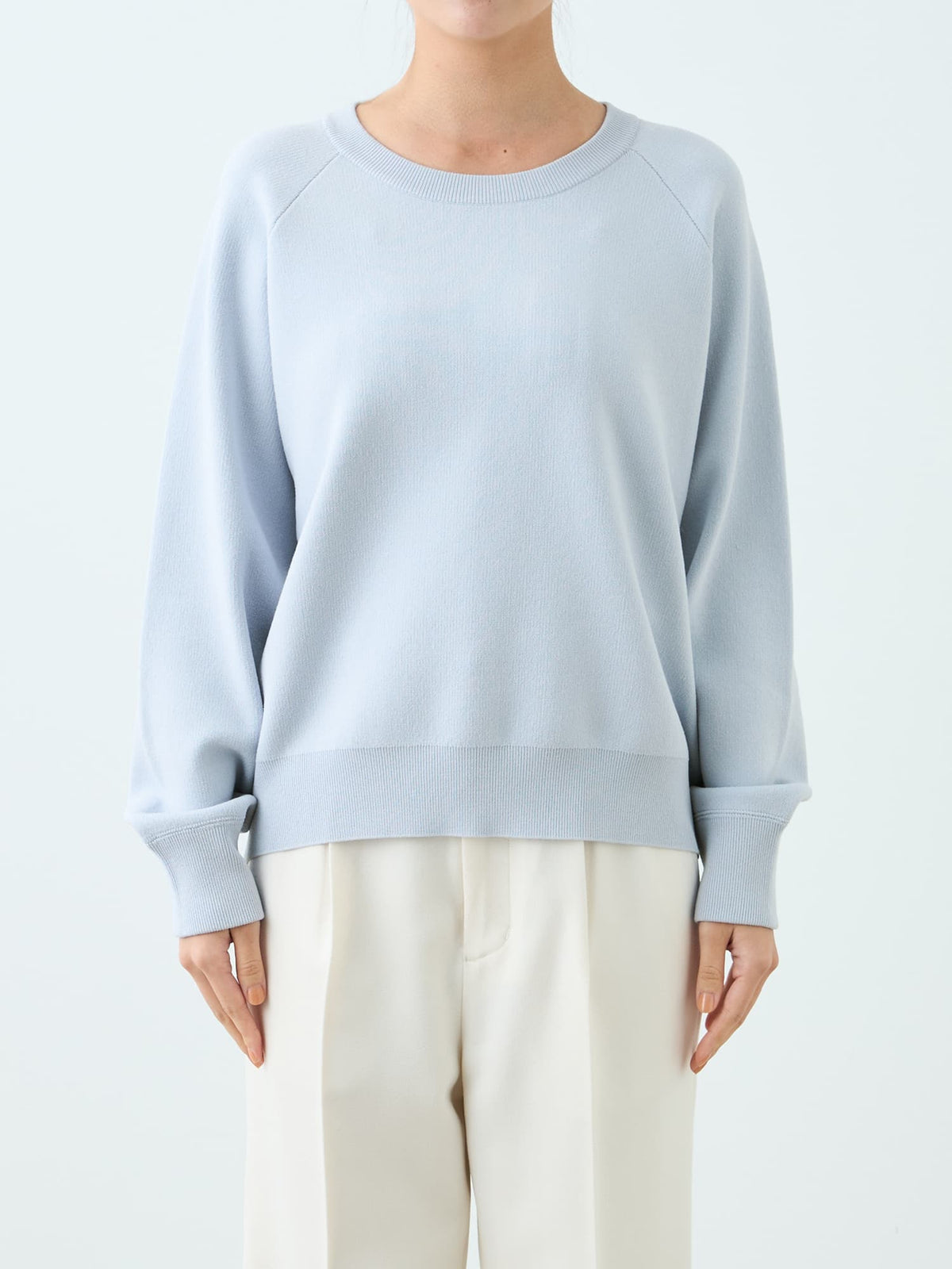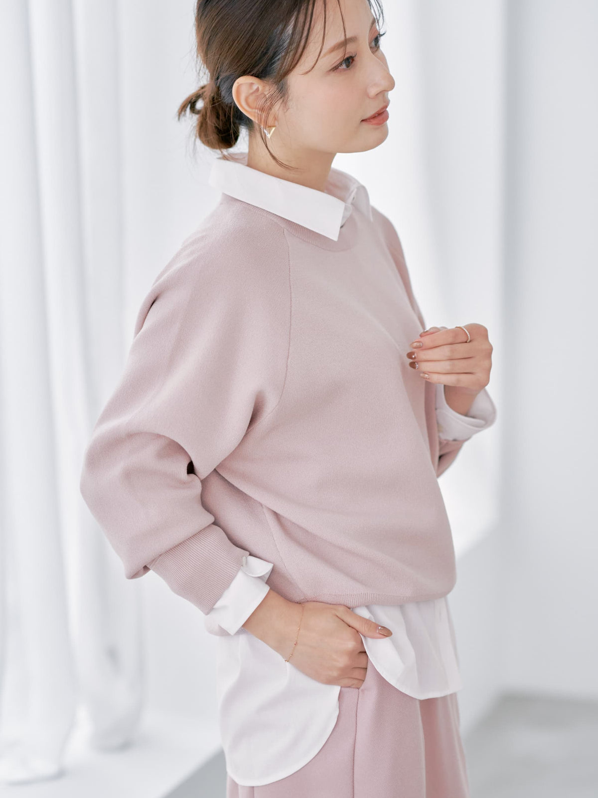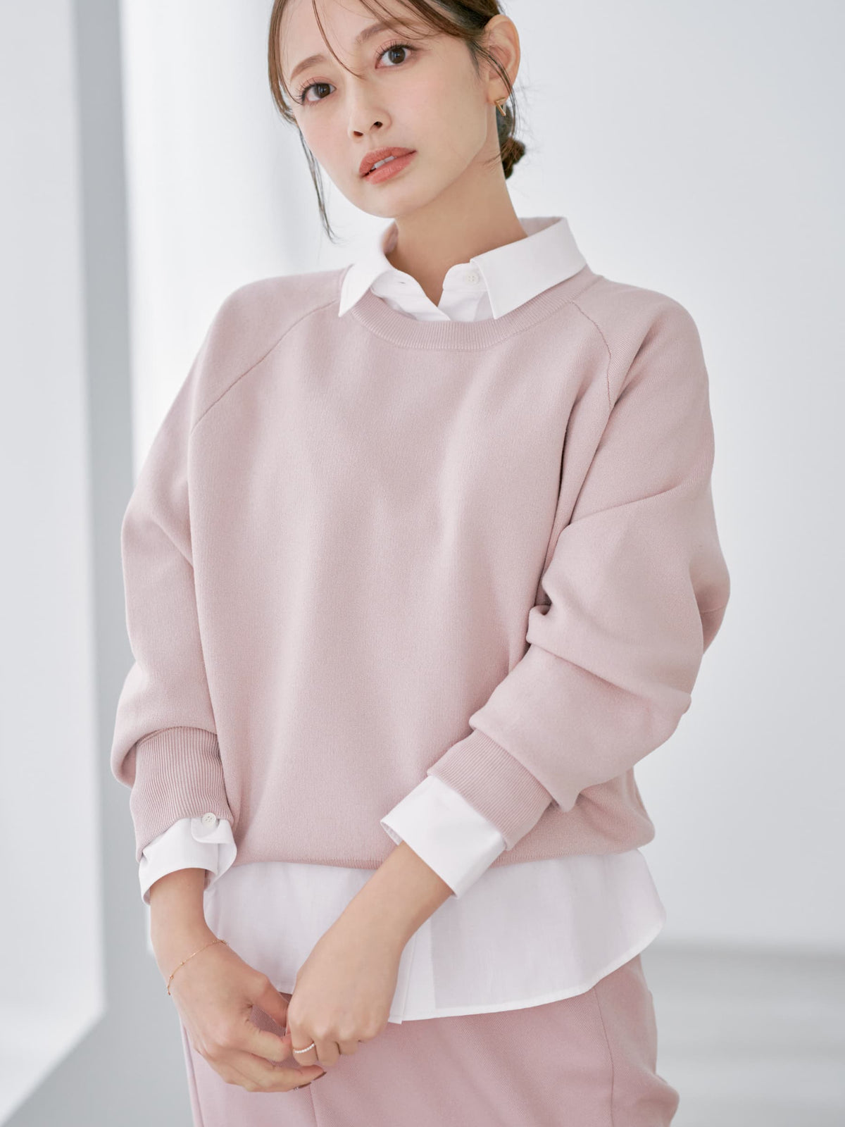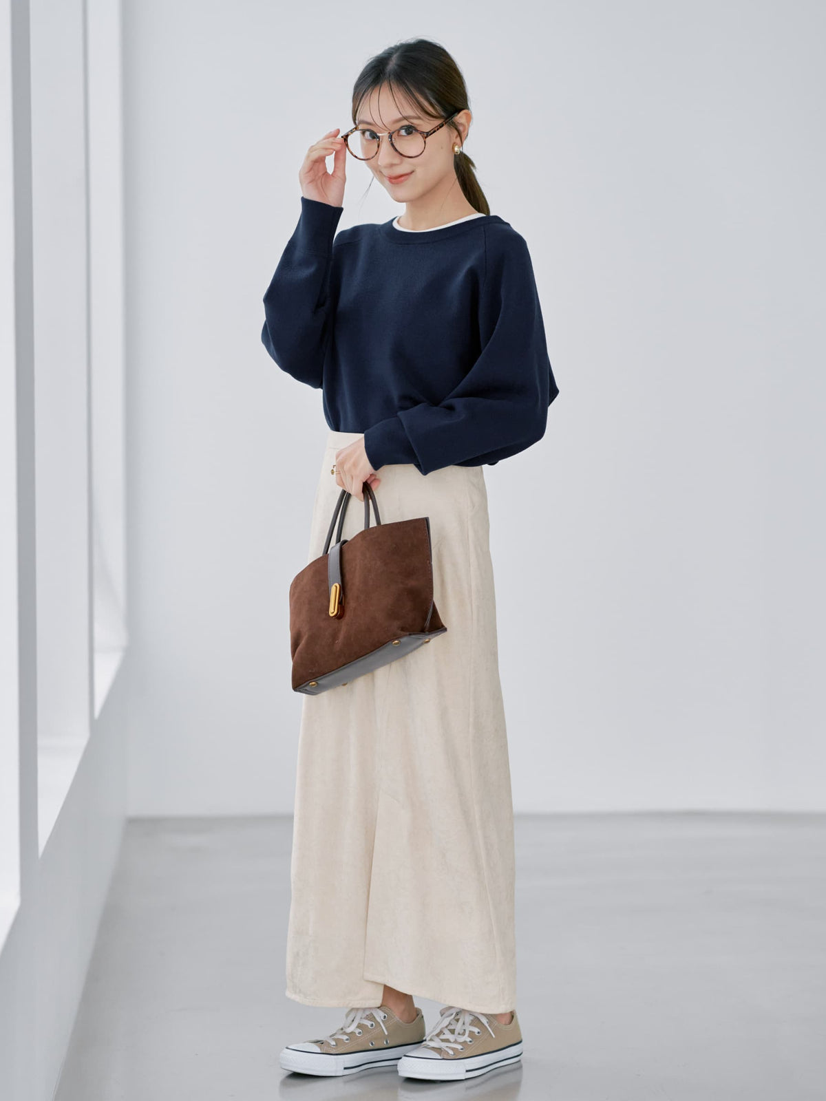 ベーシックなニットトップスは、スカートからパンツまでどんなボトムスとも好相性。スウェットよりもカジュアルになり過ぎないため、幅広いシーンで着回していただけます。