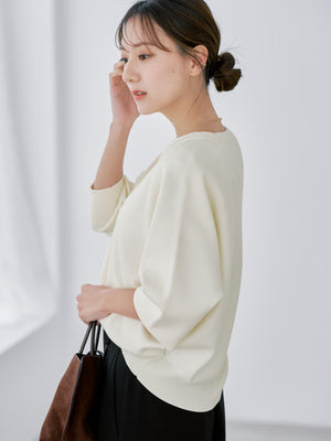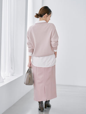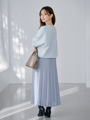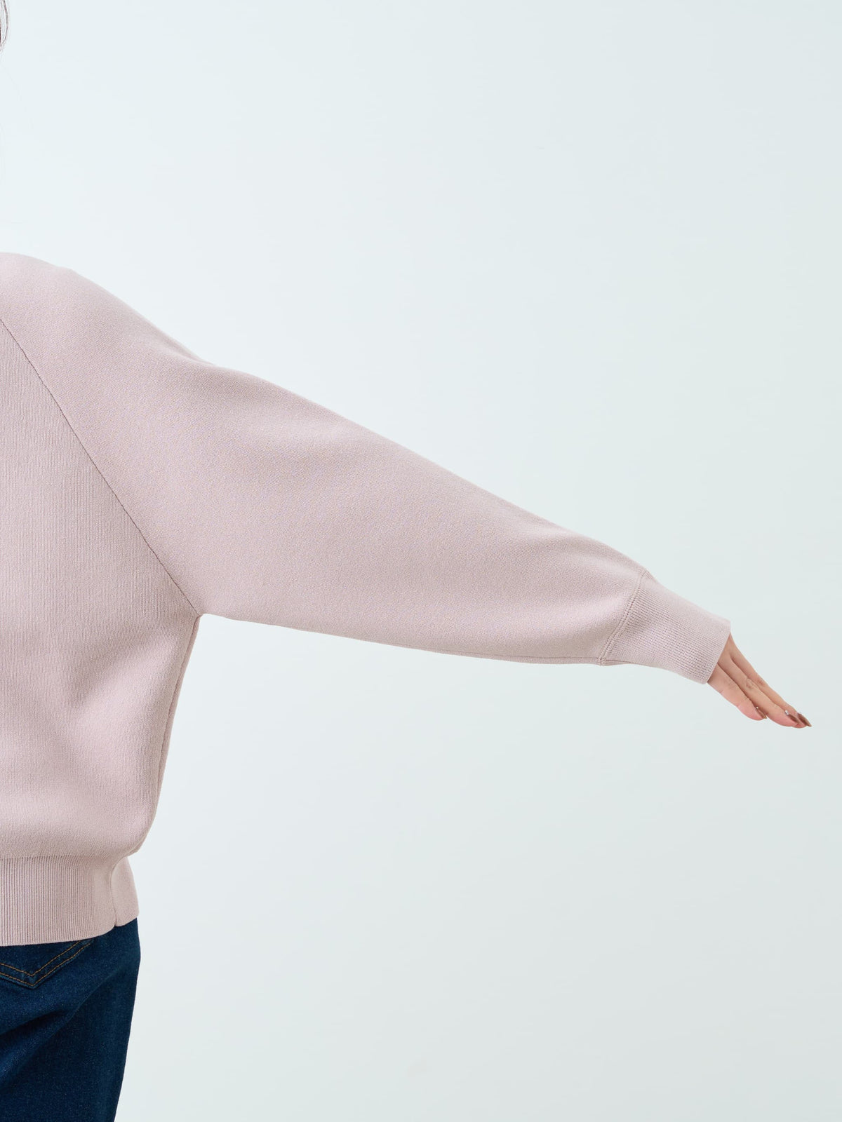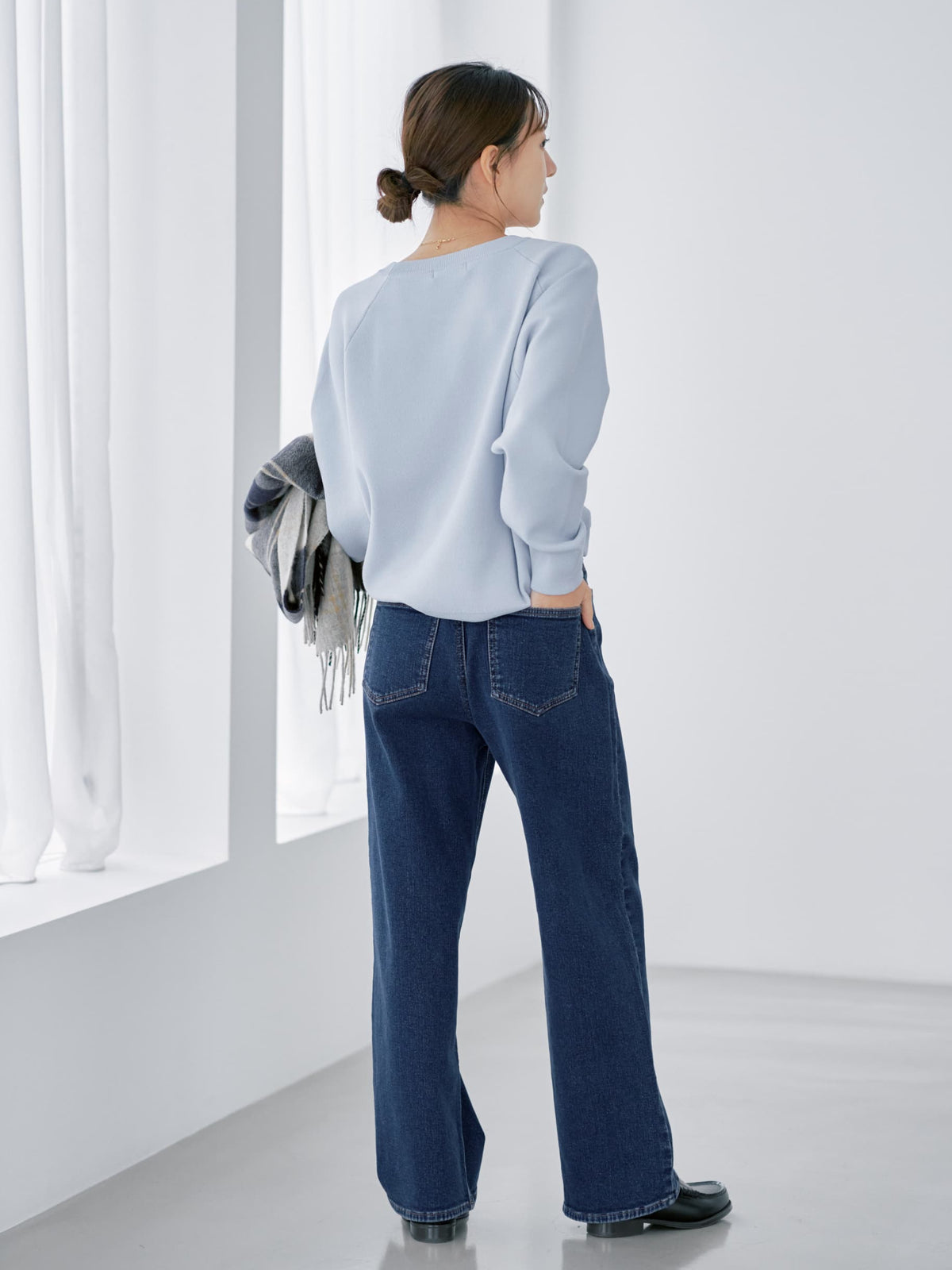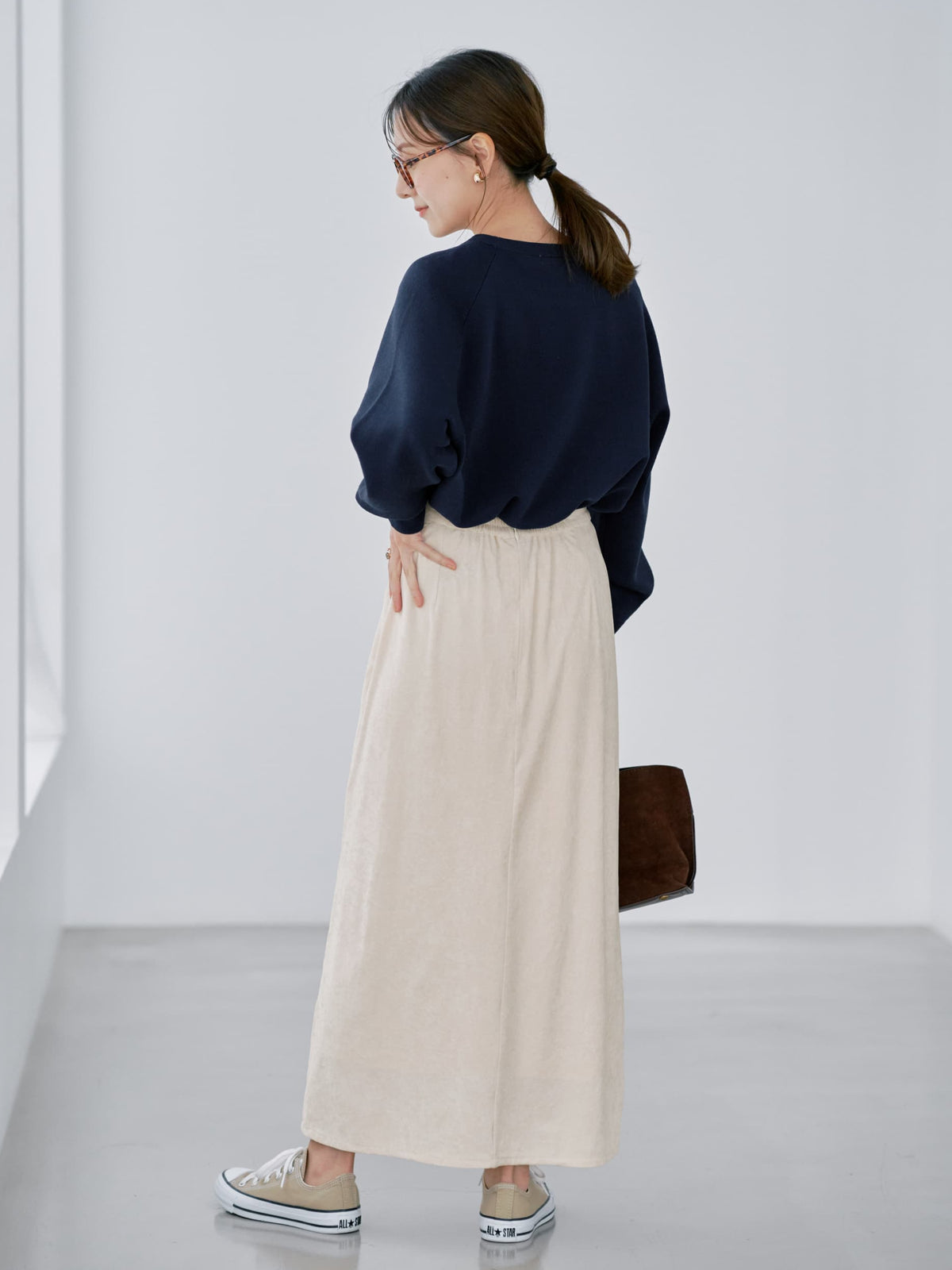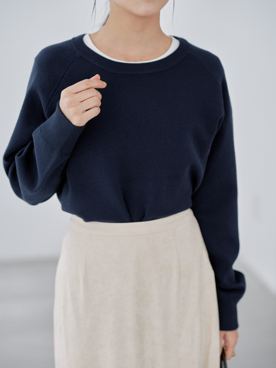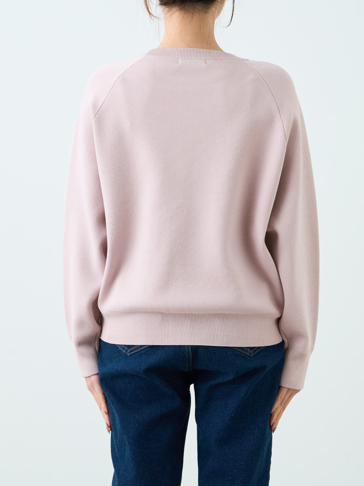 ベーシックなニットトップスは、スカートからパンツまでどんなボトムスとも好相性。スウェットよりもカジュアルになり過ぎないため、幅広いシーンで着回していただけます。