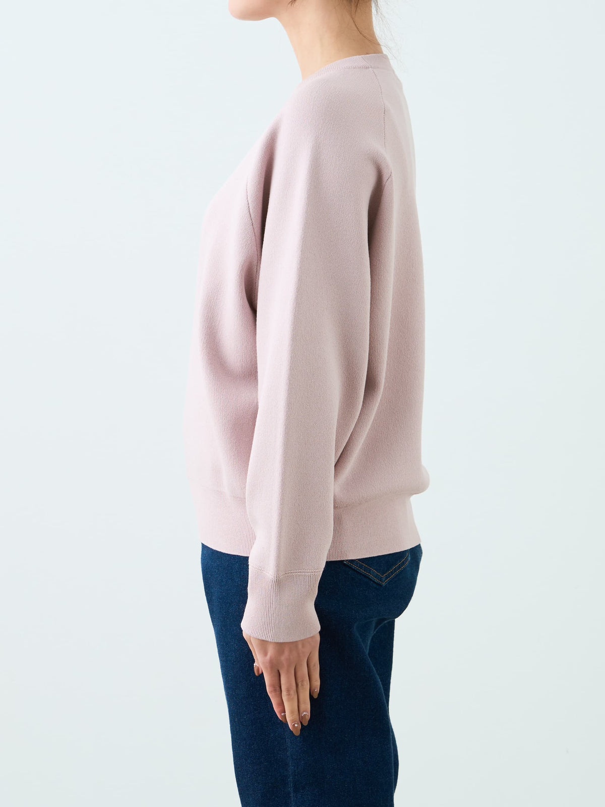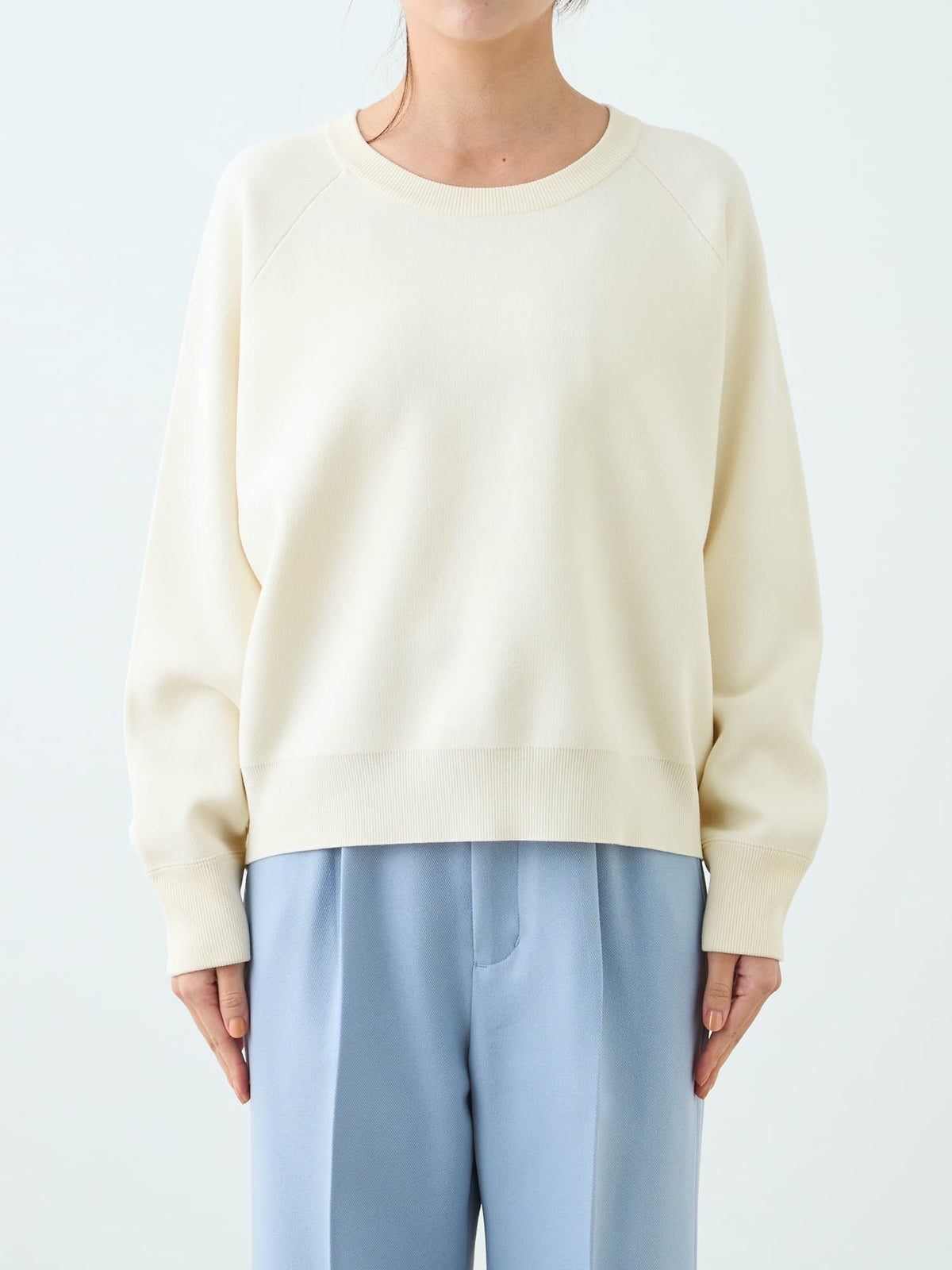 こなれた大人カジュアルが決まるスウェットライクなニットプルオーバー。スウェット感覚で着用できるラフさがありながらも、ニットならではの上品な質感できれい見えしてくれる優れもの。