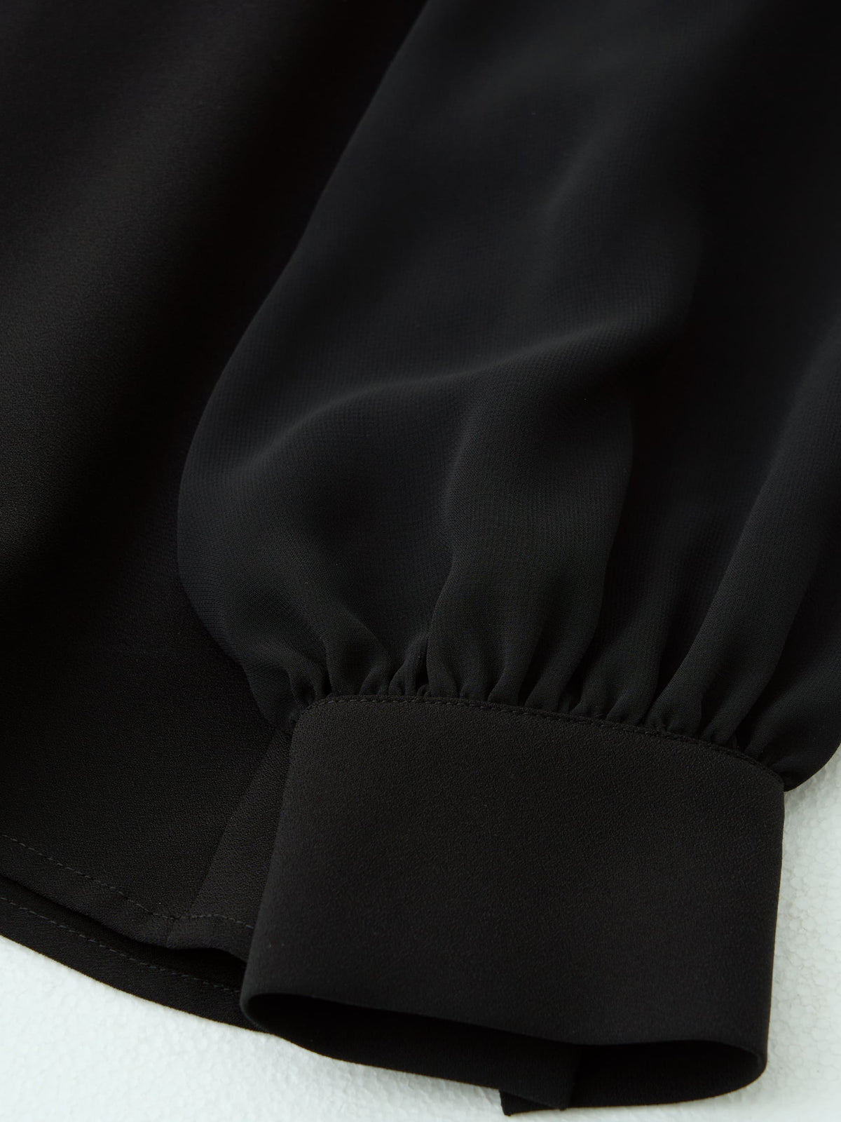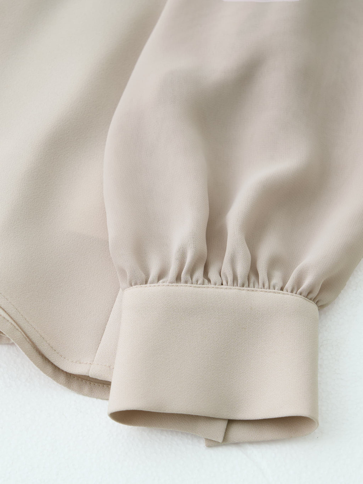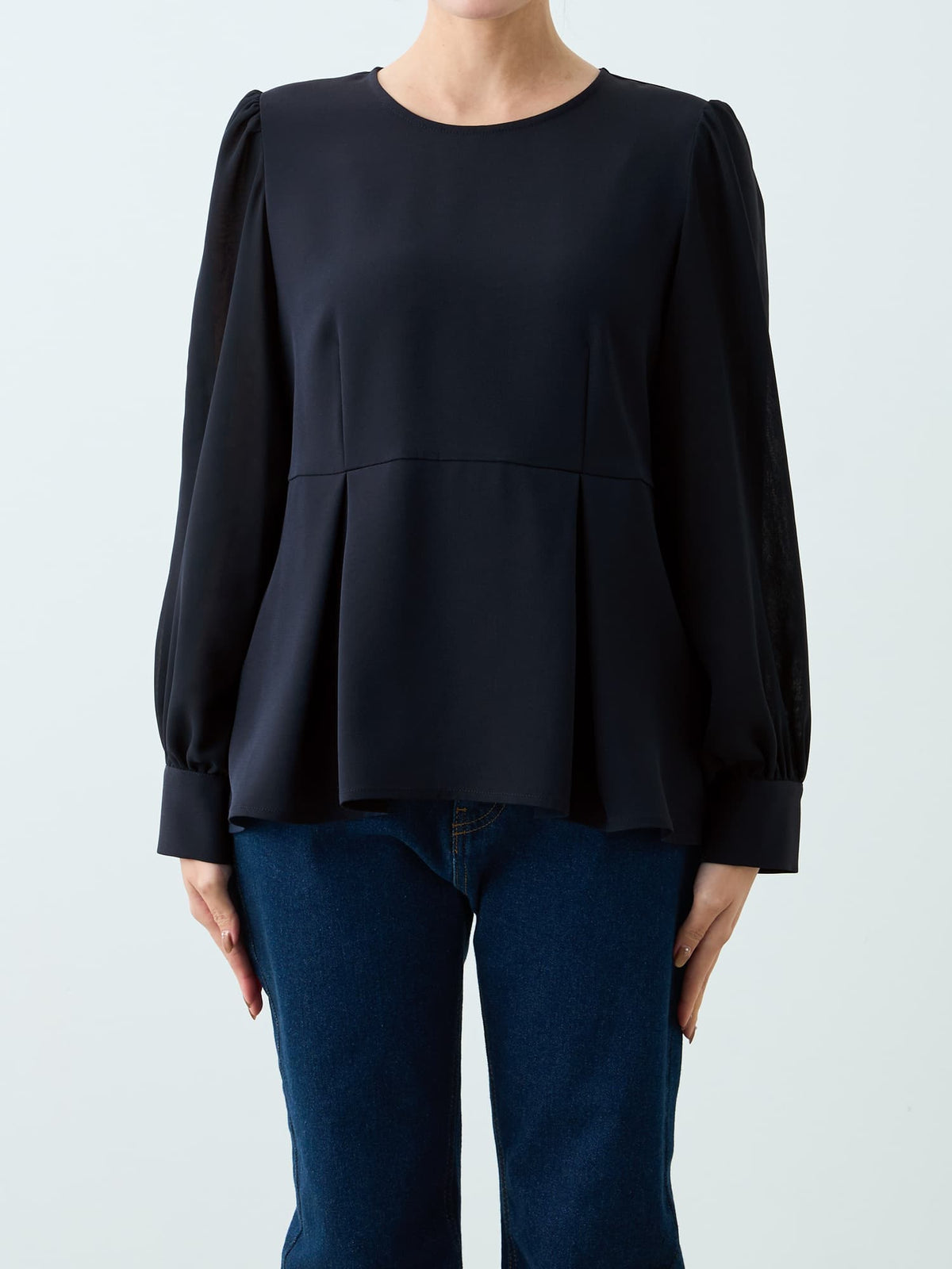 シワになりにくく、上品な落ち感があり、適度なストレッチ性にも優れています。袖部分には落ち感のある軽やかなシフォン素材を使用しています。