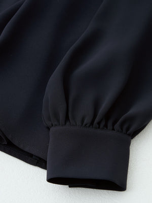 シフォンを2重にして作ったギャザースリーブはジャケットインもしやすく、1枚着としても透け感が気になりにくいのでフォーマルなシーンにもお使いいただきやすいアイテムです。