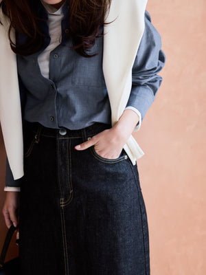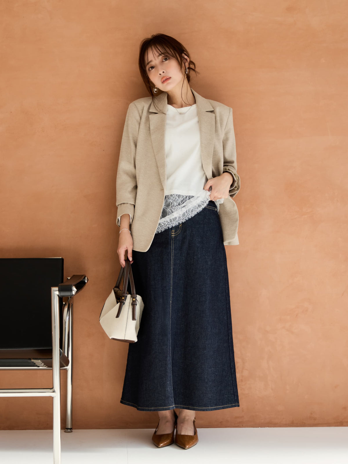 デニム生地は薄すぎず季節問わずロングシーズン使える定番アイテム。