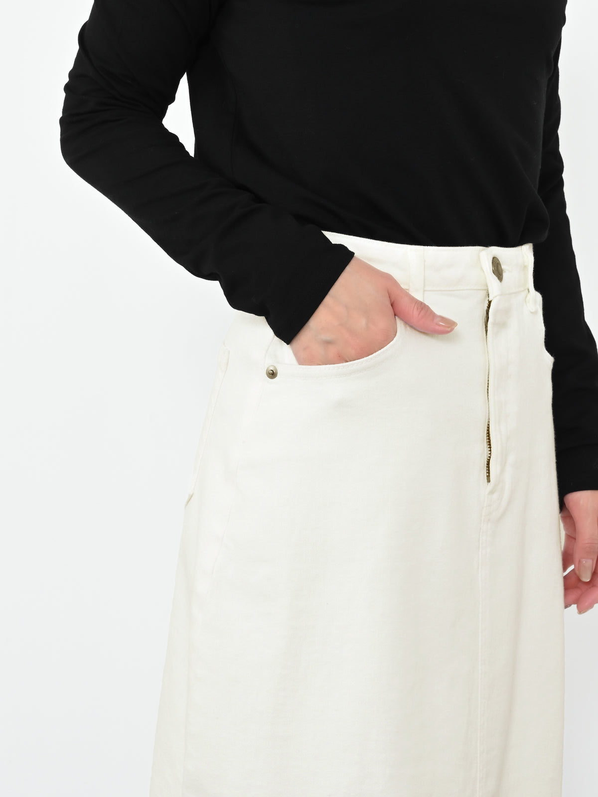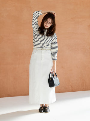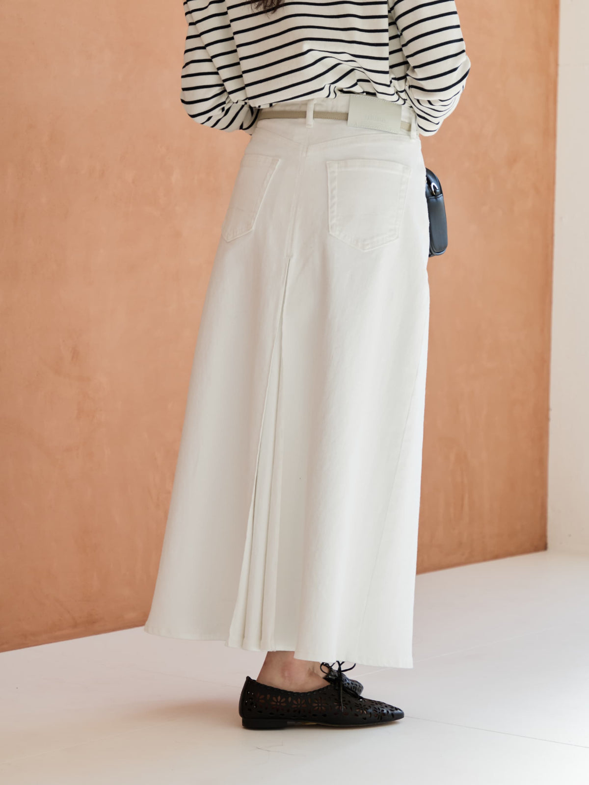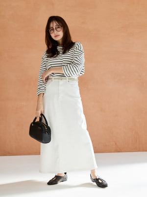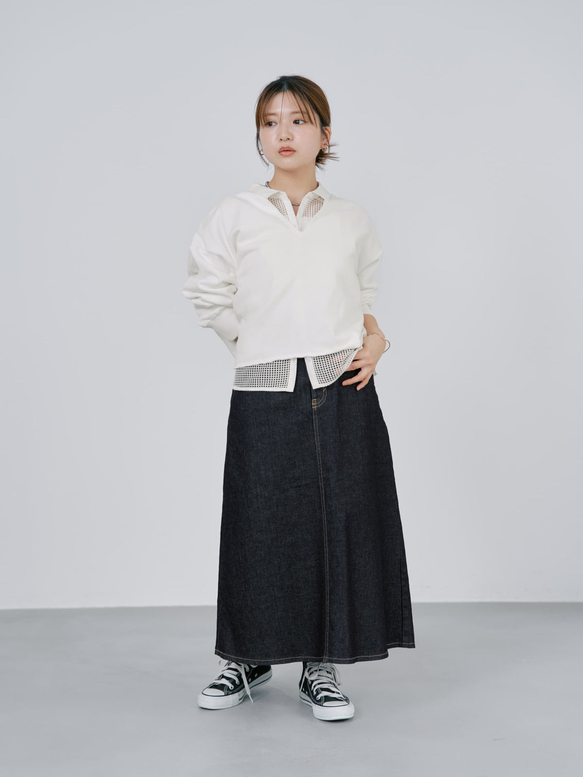 インディゴは、軽やかなカラーもののトップスなどにも合わせてきゅっと引き締めコーデに仕上げたり、オフホワイトは透けにくい加工だからこそ、ショート丈のトップスなどと合わせてシルエットをお楽しみください!