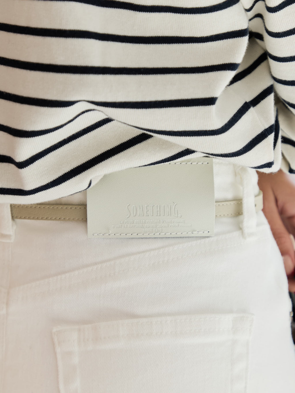 シーズンレスで活躍する、綺麗めなインディゴカラーと、オフホワイトにはSOMETHINGが独自開発した“透けにくい白”加工を施しています。