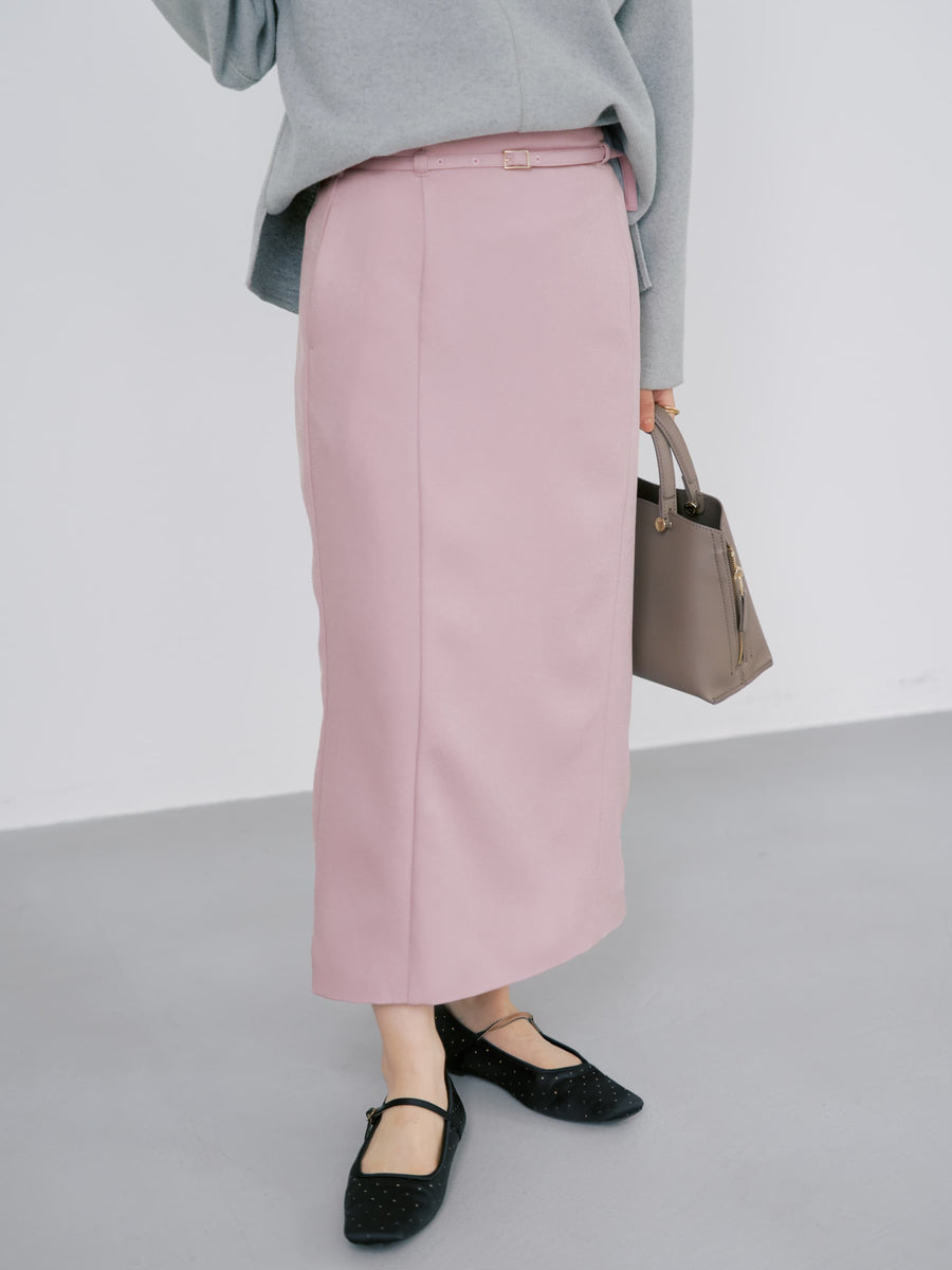 ベルト付きパネルIラインスカート-short & regular [通常]
