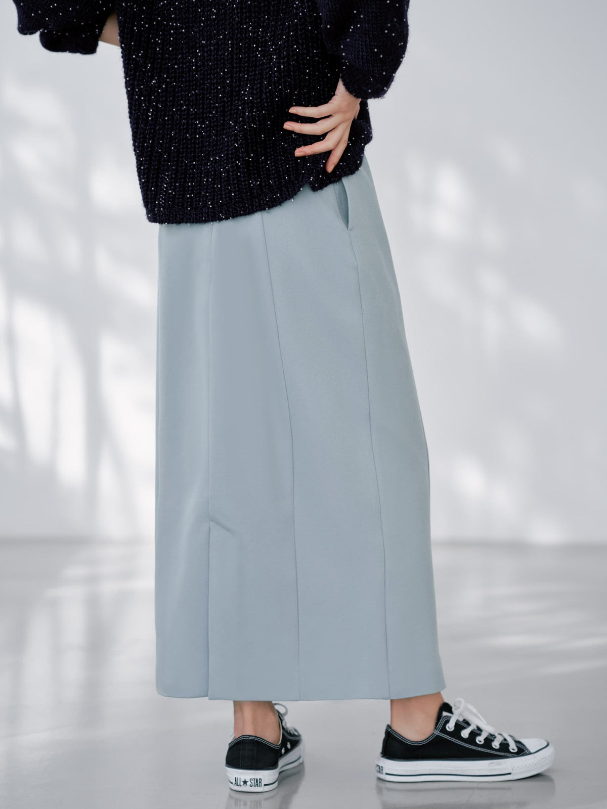 縦ラインで叶える、すらっと上品Iラインスカート