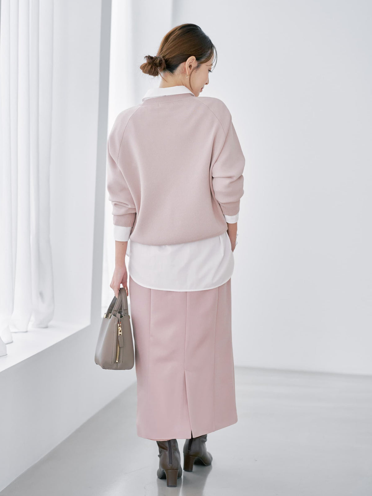 春らしいピンクカラーは淡いアイボリーカラーで着るのが今の気分でした! (regular-XS着用)