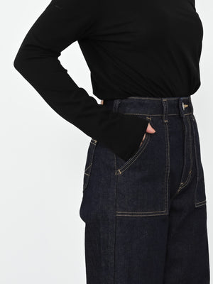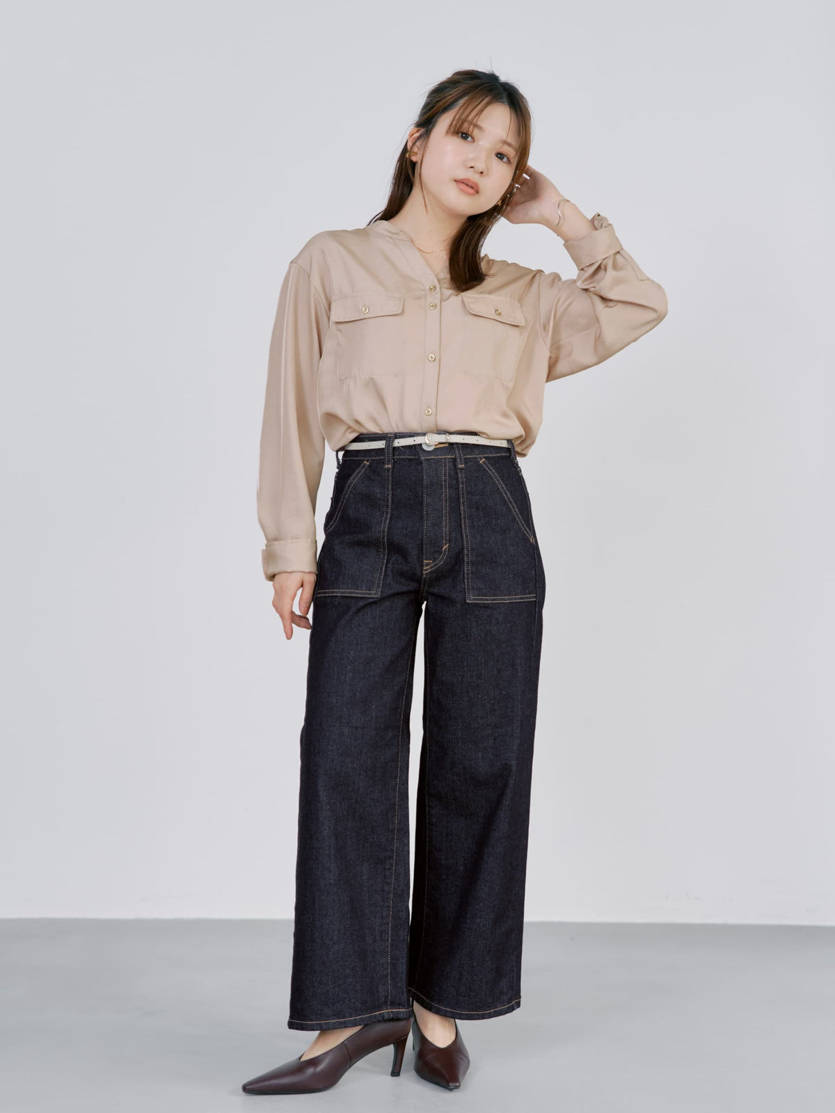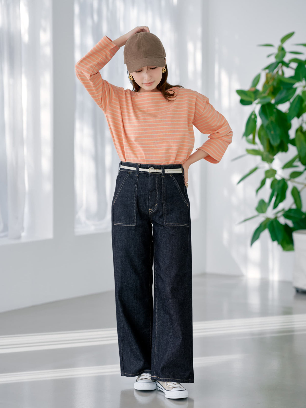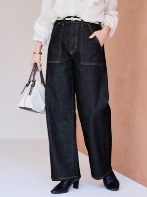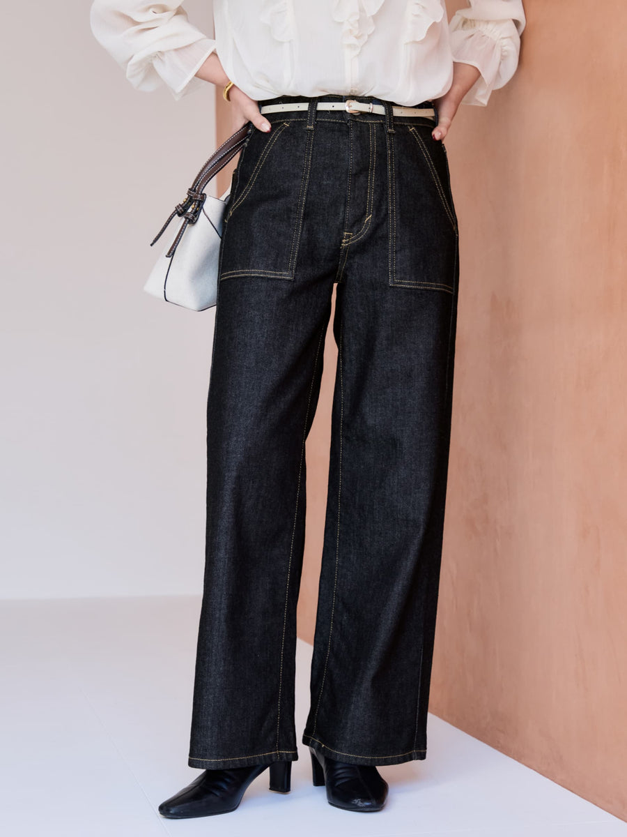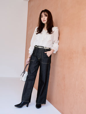 綺麗めコーデにもマッチしやすいベイカーパンツで、たくさんデニムは持っているけど、唯一無二の可愛さにトキメキます!