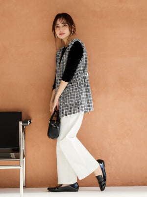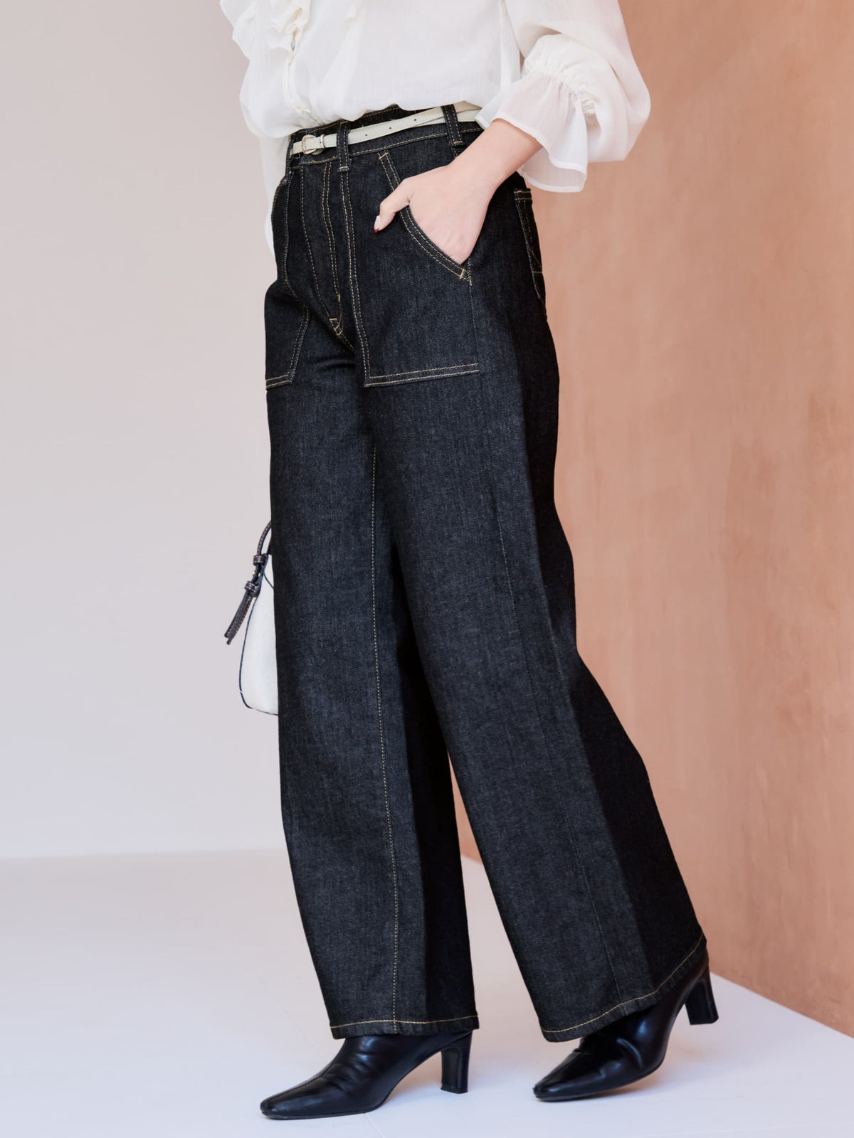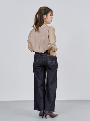 インディゴは、軽やかなカラートップスなどに合わせてきゅっと引き締めコーデに仕上げたり、オフホワイトは透けにくい加工だからこそ、ショート丈のトップスなどと合わせてシルエットをお楽しみください!