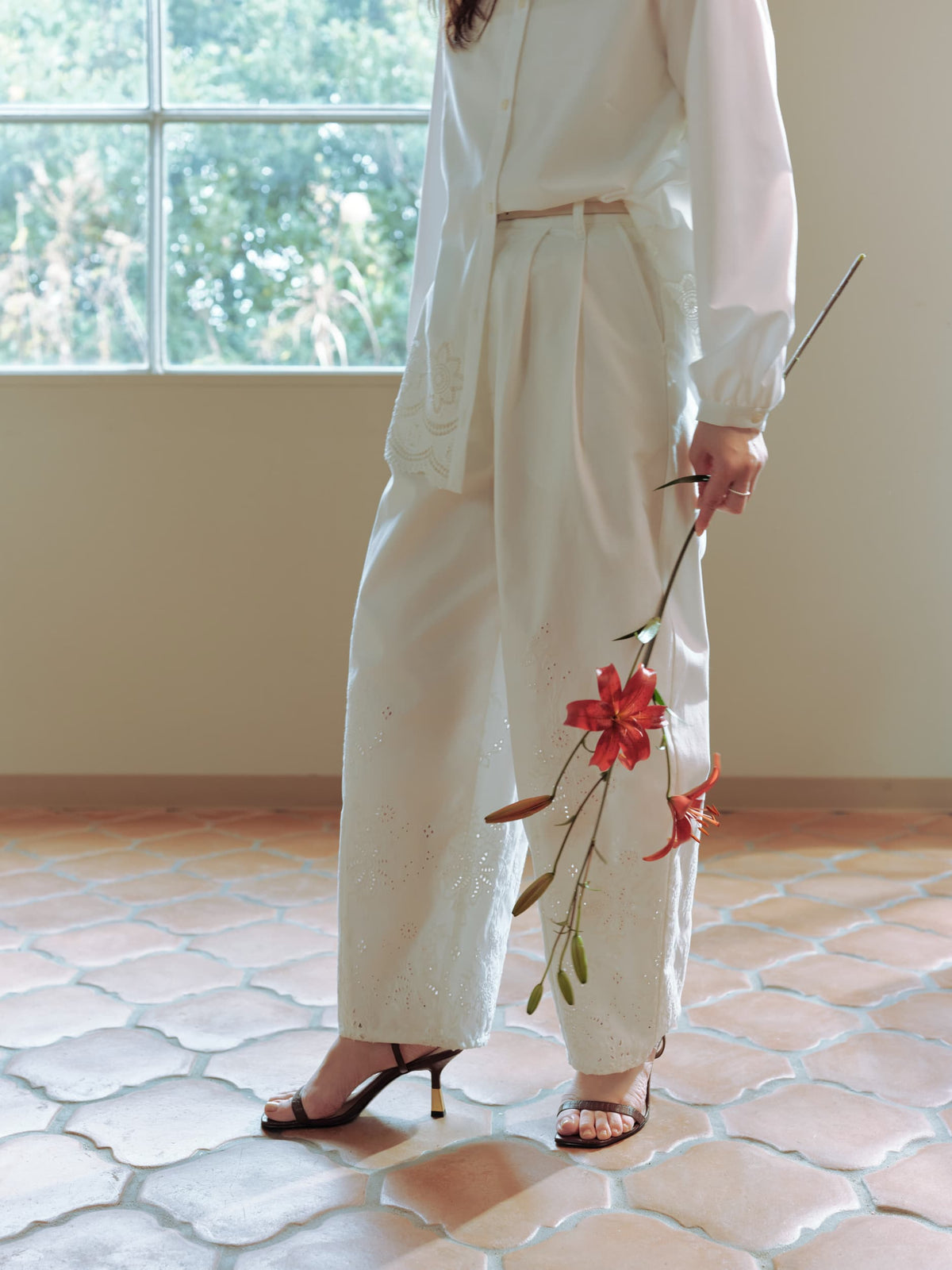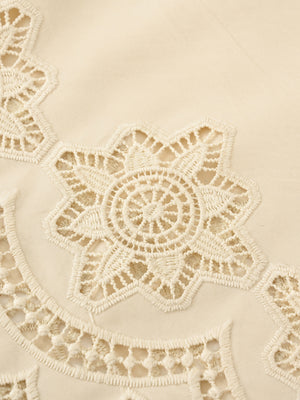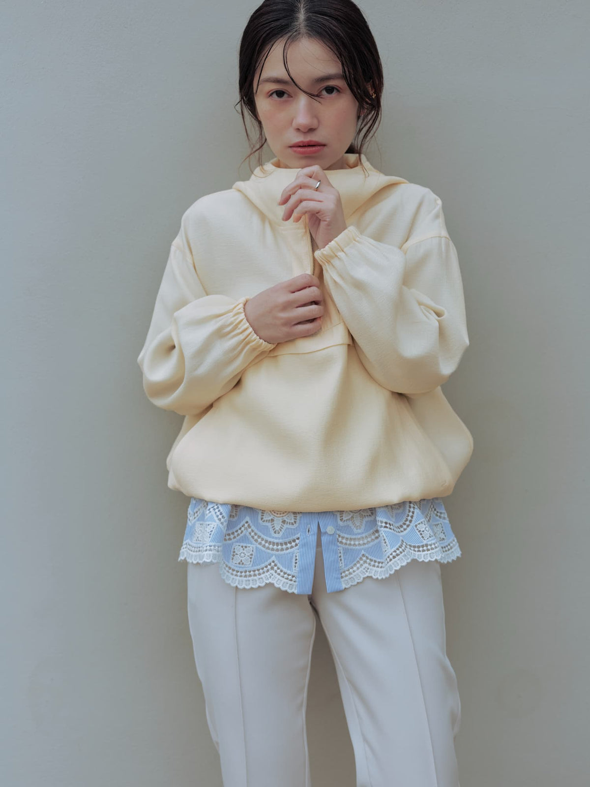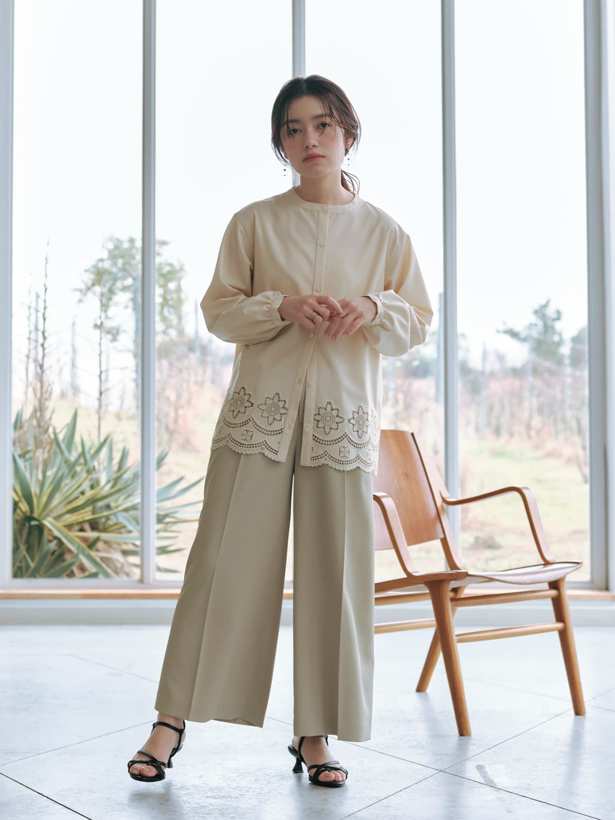 裾のスカラップや刺繍モチーフも大きくなりすぎないようにし、小柄な方でも着やすい絶妙な着丈にこだわりました。ゆったりとしたシルエットで、リラックスした着心地を叶えつつ、カットワークが女性らしさを演出。