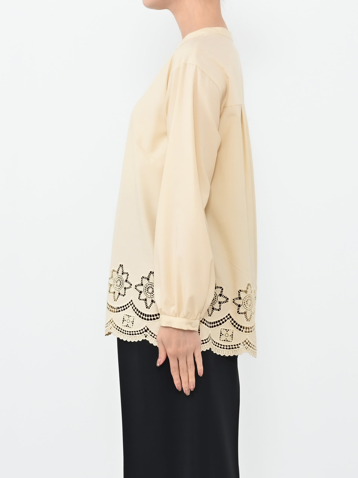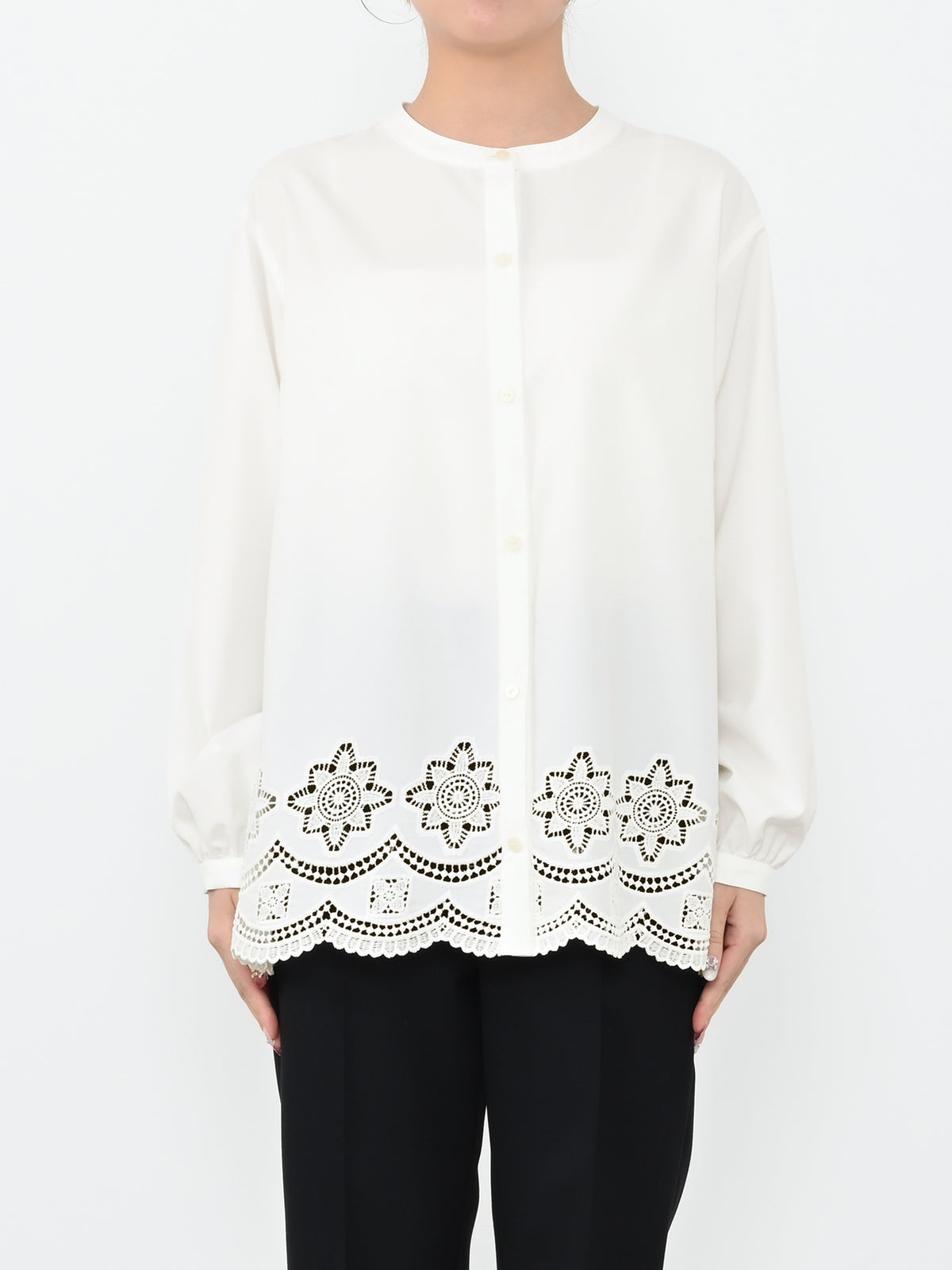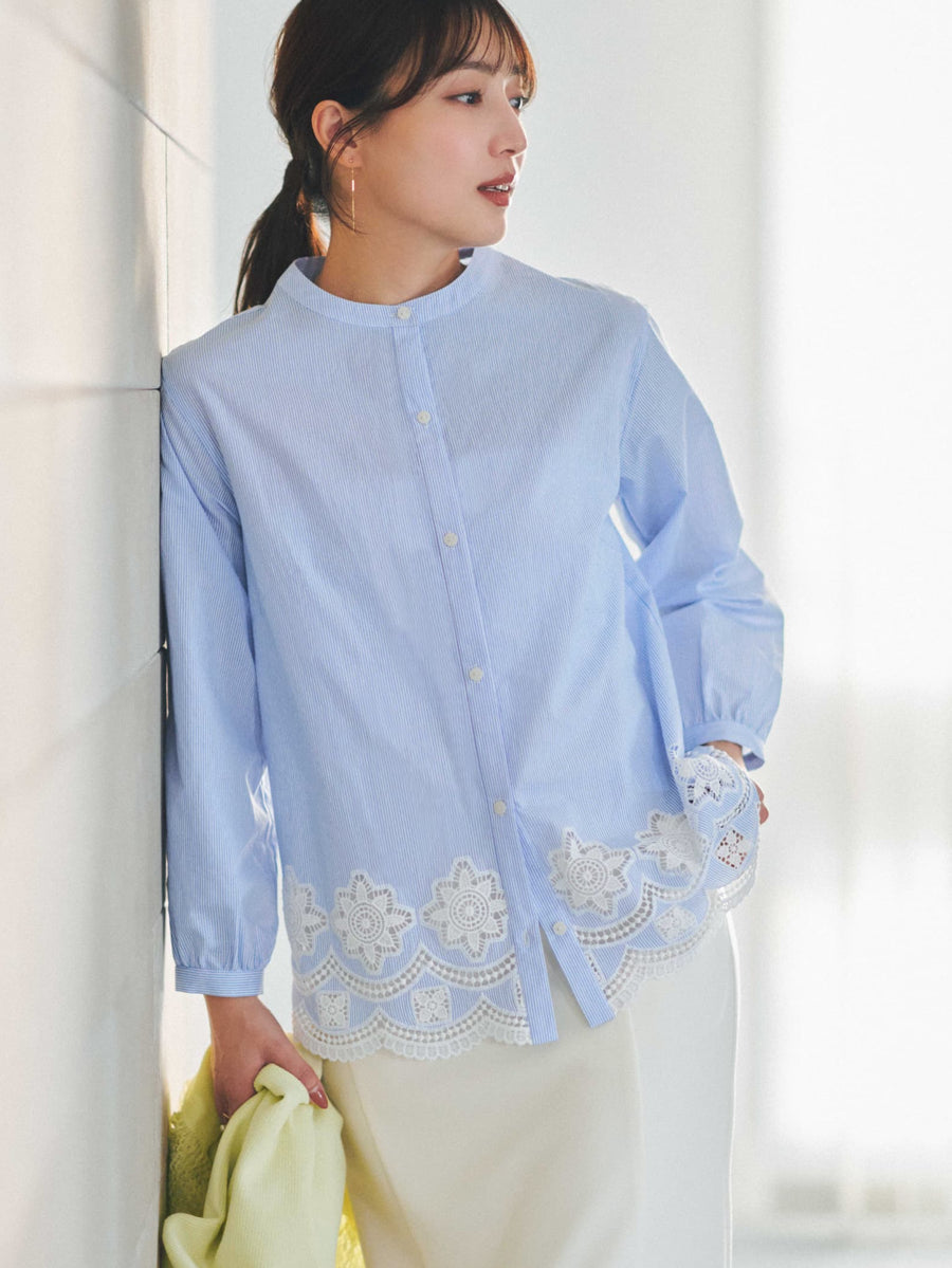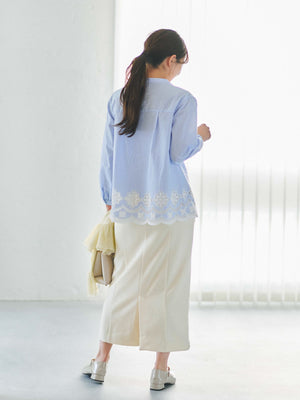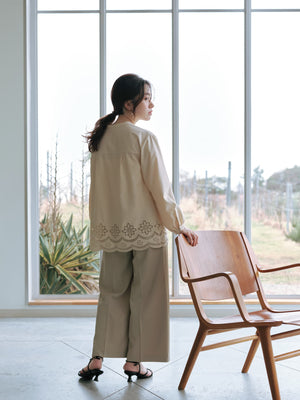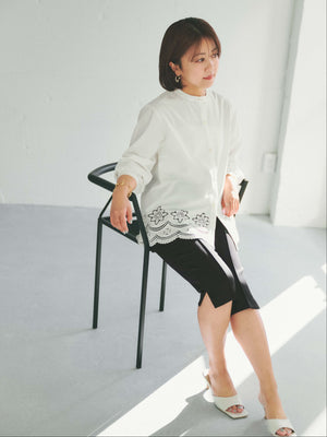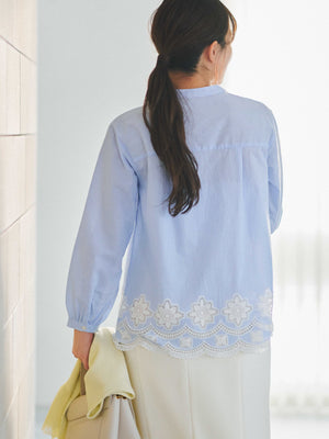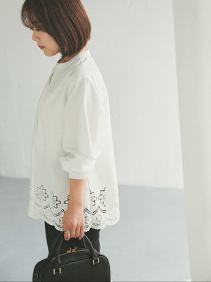 裾にオリジナルのカットワーク刺繍を施した1枚で華やかなブラウス。