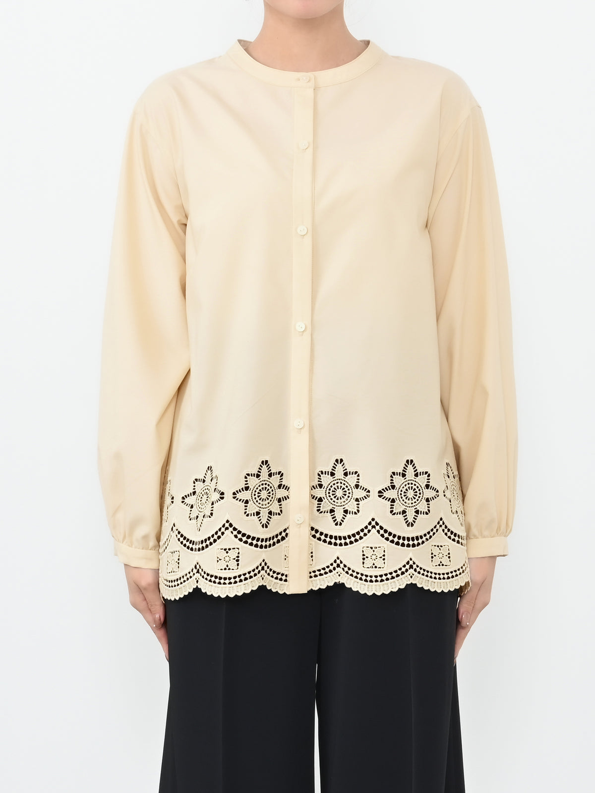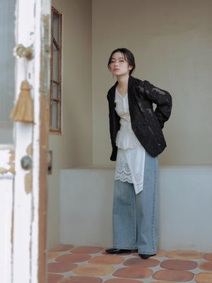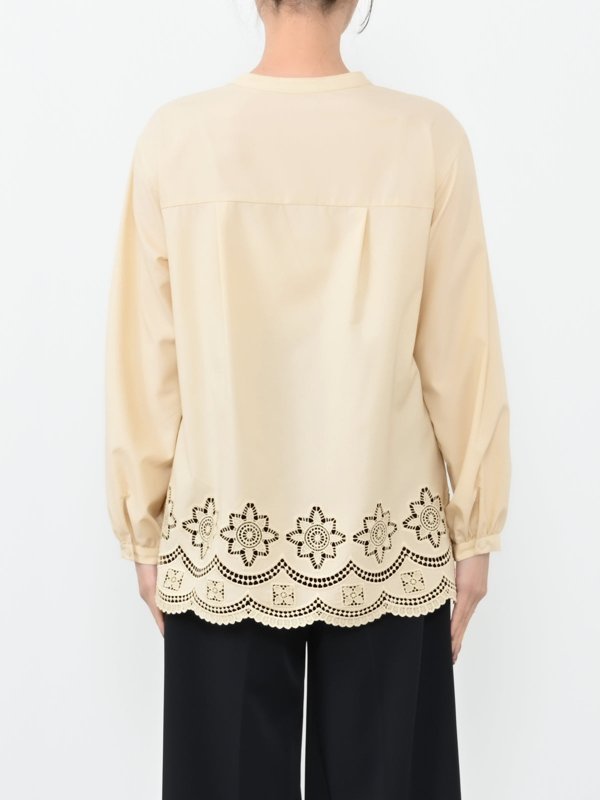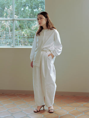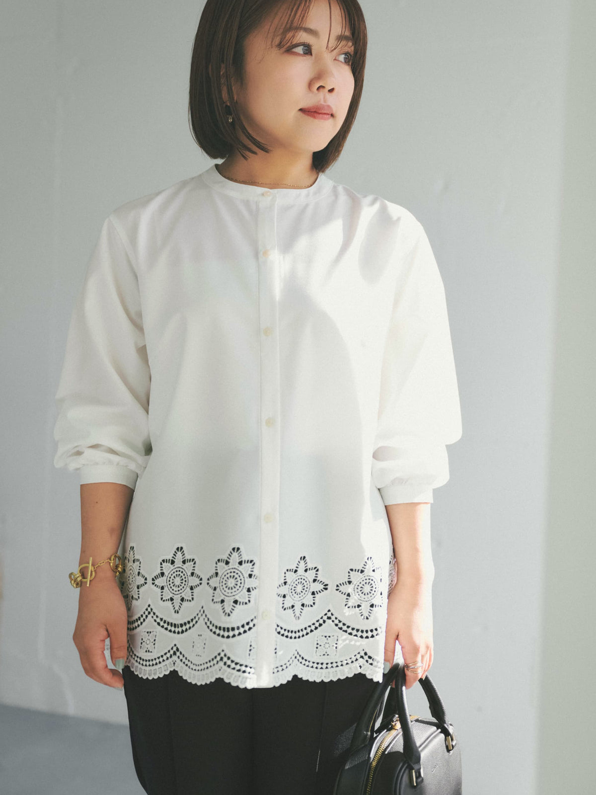裾にオリジナルのカットワーク刺繍を施した1枚で華やかなブラウス。