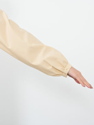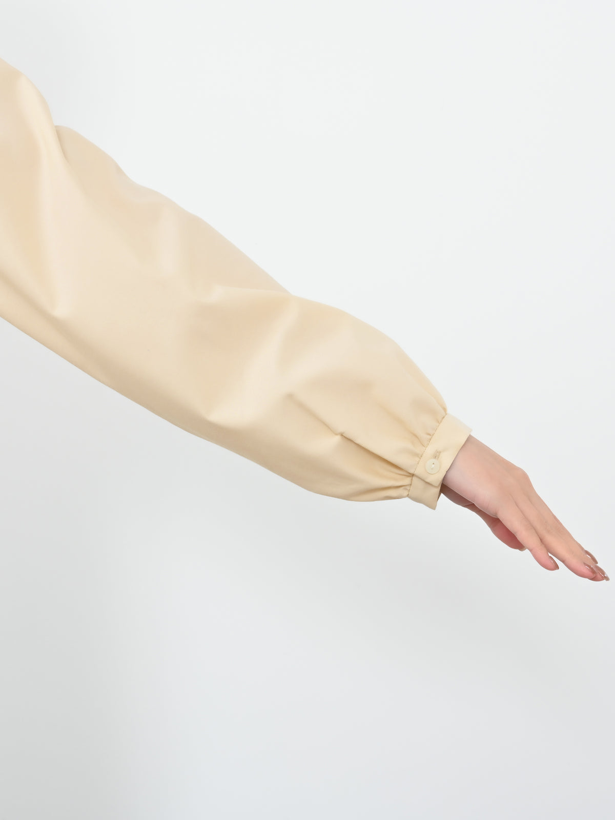 程よい透け感があり、コーデに軽やかさと女性らしさをプラスしてくれます。シンプルなシルエットながら存在感があり、パンツにもスカートにも好相性。着丈は144cmでヒップが全て隠れるくらいで、1枚でもレイヤードでも、ロングシーズン活躍する万能ブラウスです。