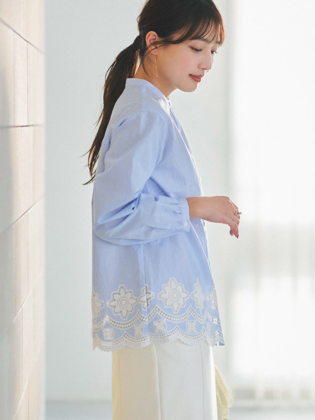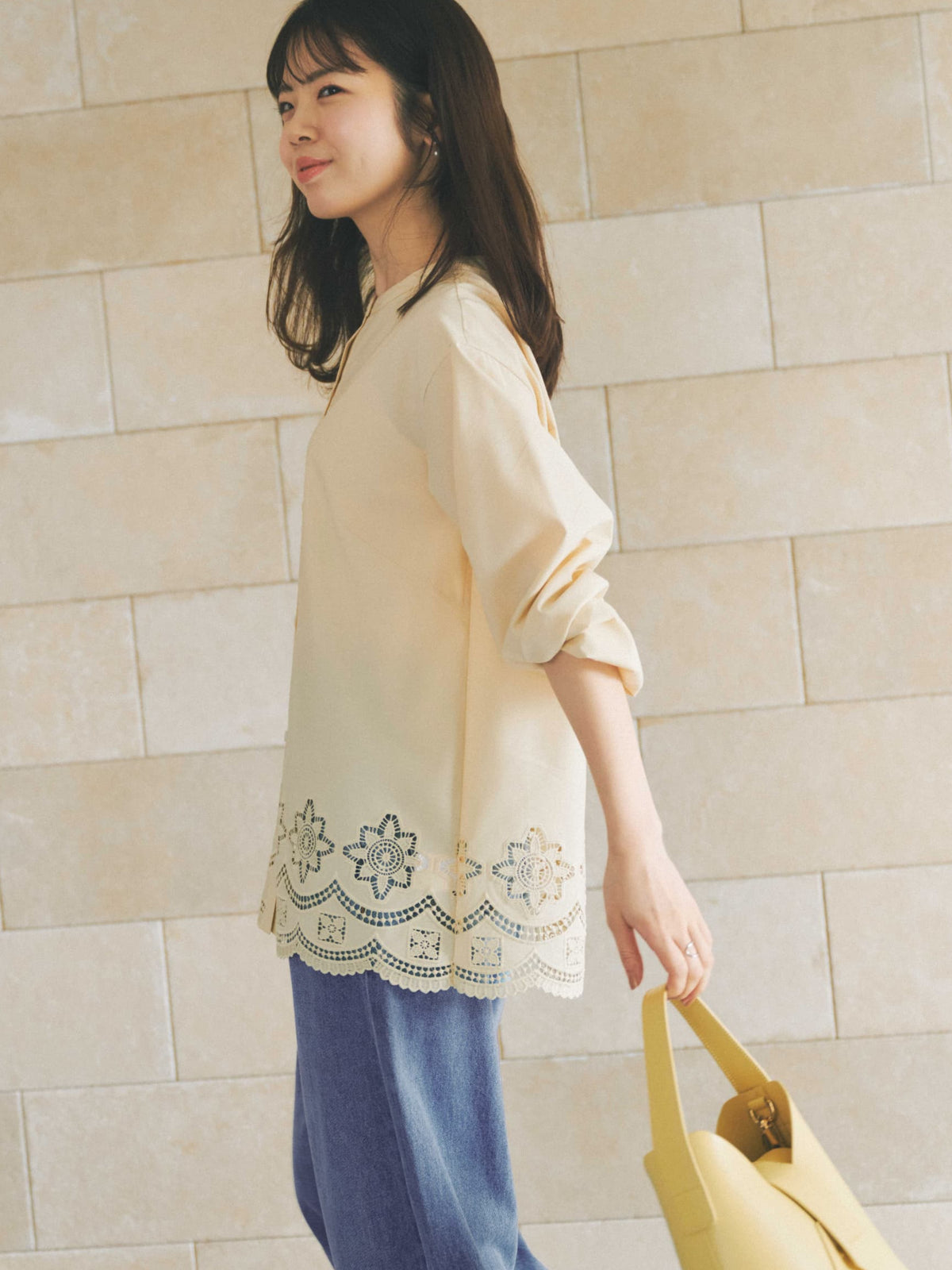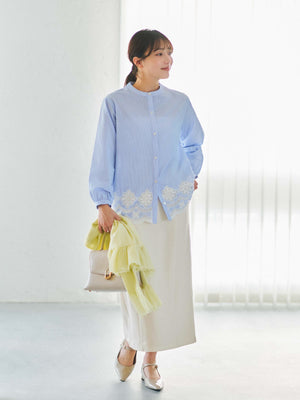 裾刺繍が視線を奪う、1枚で華やぐ主役ブラウス