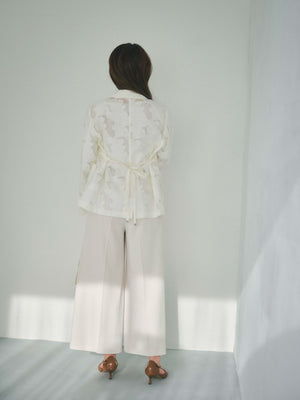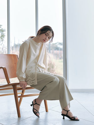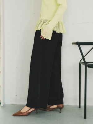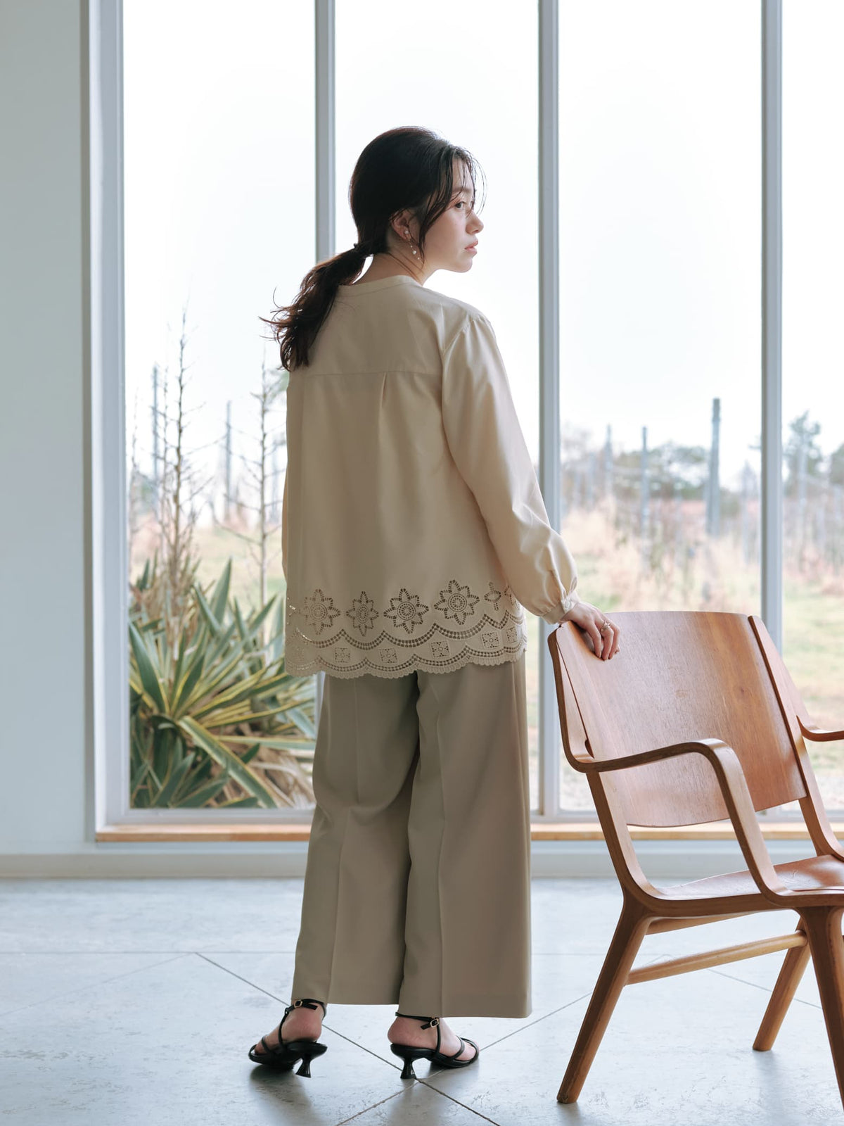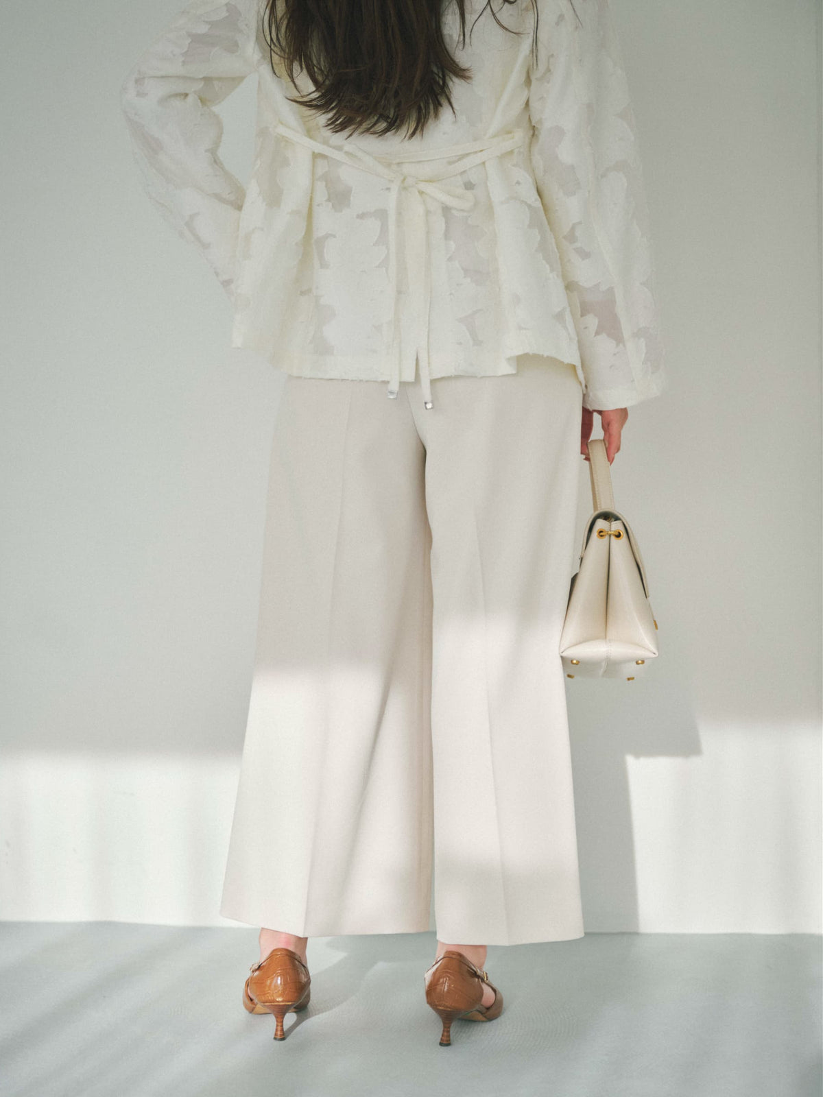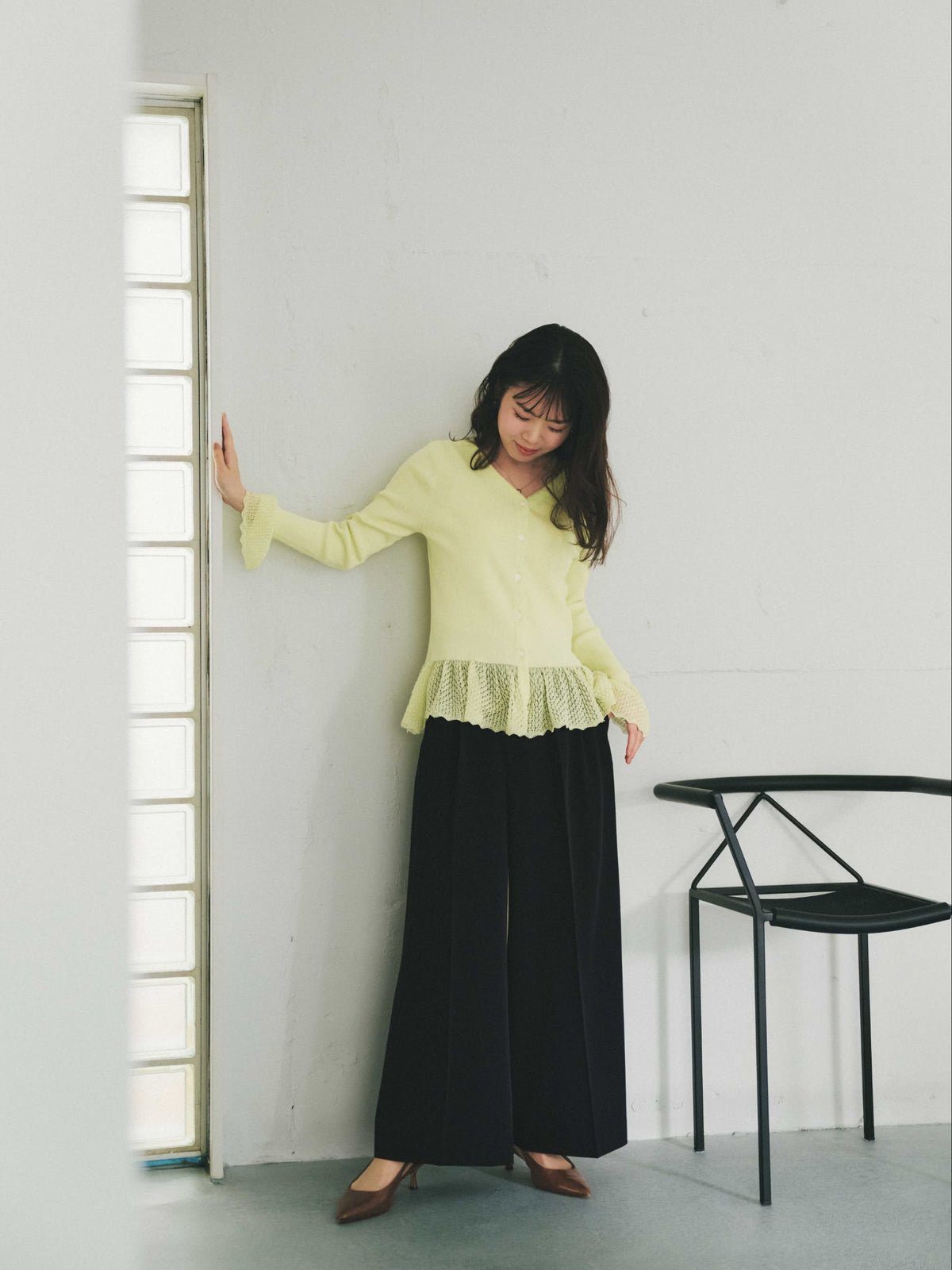 シーズンレスで履き回せる素材感でありながら、落ち感のある素材で女性らしさを感じさせます。