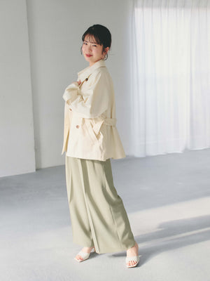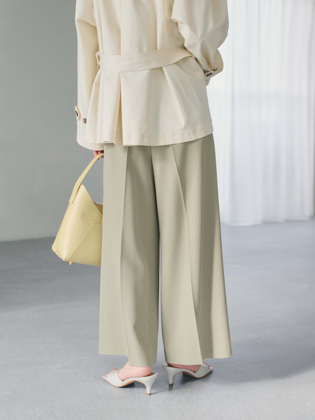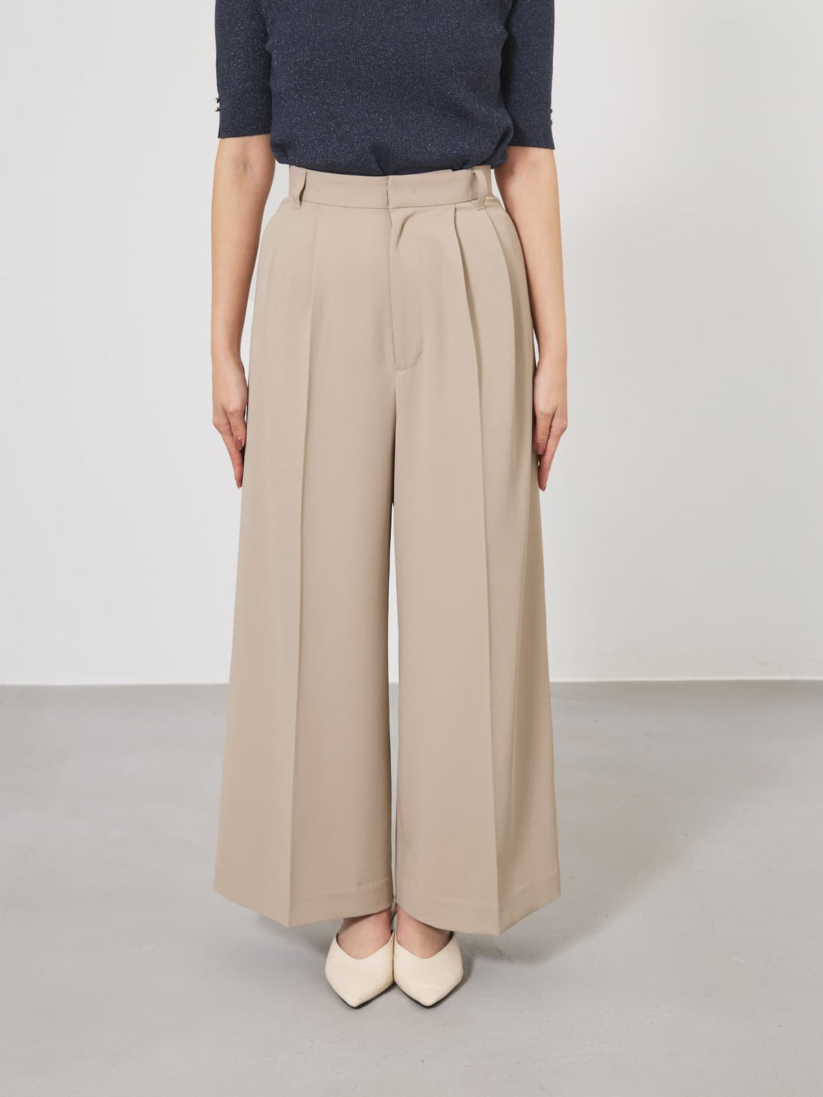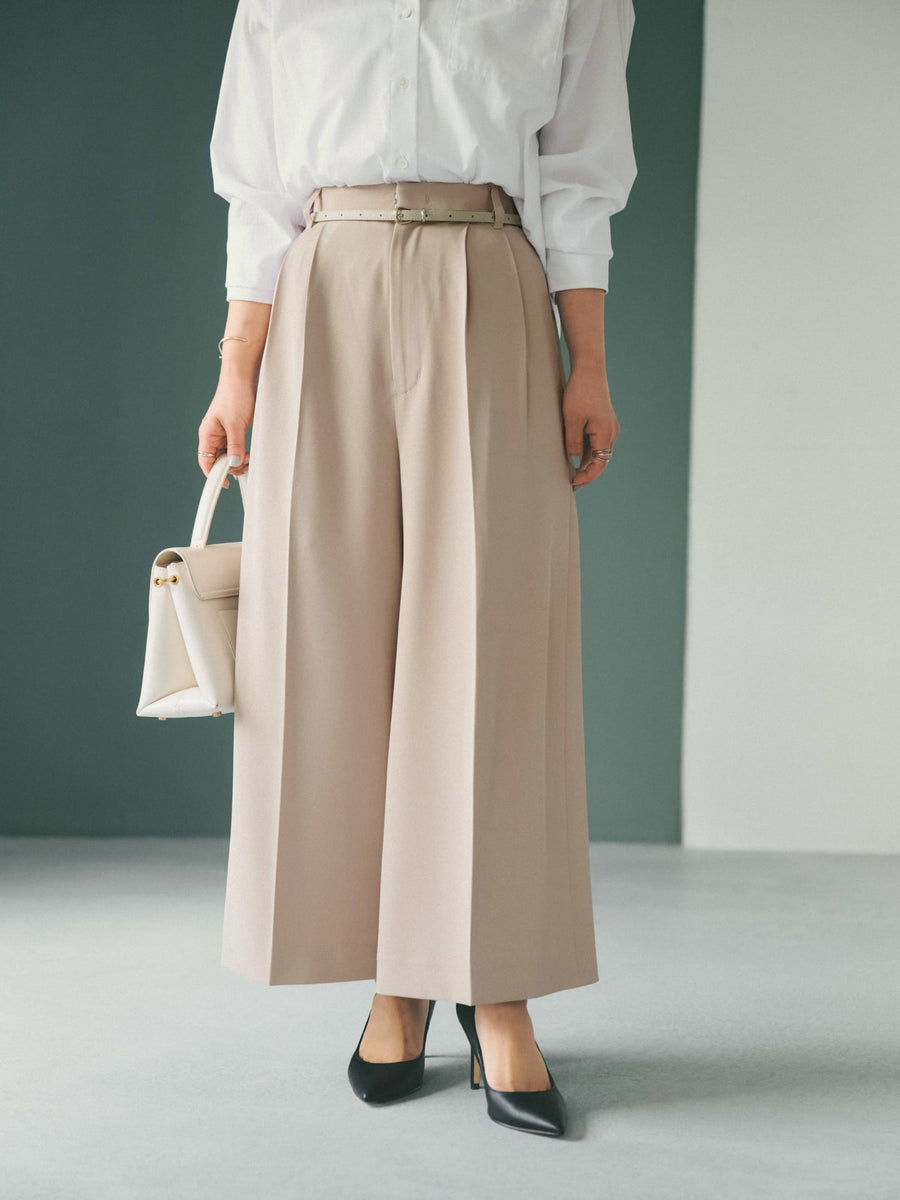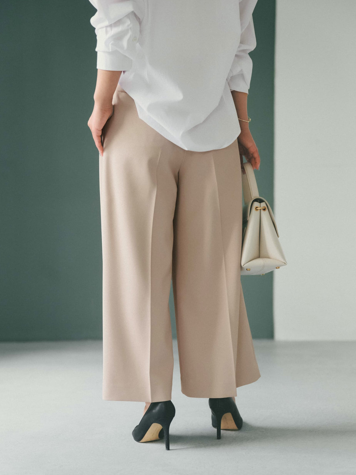 しっかりとワイドシルエットで、タックデザインとセンタープレスで脚長見え効果も◎