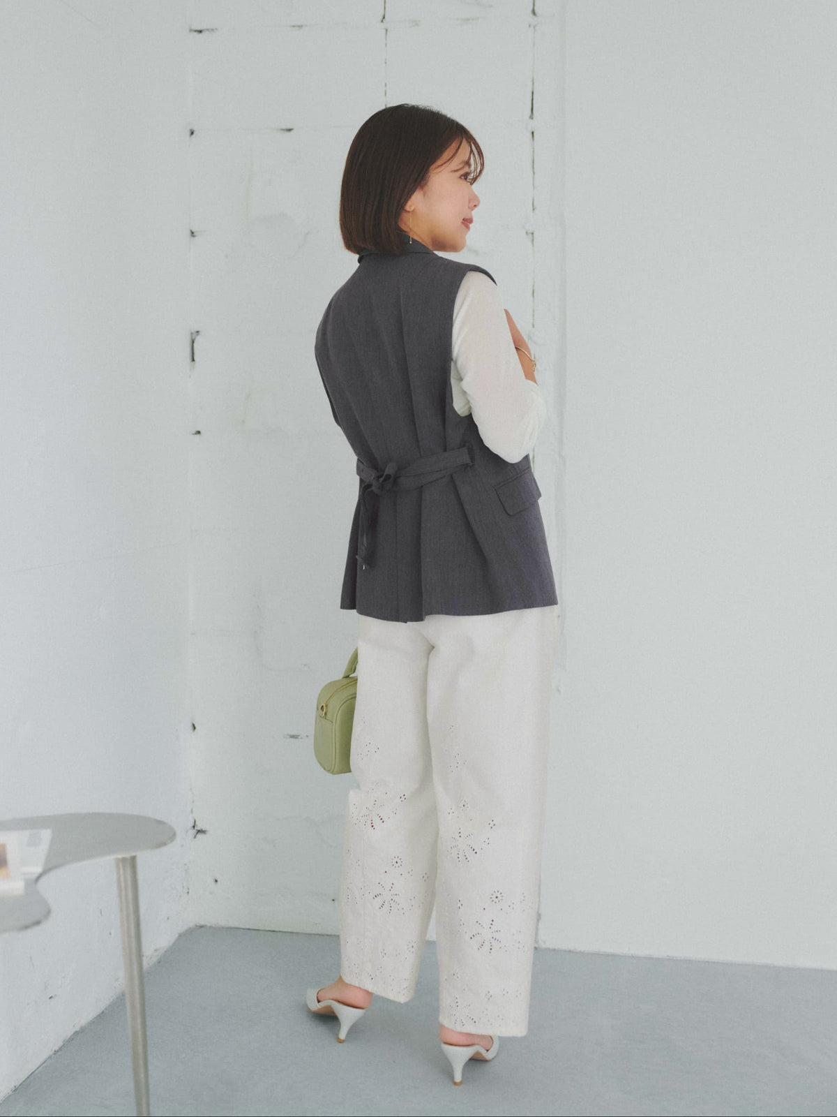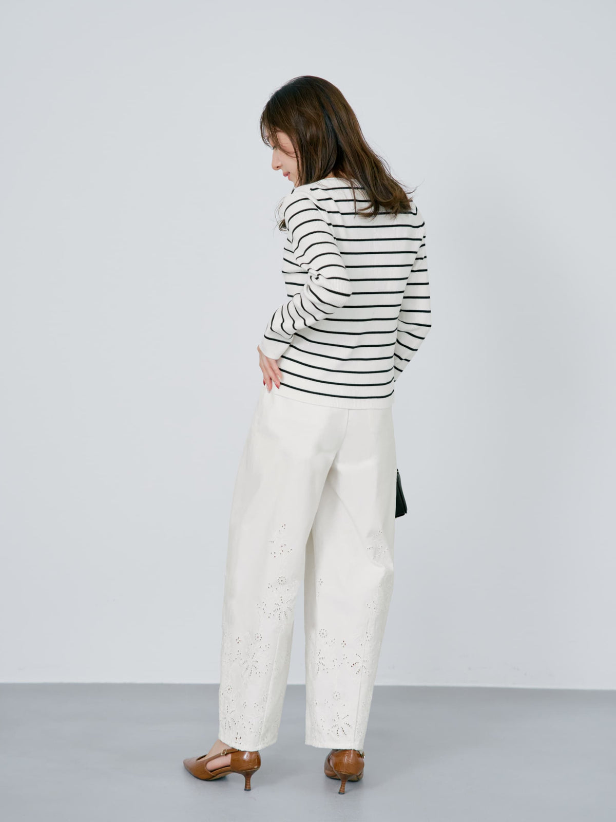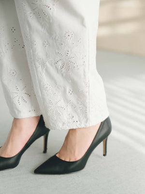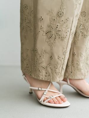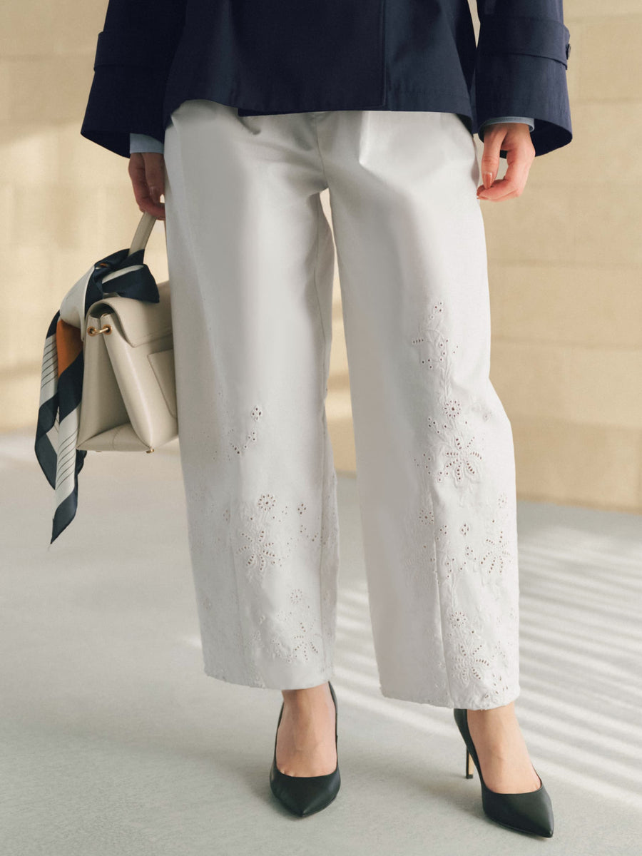 華やかな刺繍が映える、洗練カーブシルエットパンツ