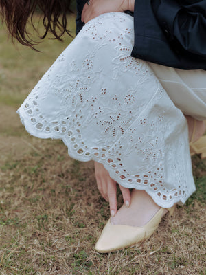 COHINAオリジナルの繊細な刺繍を贅沢に施した、エンブロイダリージャンパースカート。