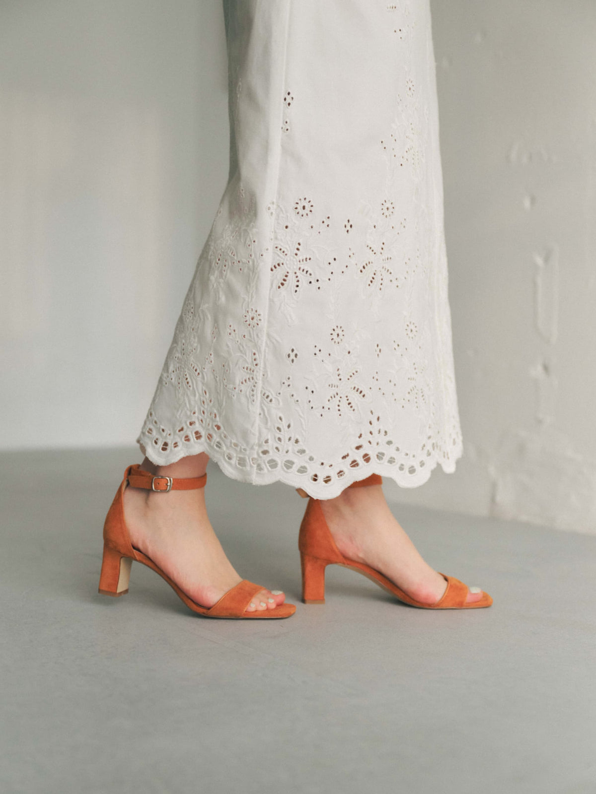足元はパンプスで上品に、フラットシューズやサンダルで軽やかに着こなすのもおすすめ。