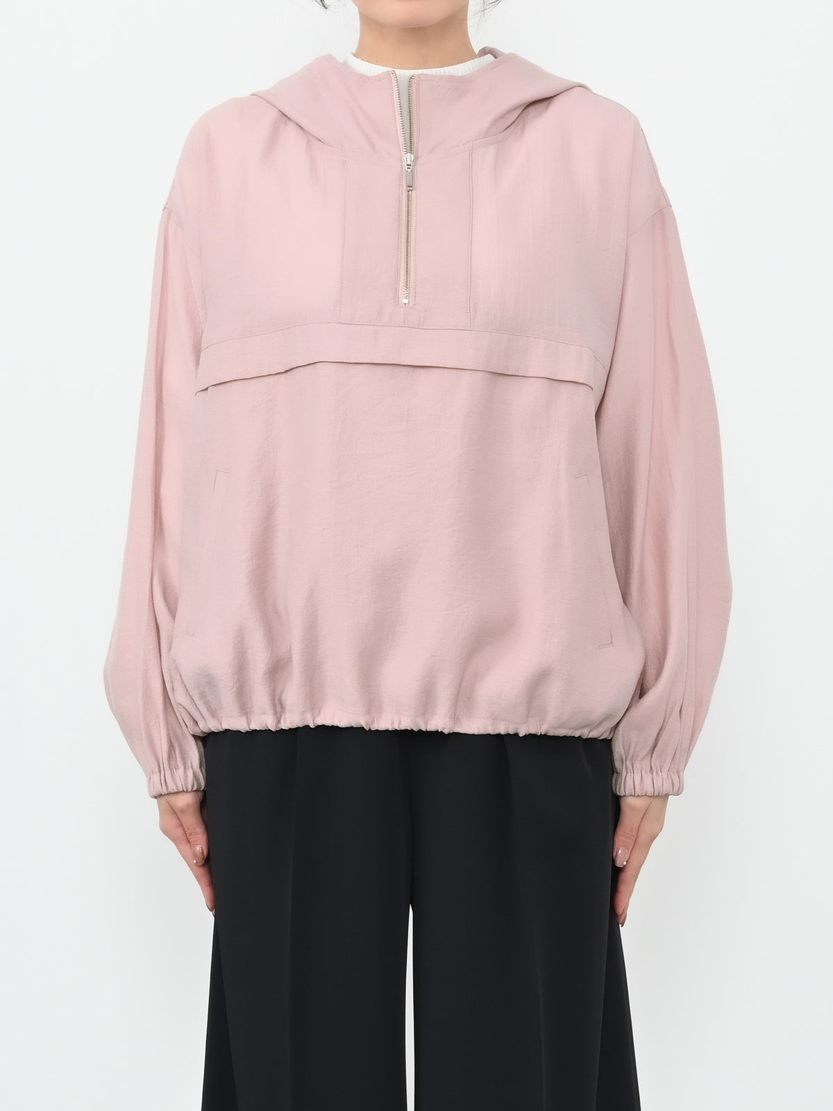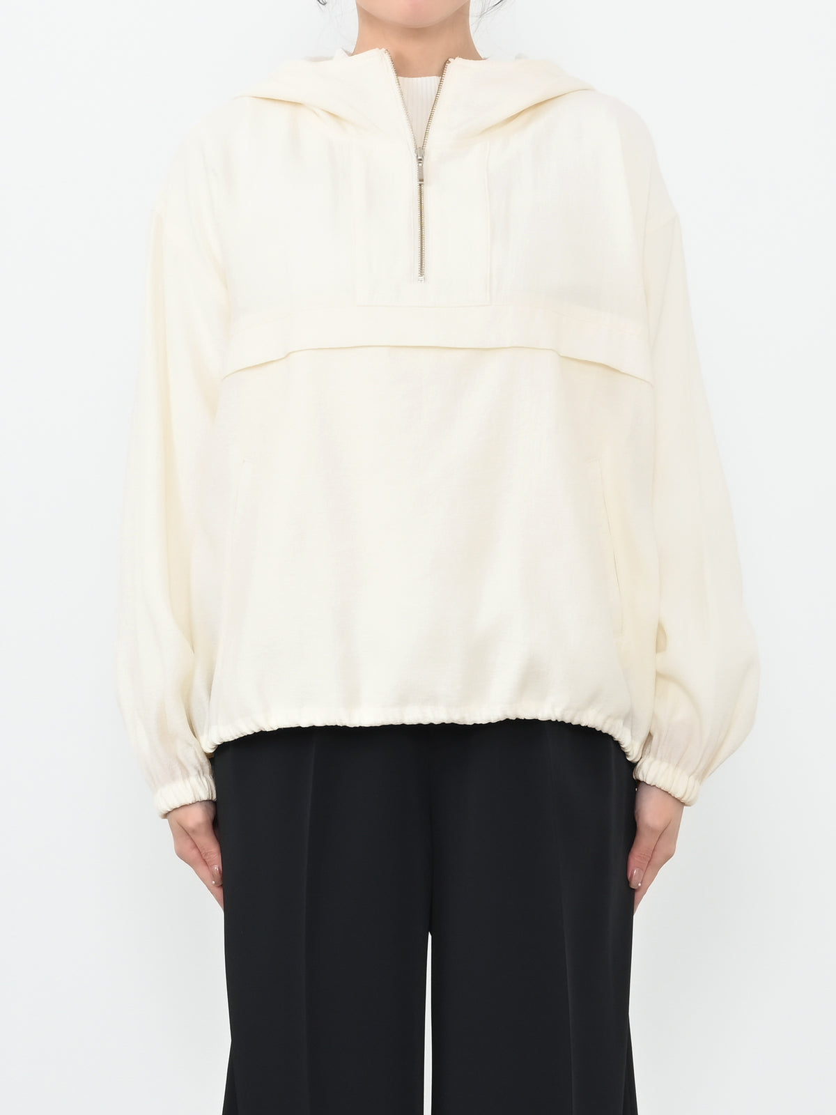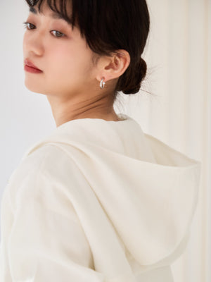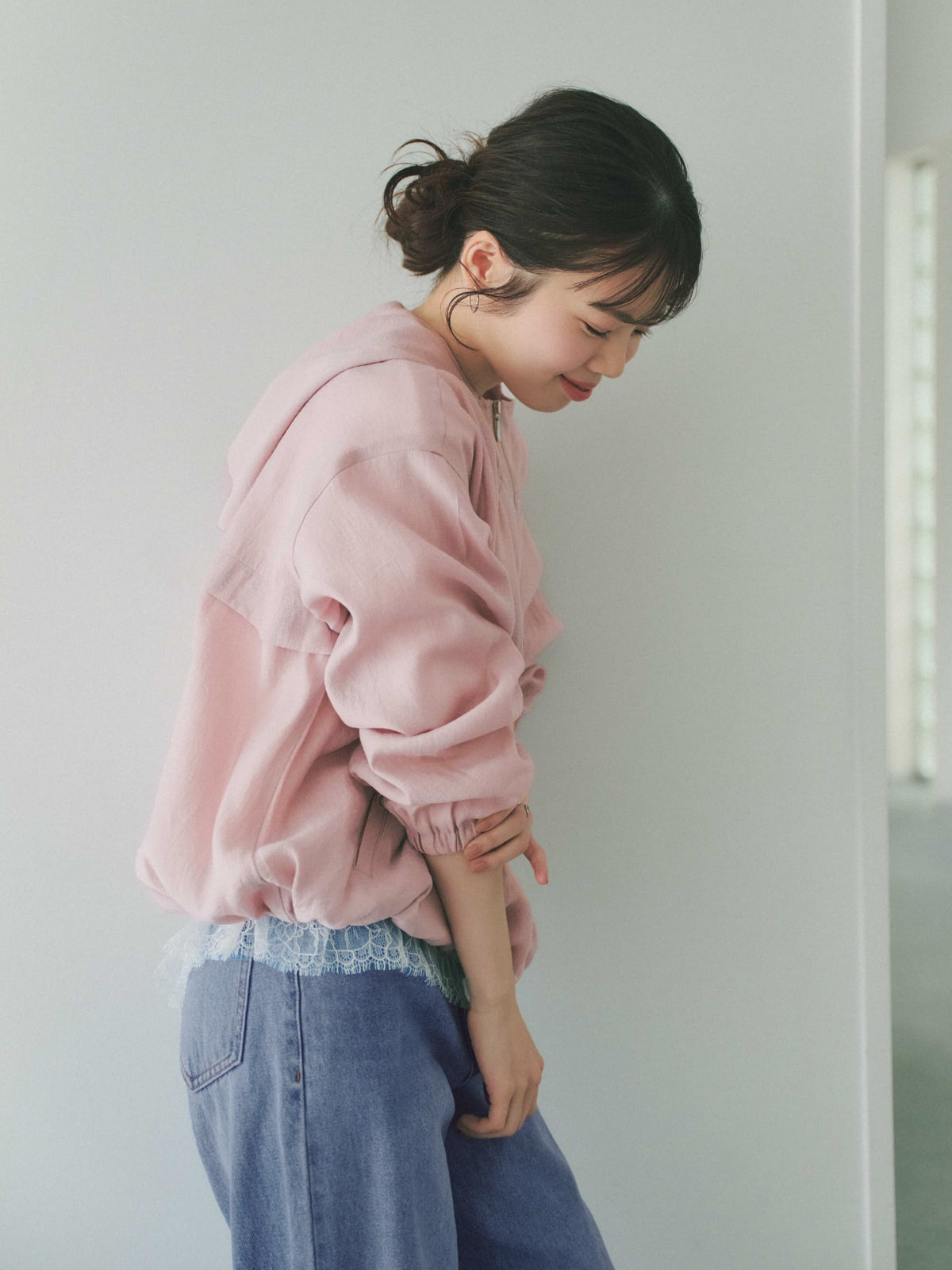 アノラックデザインをCOHINAらしく仕上げたアイテム。ほんのりツヤ感のあるシアー素材でブラウスライクに着られます。