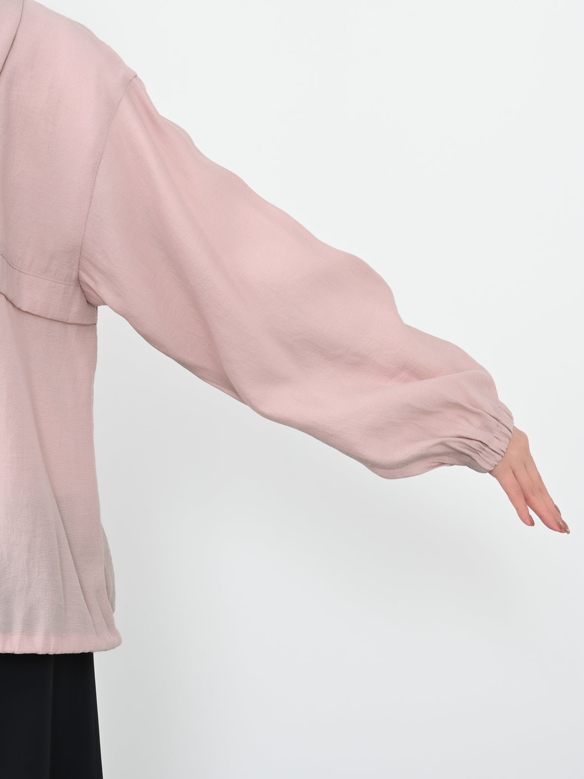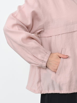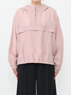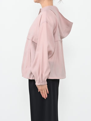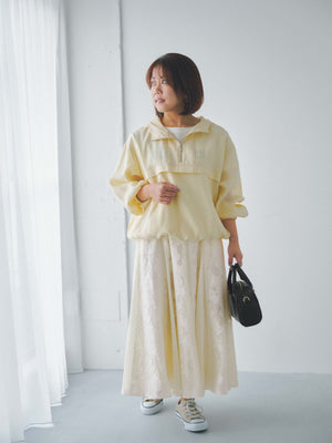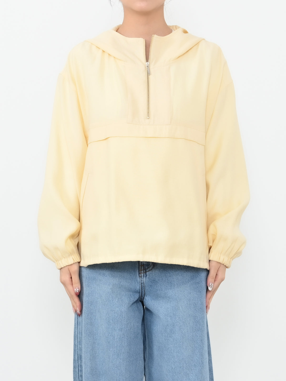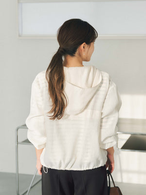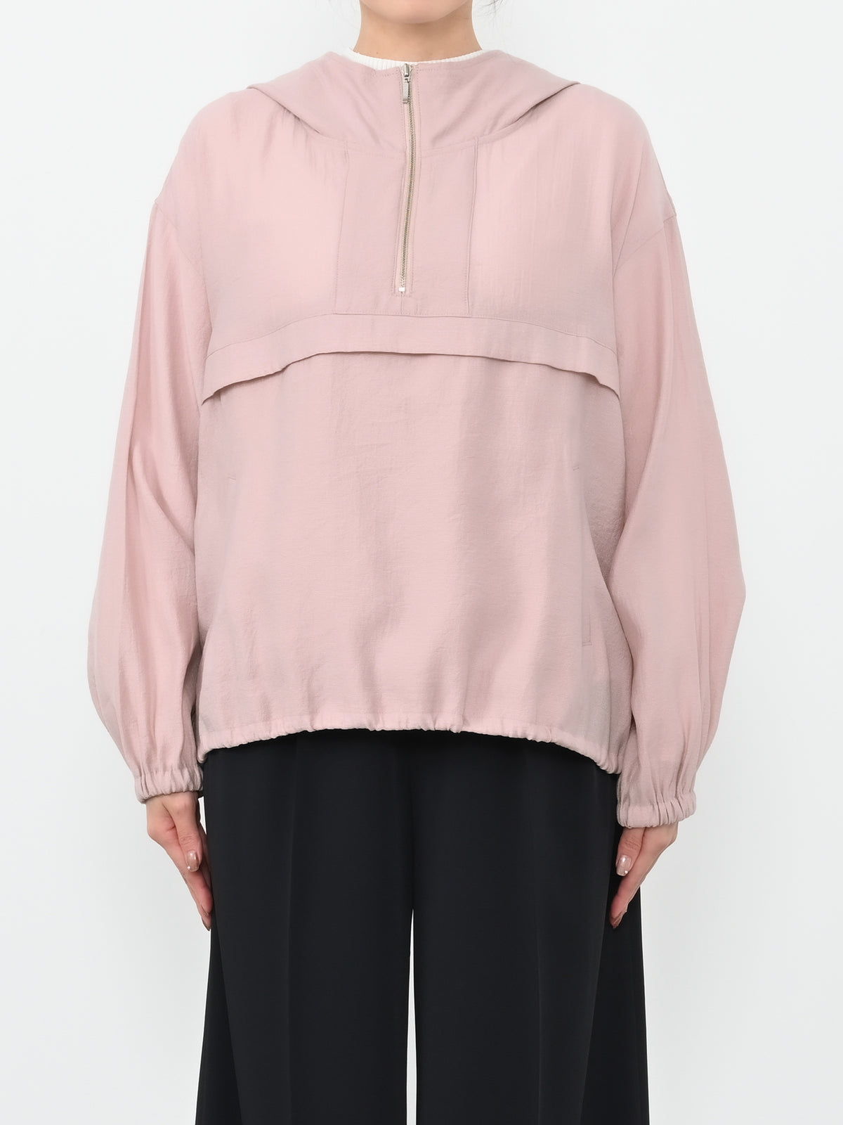 アノラックデザインをCOHINAらしく仕上げたアイテム。ほんのりツヤ感のあるシアー素材でブラウスライクに着られます。