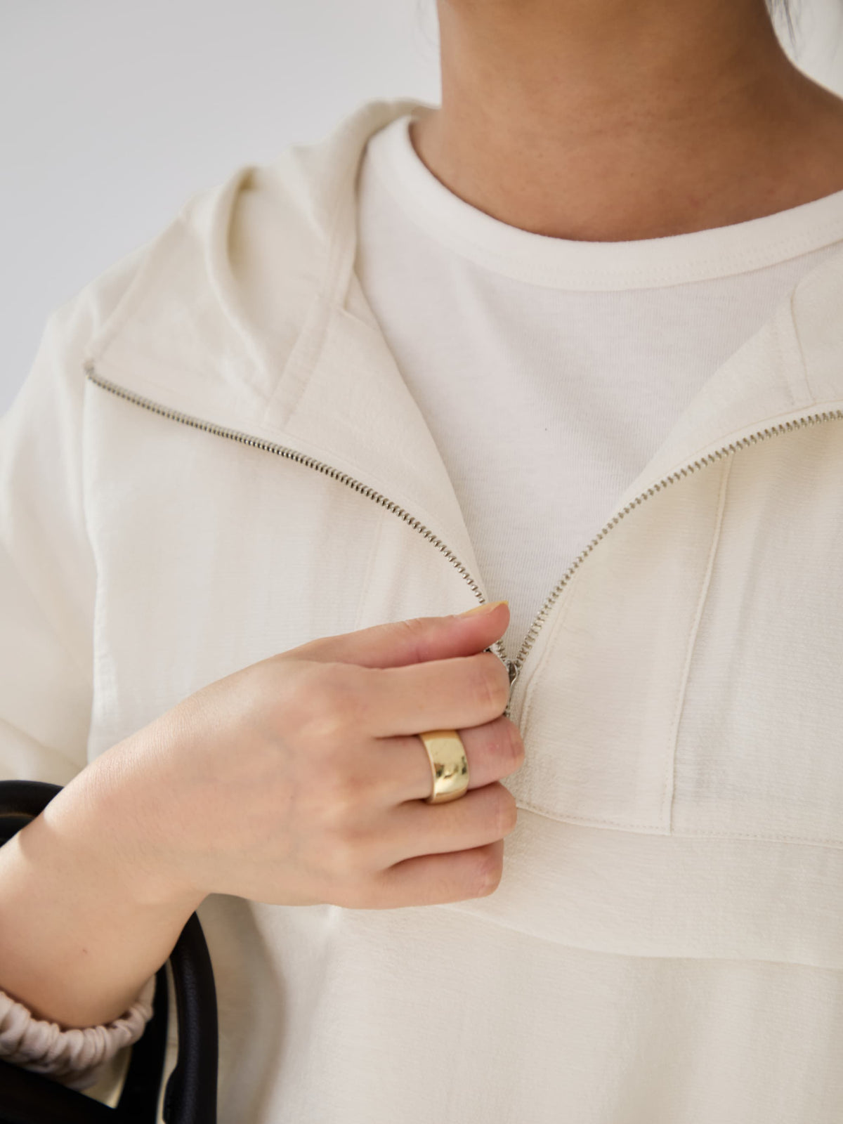ほんのり光沢で大人の抜け感を作るシアーアノラック