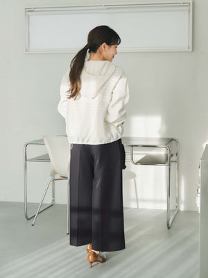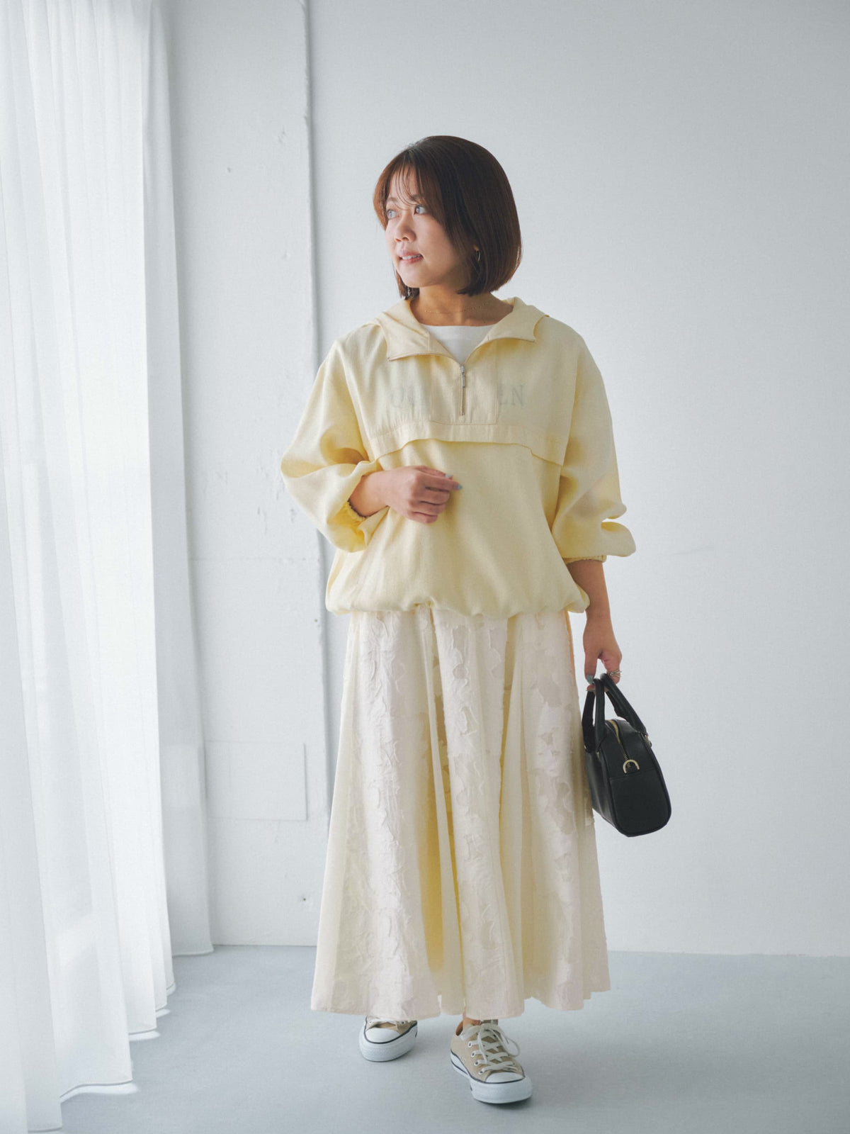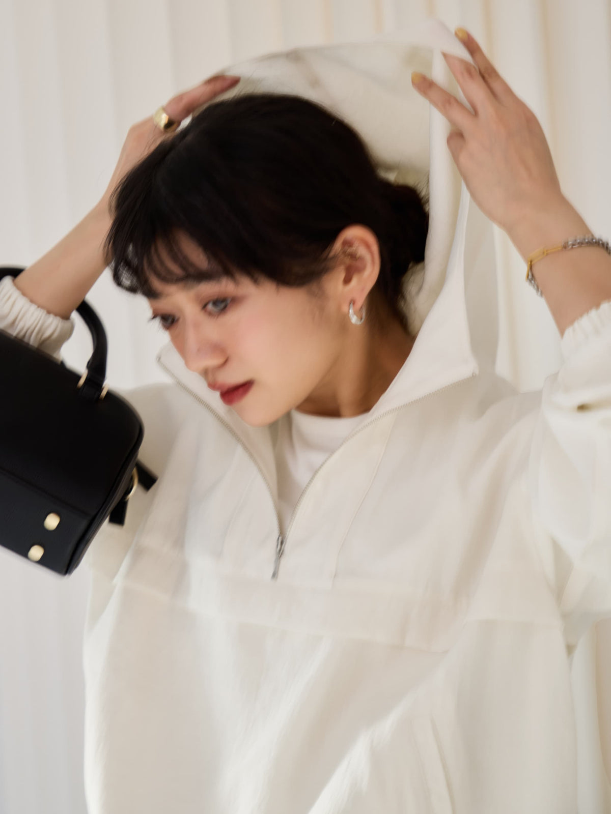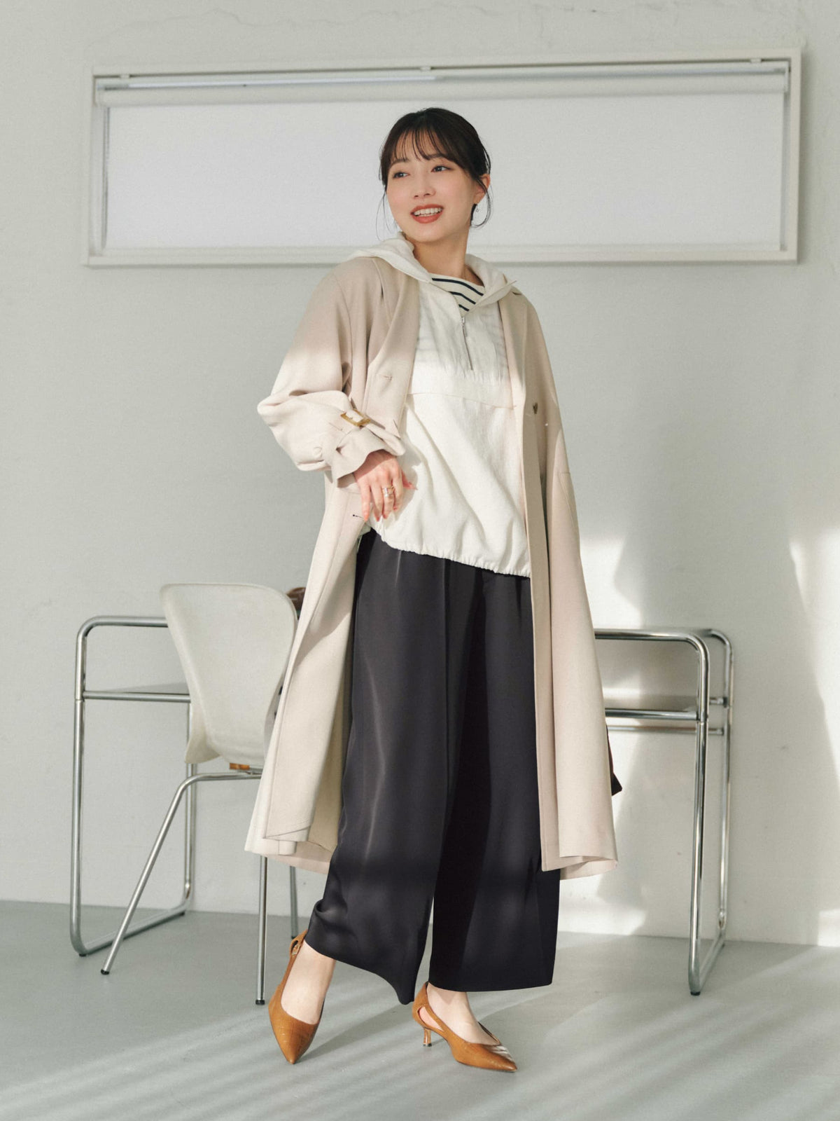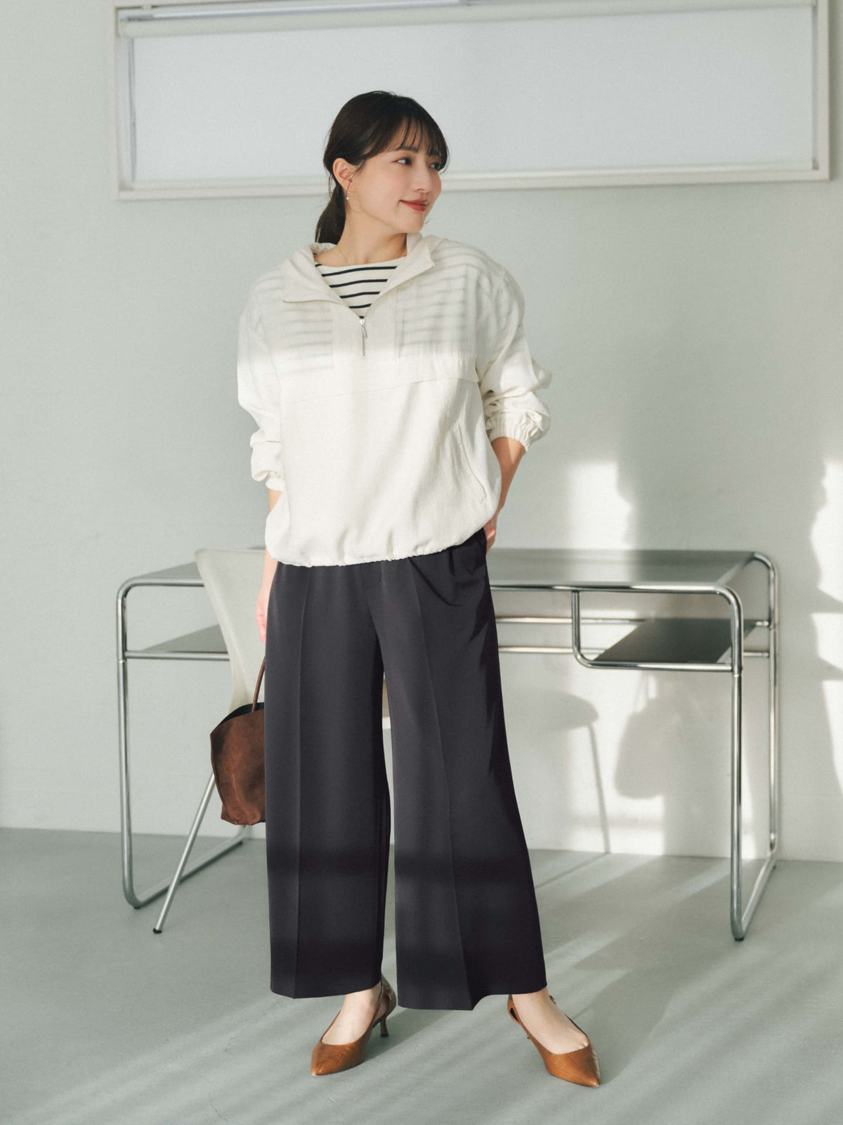 スポーティーなデザインながら、素材はラフすぎず上品な印象です◎裾のドロストで調整可能なのでボトムによって色々楽しめ、ヒールやスニーカー合わせなど幅広いスタイリングが叶います!