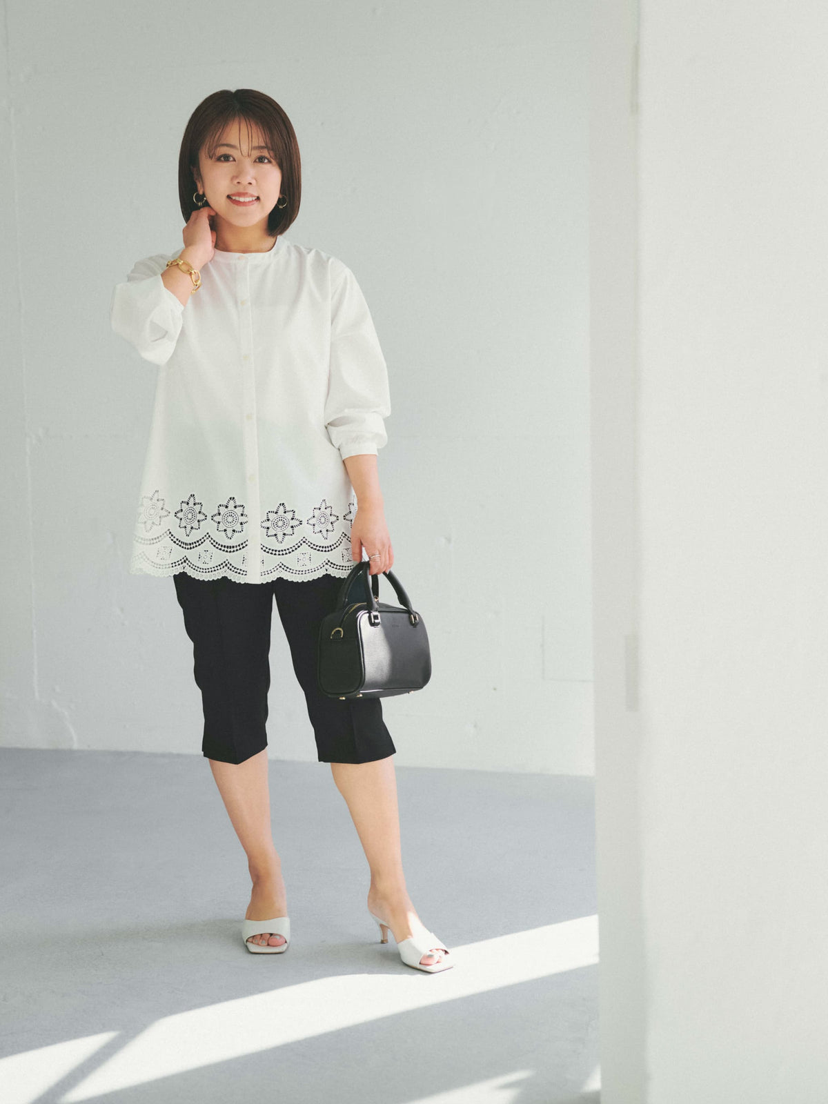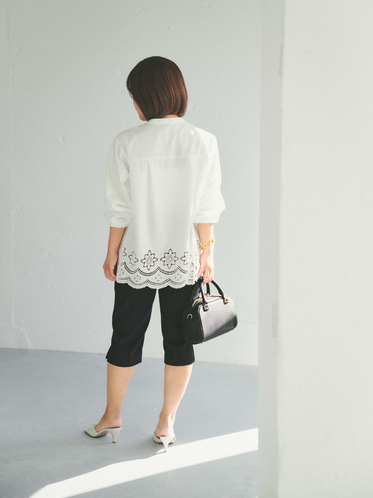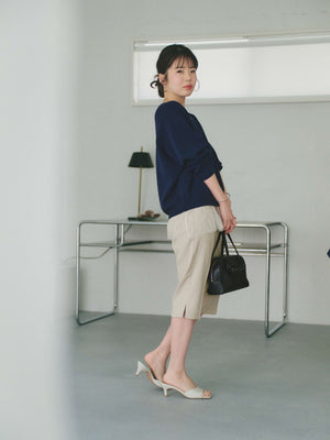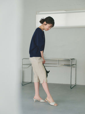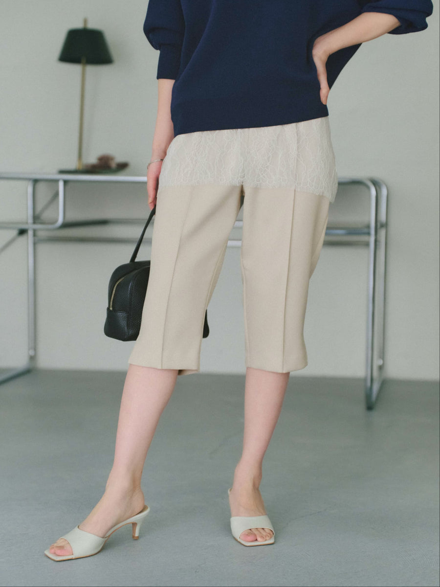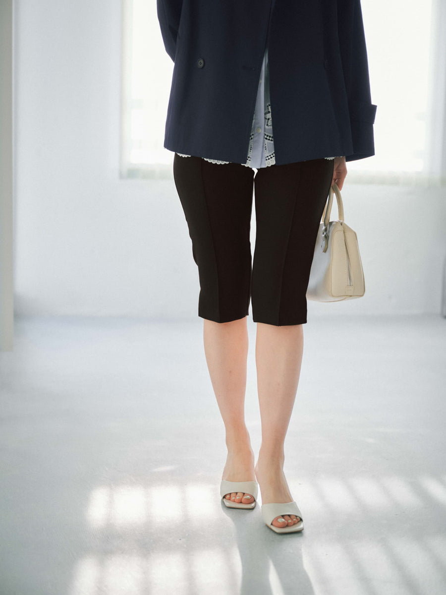 軽やかな足元を演出する6分丈のパンツは、オーバーシルエットのトップスと合わせることで、メリハリのあるスタイリングが完成します。