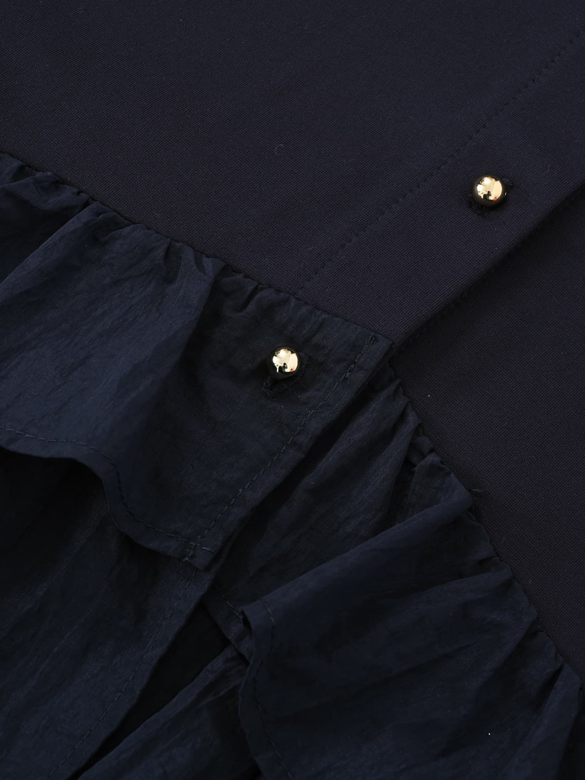 裾のペプラム部分はほんのりとシボのあるナイロン生地を使用し、シワも気になりにくい素材をセレクトしました。ご家庭で洗えるイージーケアも魅力です。