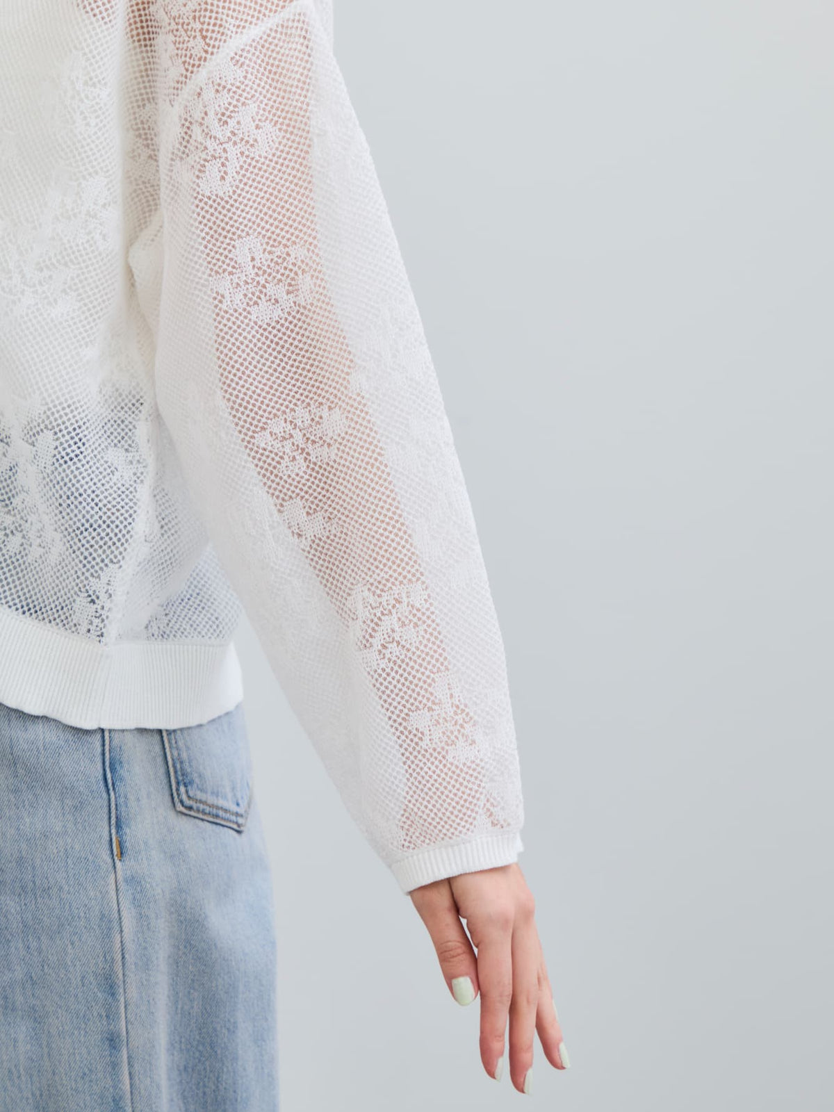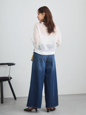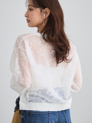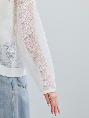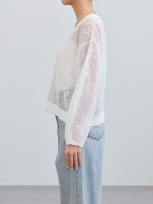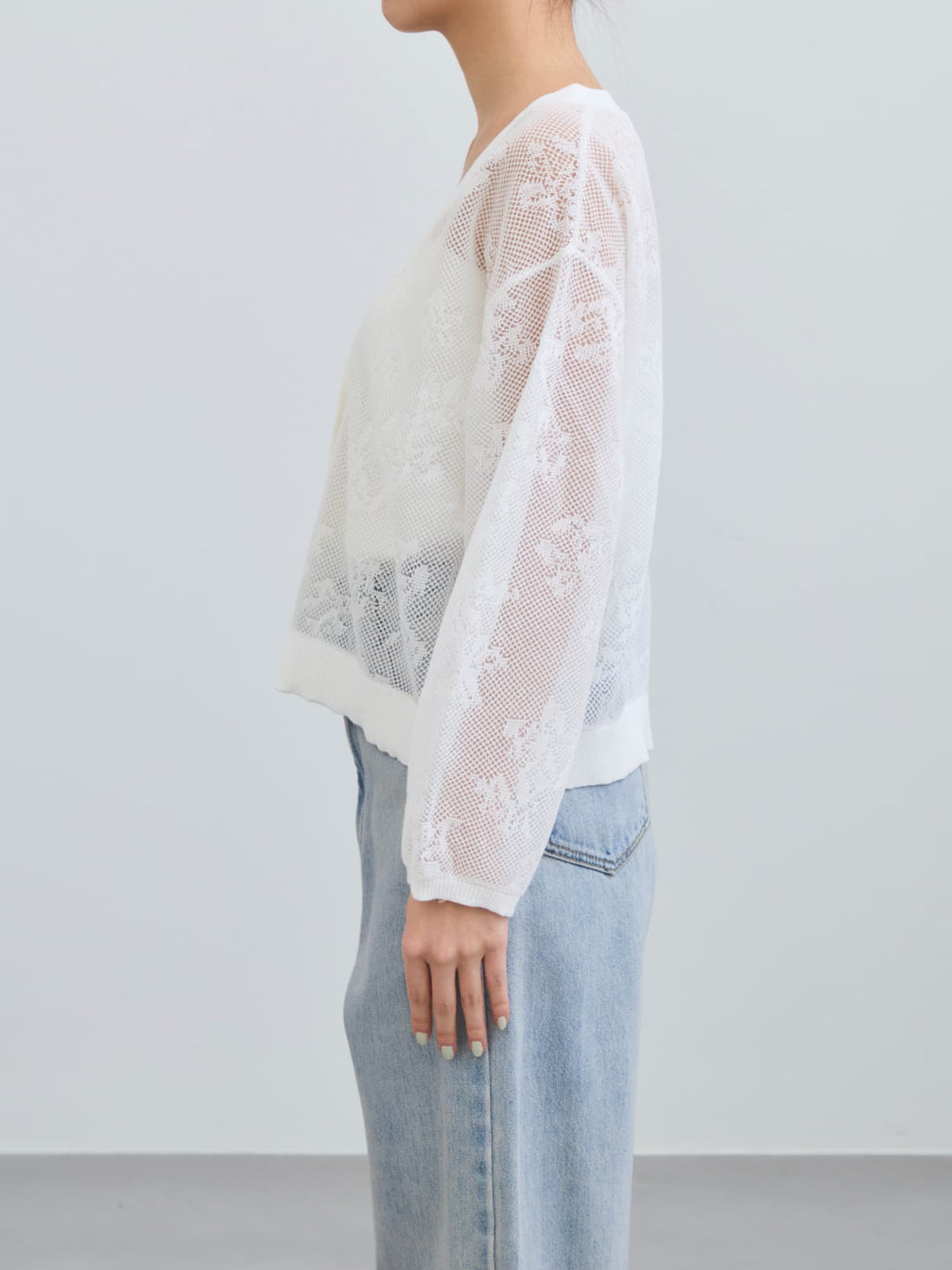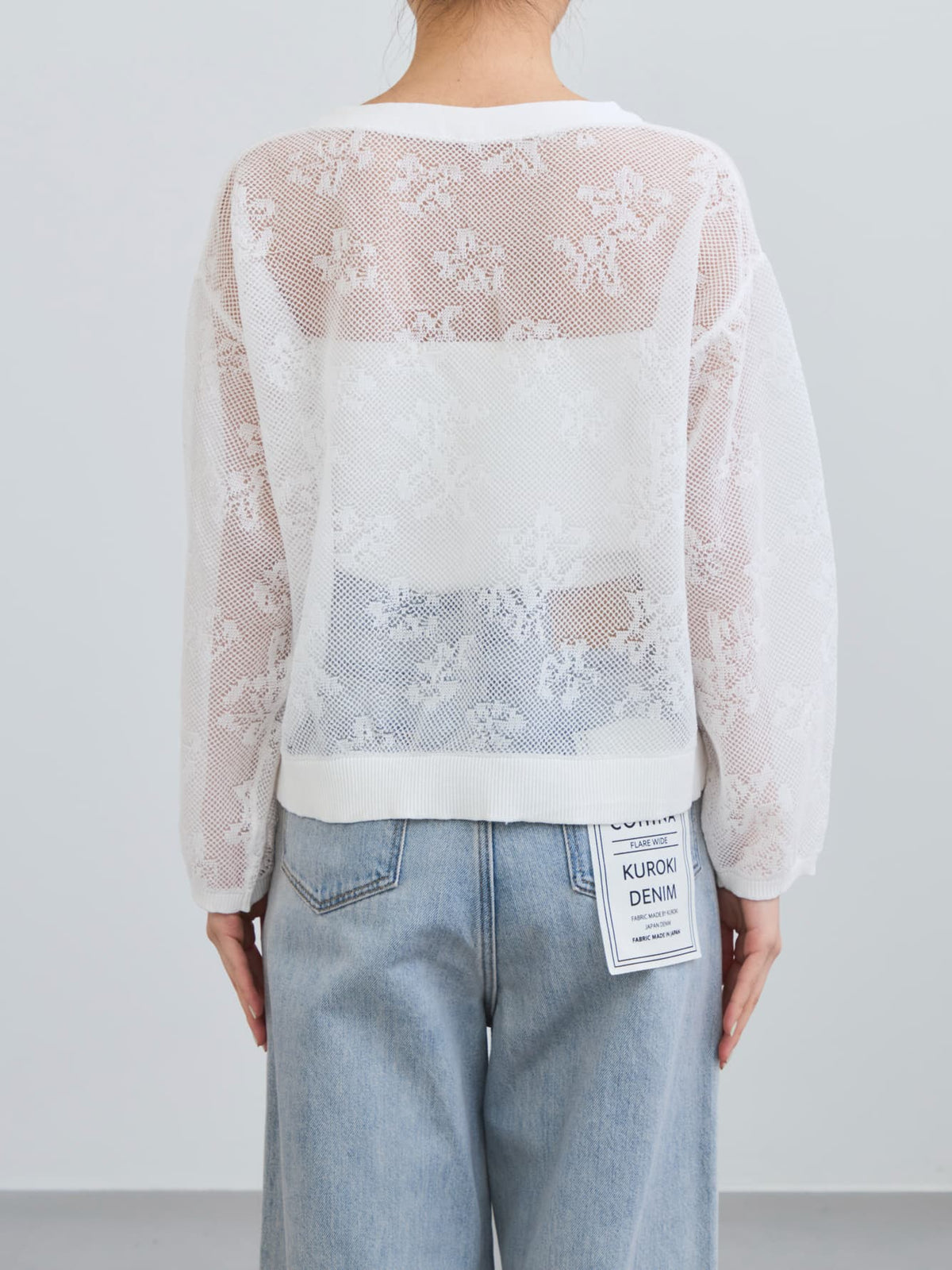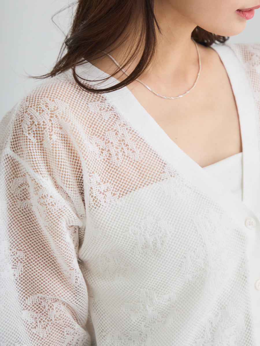 繊細なボタニカル柄がふわりと浮かび上がる、軽やかなシアーカーディガンが登場。