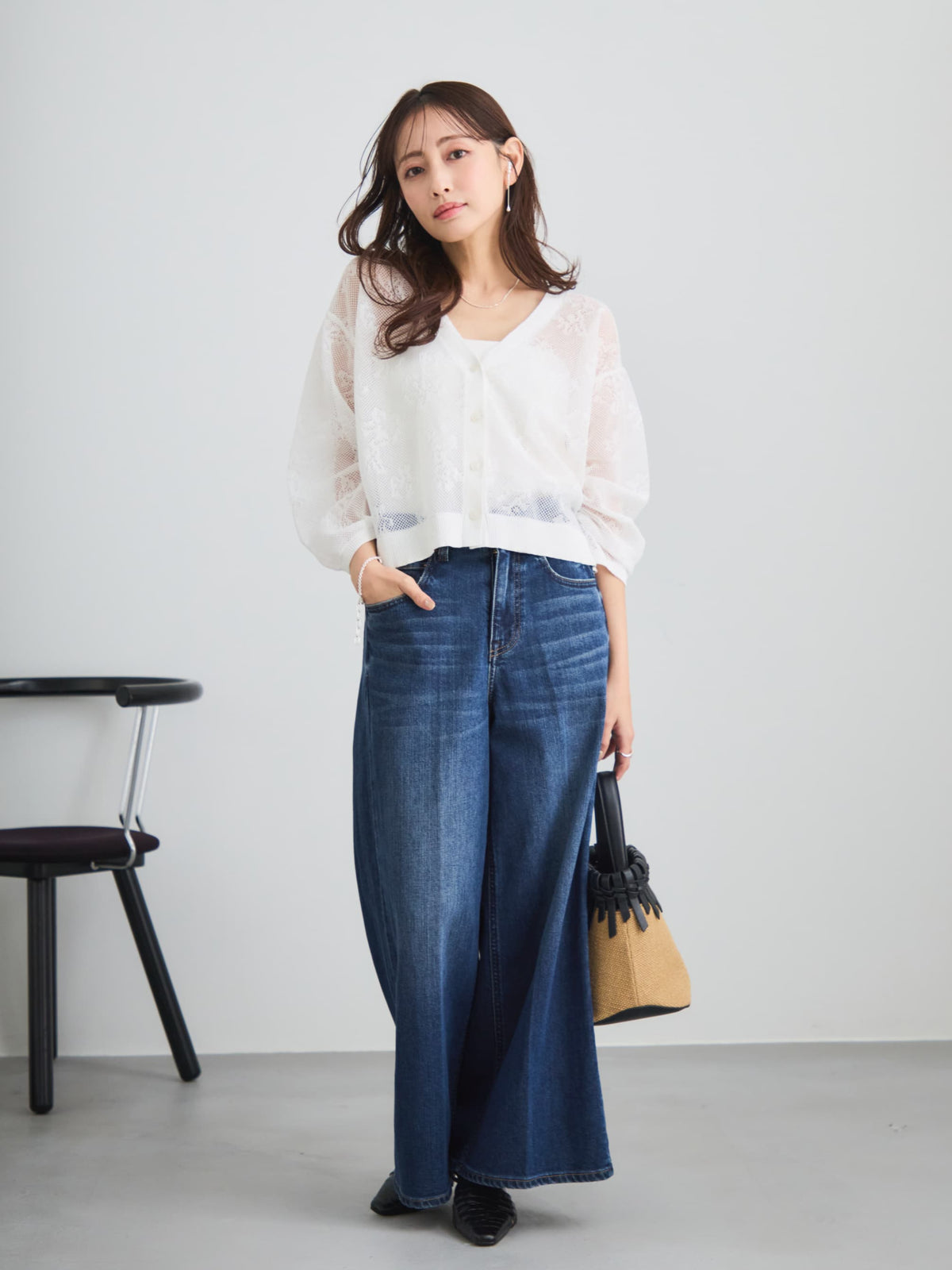 ワンピースやスカート、デニム合わせなどフェミニンからカジュアルまで幅広いアイテムと好相性。