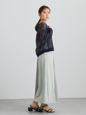 ドライな風合いの綿混の糸と透明糸を使い、涼しげに透けるジャカード柄に編み立てました。