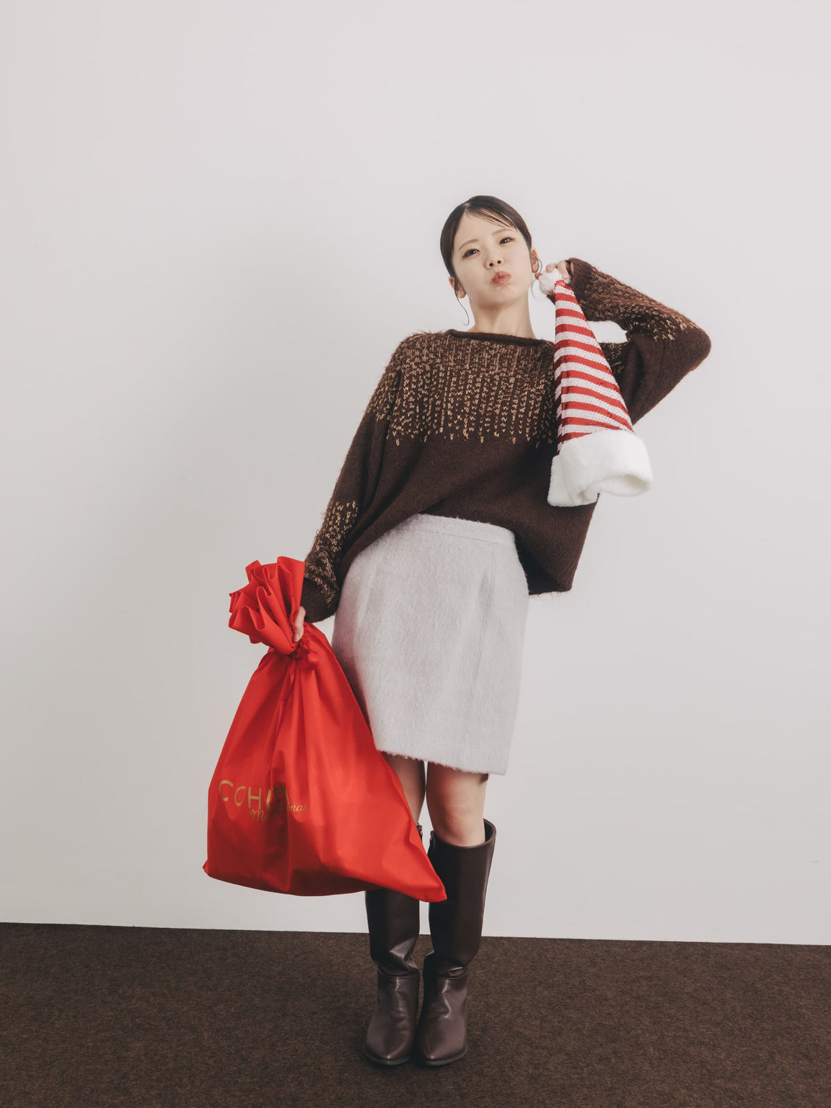 冬のコーデをふわっと照らしてくれる、YUNA SANTAの“あったかい魔法”のような1枚です。