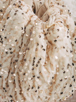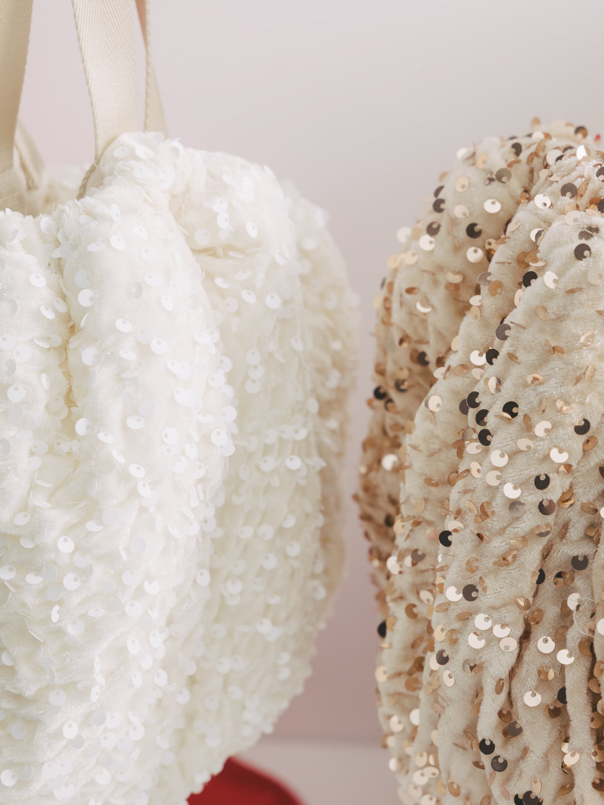 繊細なきらめきがコーデにそっと魔法をかけてくれる、スパンコール×ベロアの“冬キラバッグ”。柔らかいベロアにスパンコールを散りばめた、冬の光に映える特別感のある素材を使用。