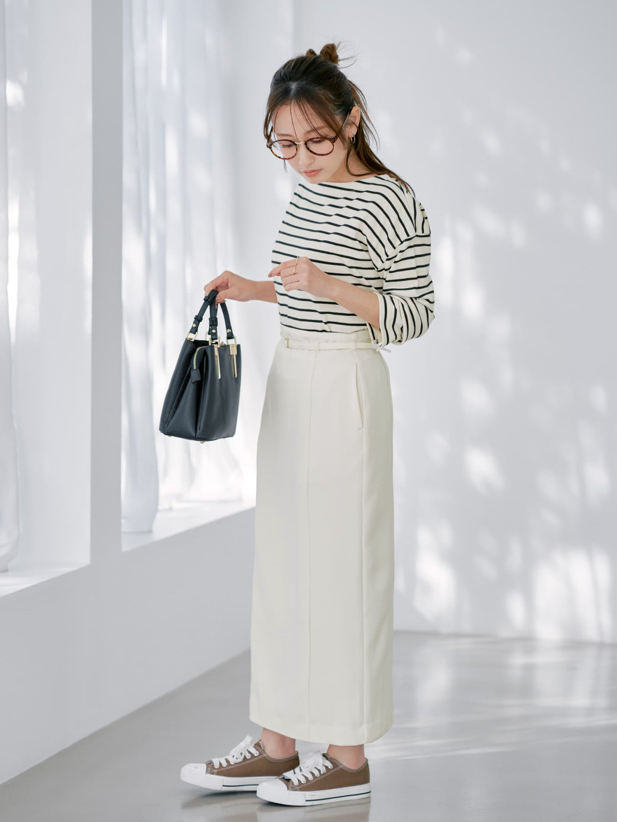 デニム×ボーダーの定番カジュアルスタイルからフェミニンなアイテム合わせの大人カジュアルまでデイリーに着回せます。