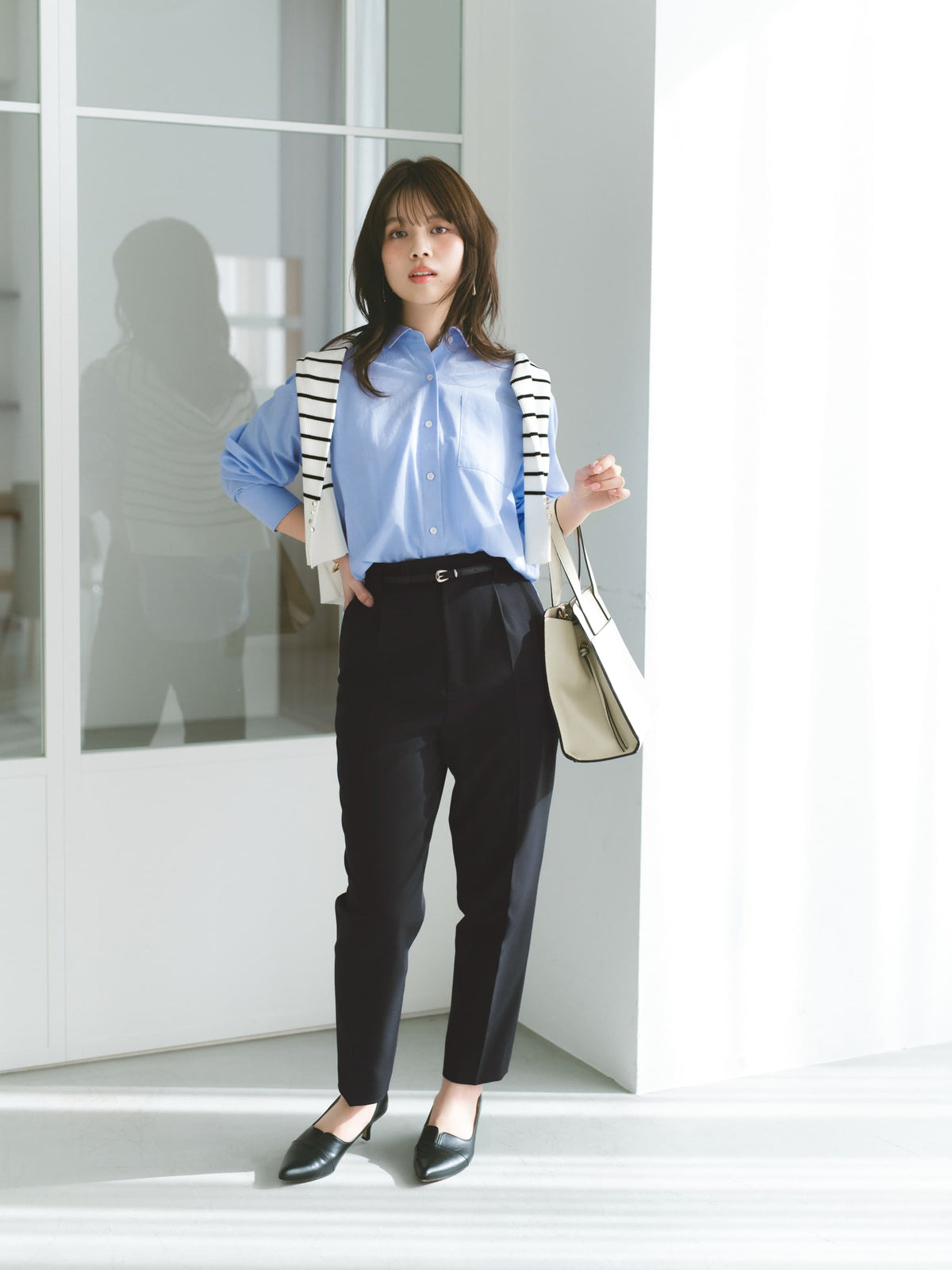 すっきりと美脚見えするテーパードパンツは、トップスをインしてもアウトでもバランス良く決まるのが嬉しいポイント。デイリー使いはもちろん、きれいめなシーンにも自然と馴染む頼れる1本です。