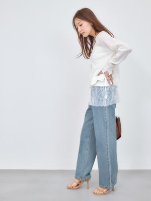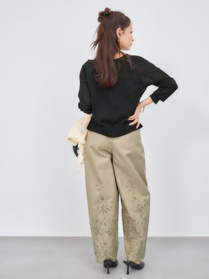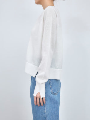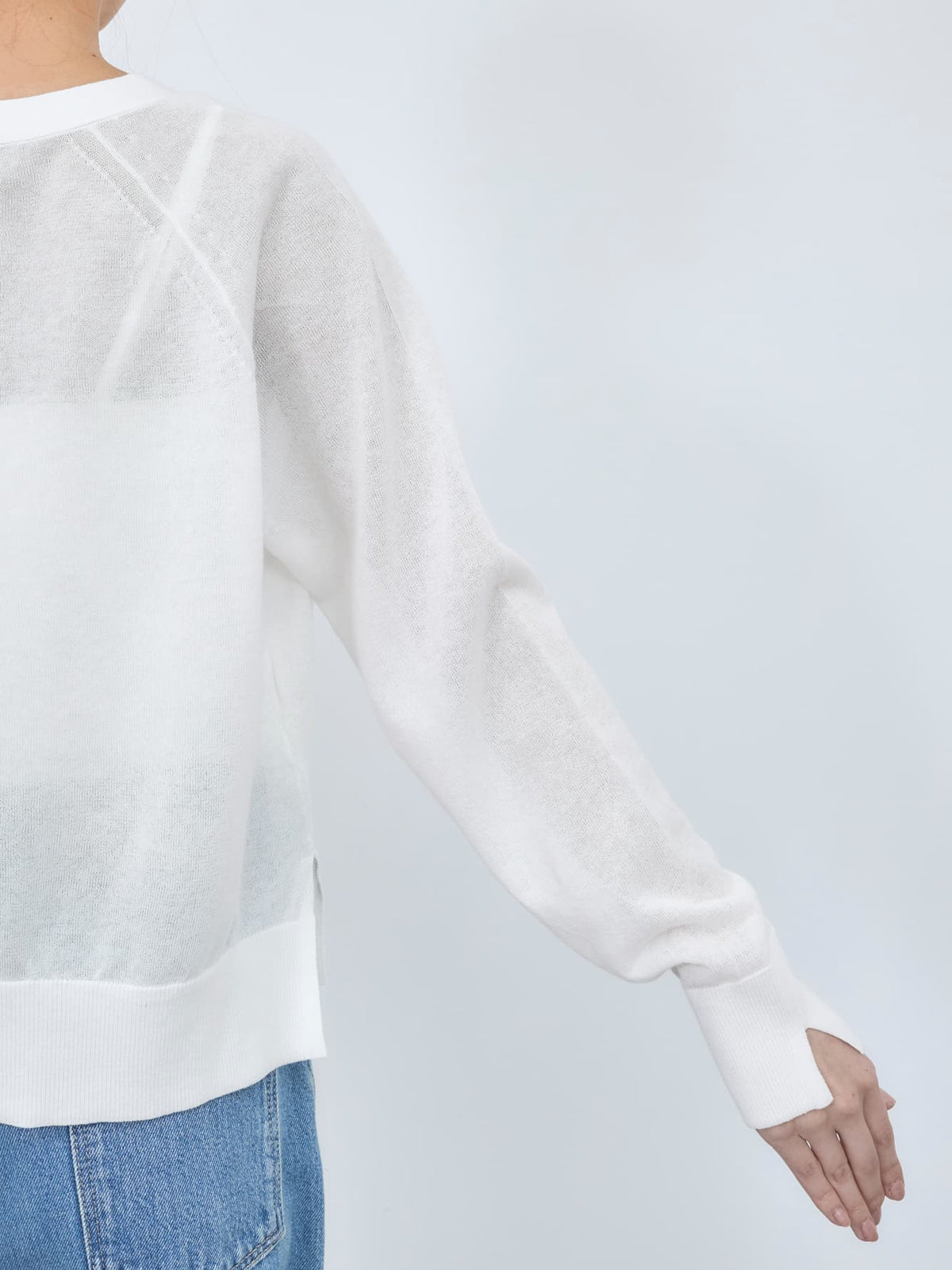 ドライタッチのコットンベース素材を使用し、シアー感のある柔らかな風合いの編み地に仕上げました。