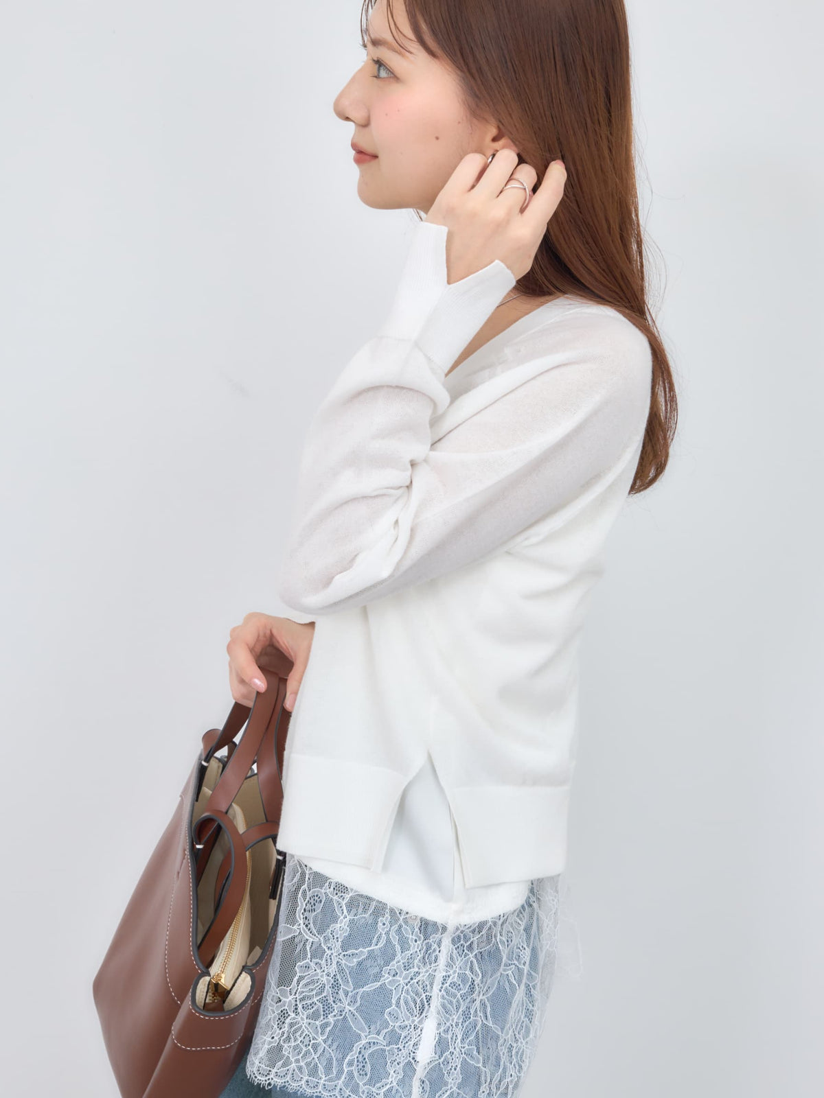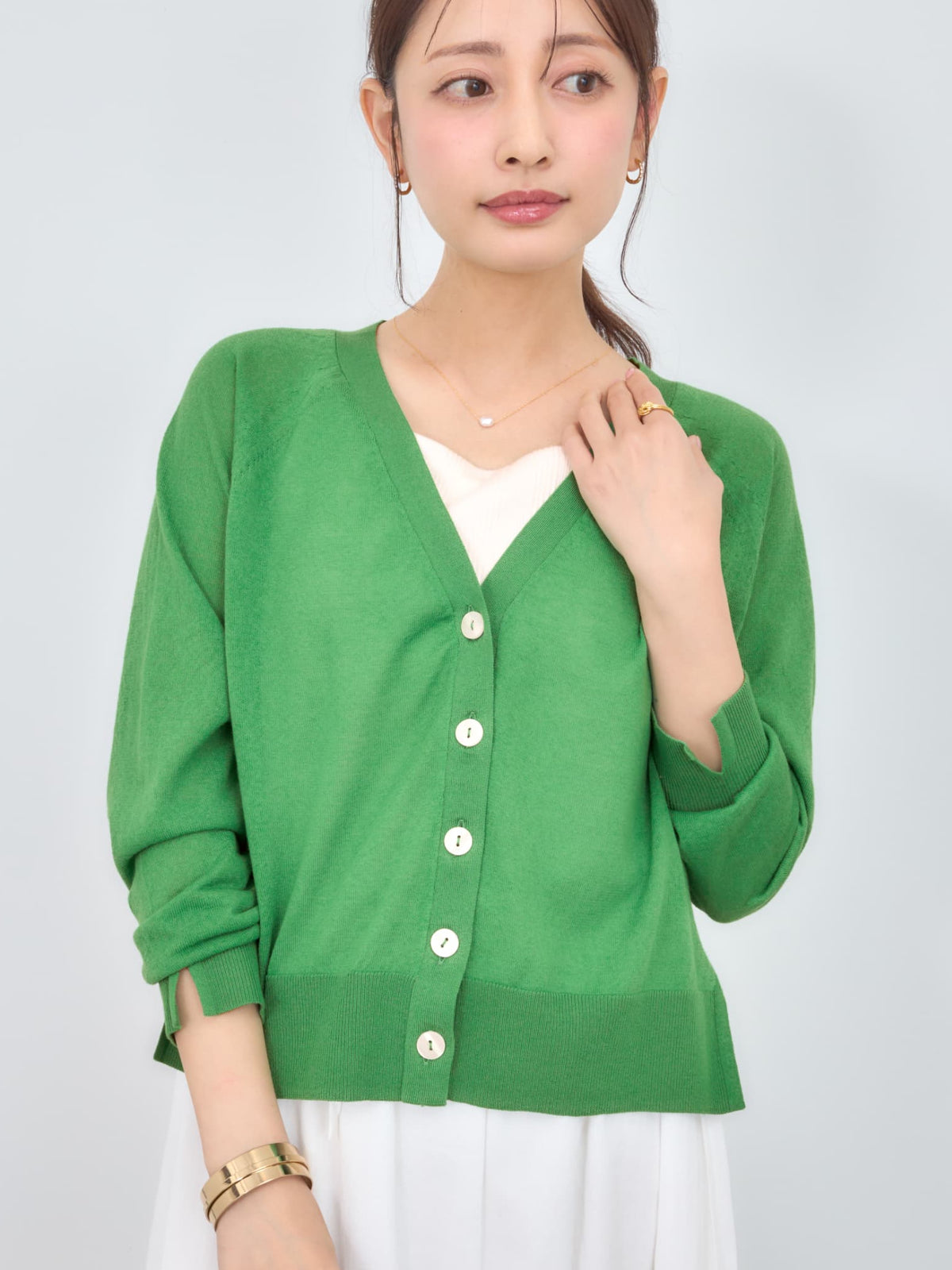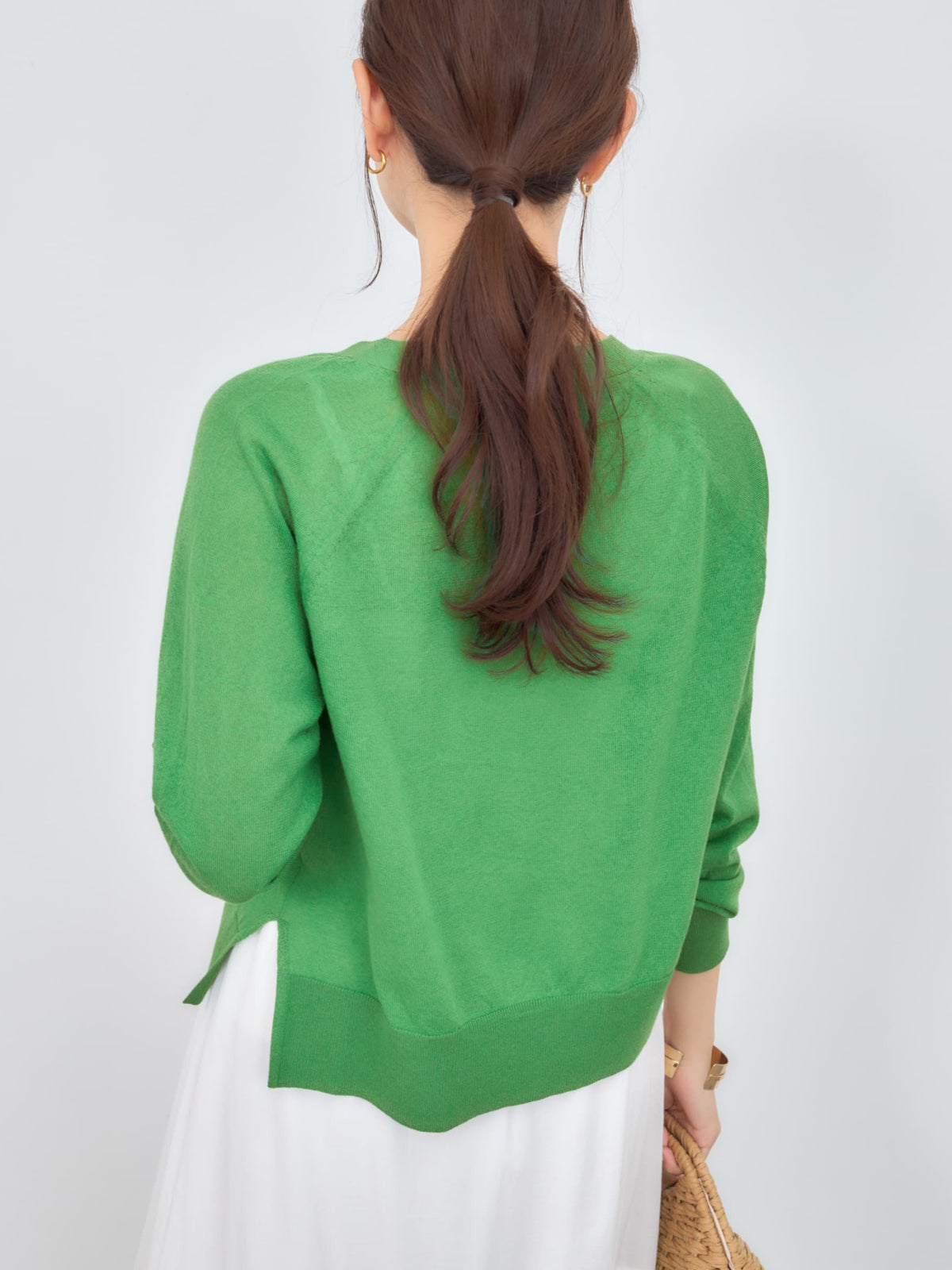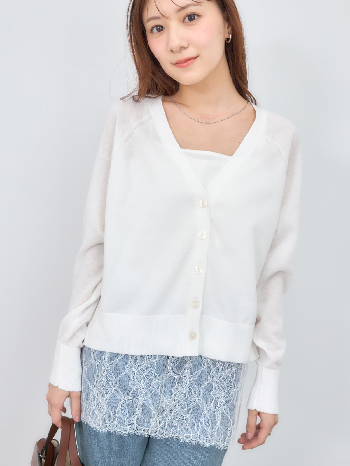 程よい透け感がありこれからの時期に羽織りやすいシアー素材のカーディガン。横のスリットで抜け感をプラスし、144cmで骨盤が隠れるくらいの丈感もポイント◎