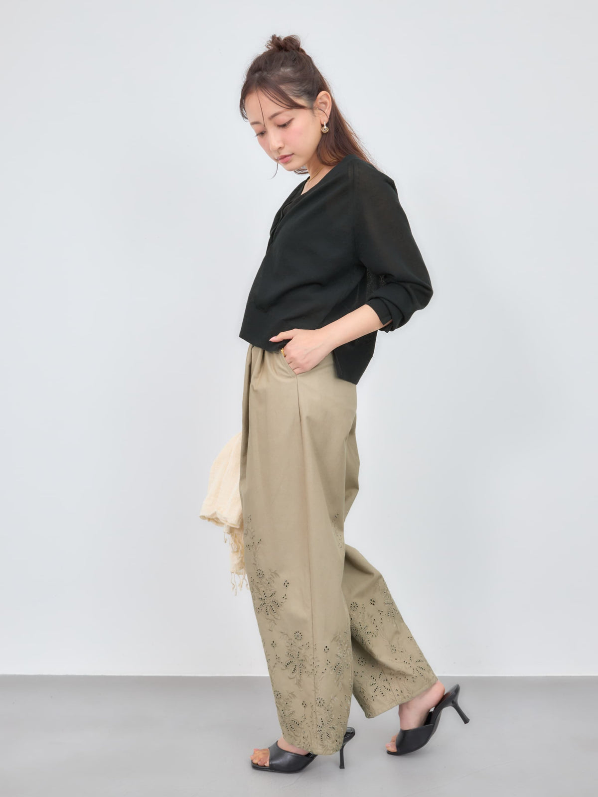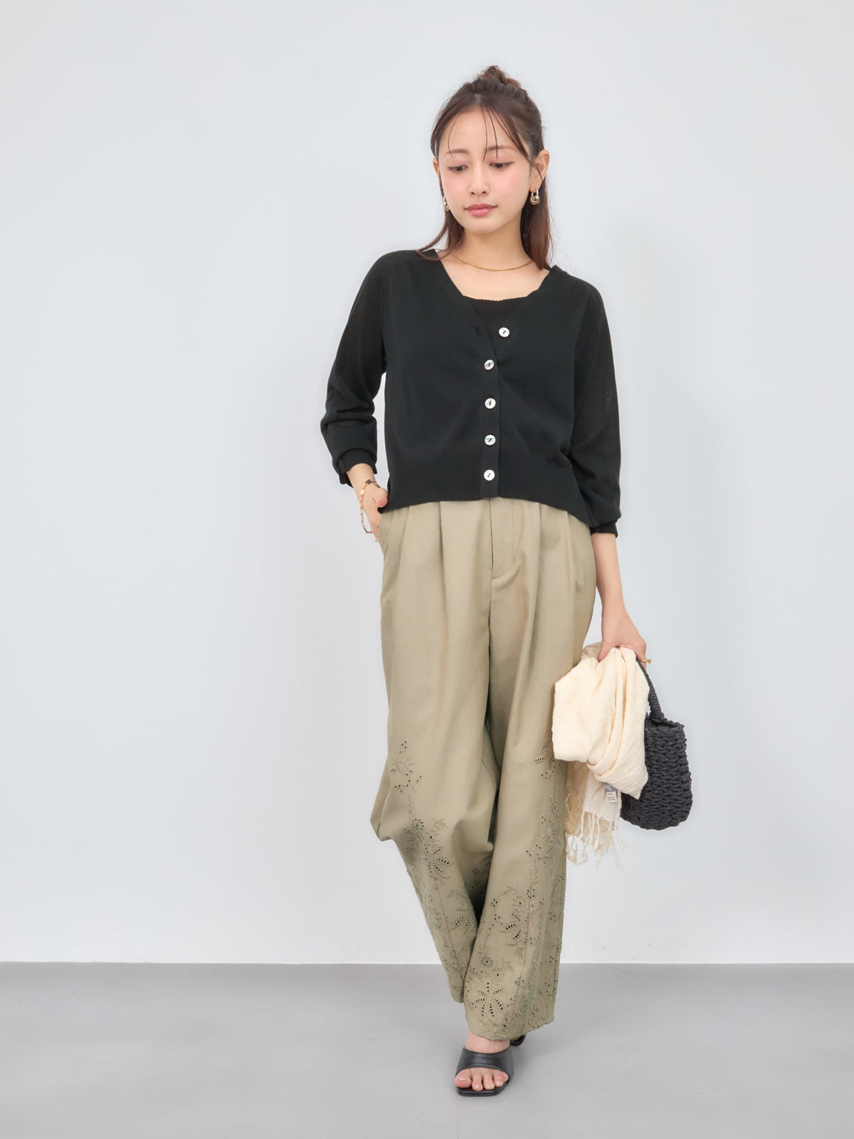 ワンピースやノースリーブの上にさらっと羽織るだけで自然と馴染む手軽さも魅力。肩掛けしたり腰巻きにするアレンジも◎今季はレースアイテムなど、シアー感を活かしたレイヤードスタイルが旬な着こなしになりおすすめです。