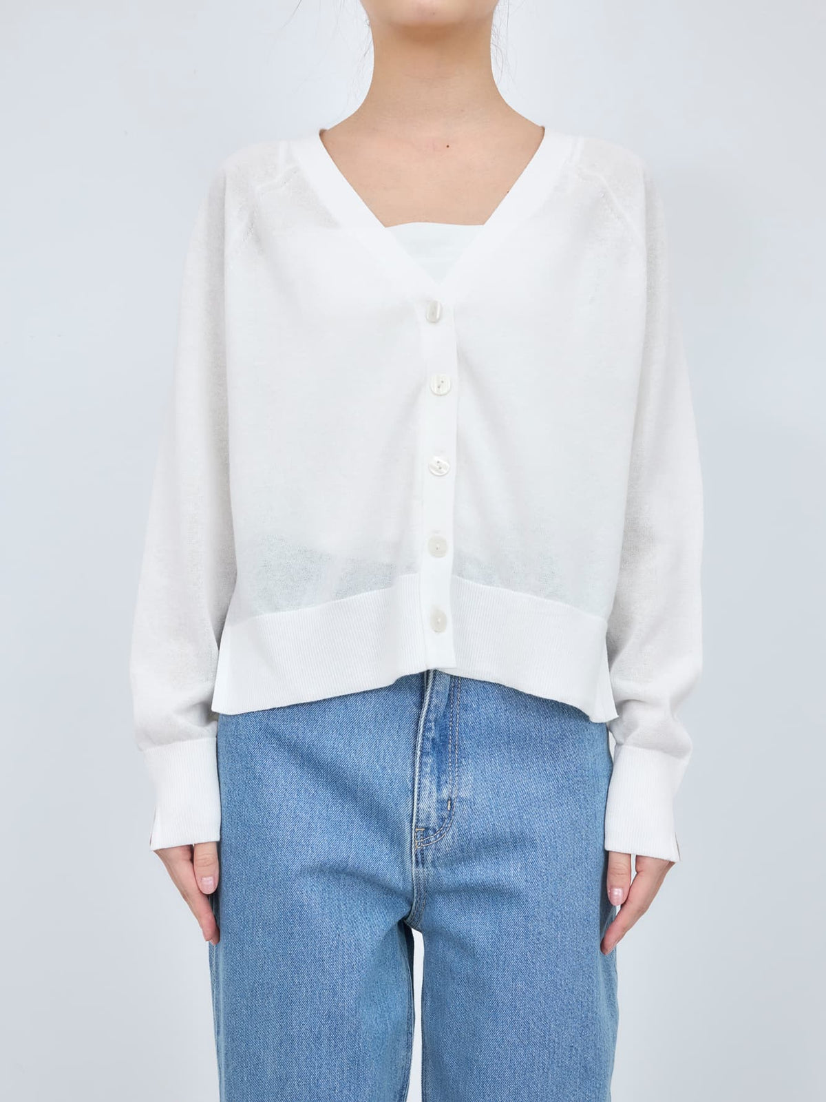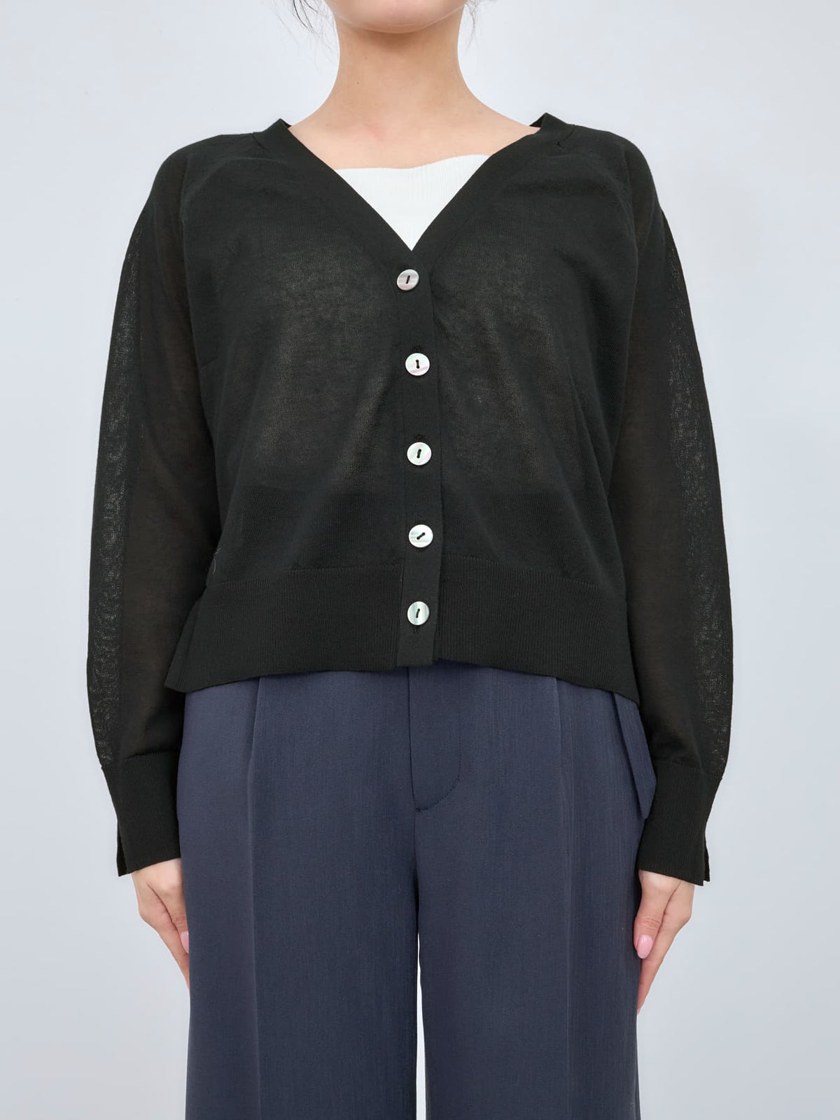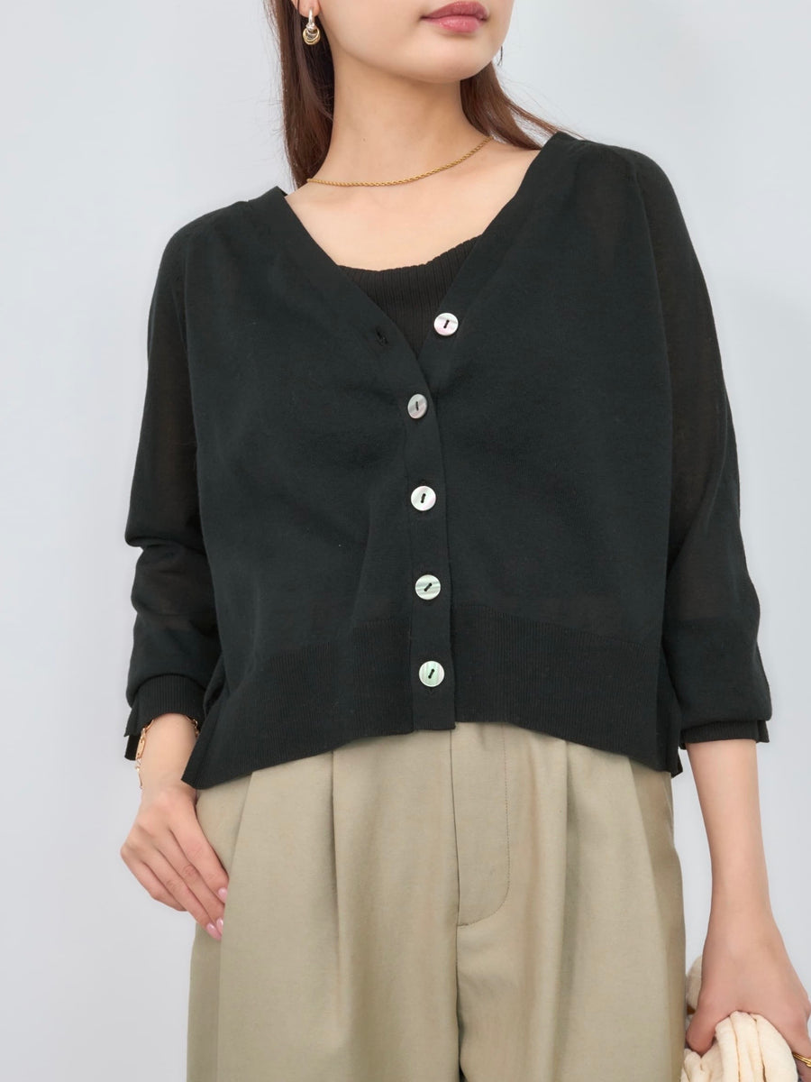 涼しげシアーのVネックニットカーデ