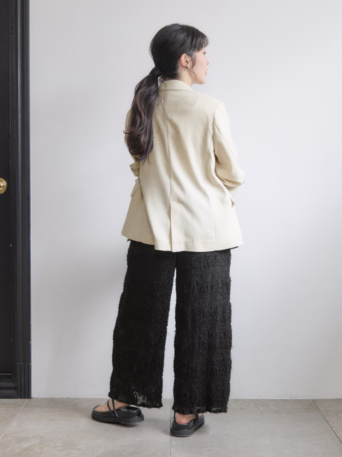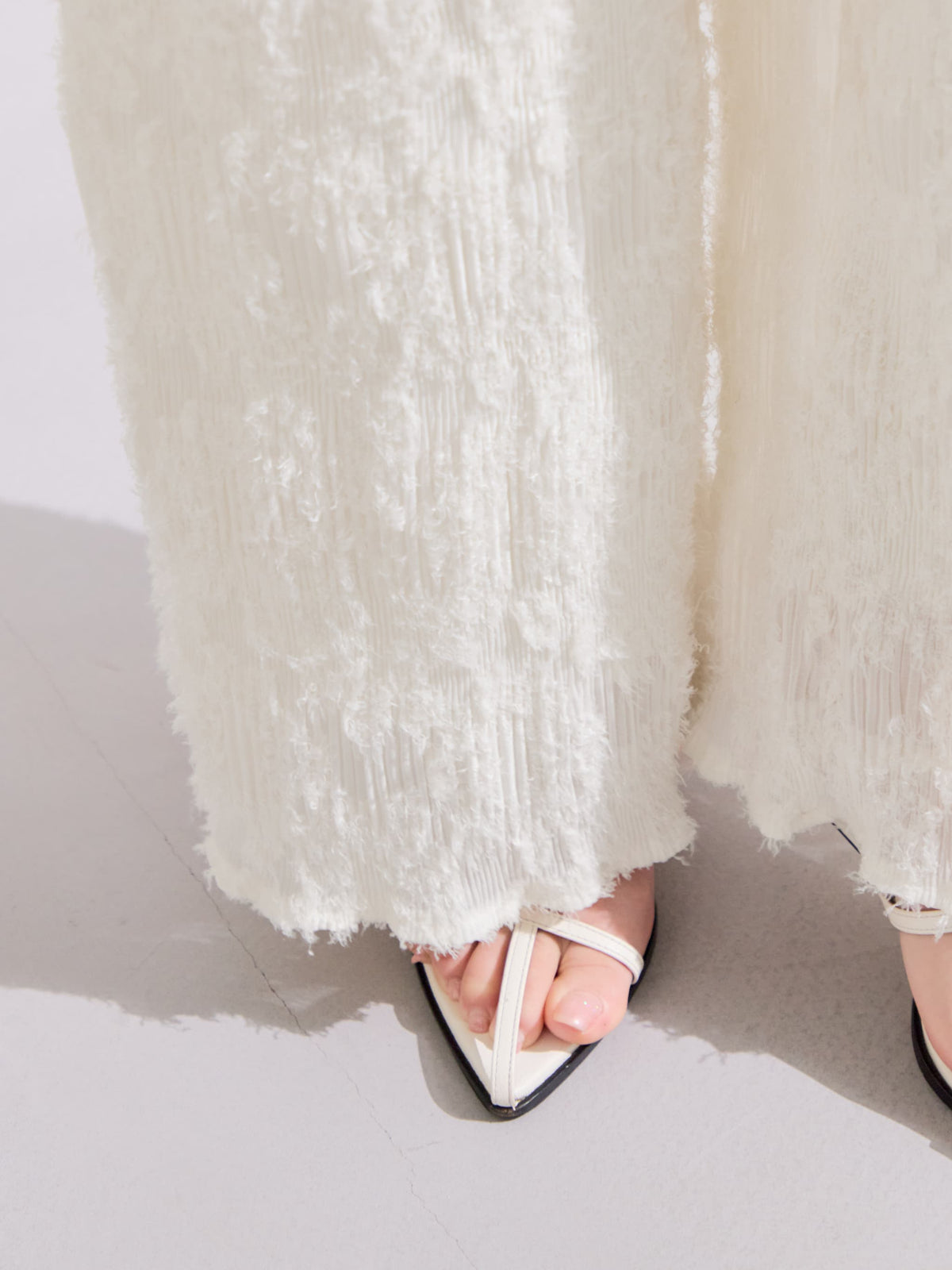 ※こちらが実物のカラーに一番お色味が近くなっております。(アイボリー)<br>149cm | B:77 W:60 H:83 股下:68.5 | regular着用 (ヒールの高さ:3.5cm)