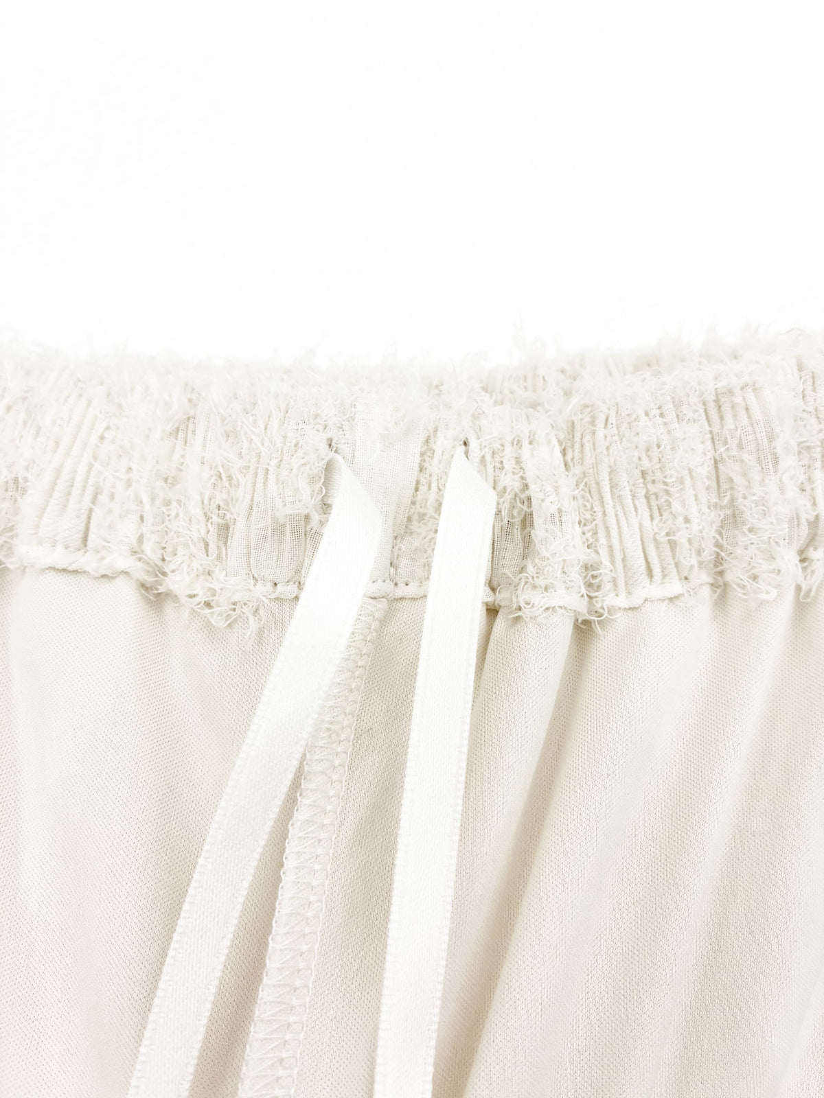 ・この製品に使用している素材は風合いをいかした大変デリケートな素材を使用しており、性質上破損されやすく激しい運動や極度な力が加われば、縫い目が開いたり、目寄れすることがあります。この点を十分ご留意の上、ご着用下さい。