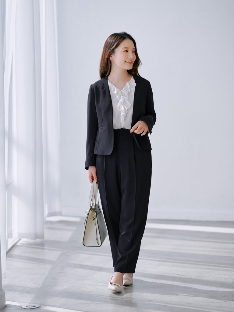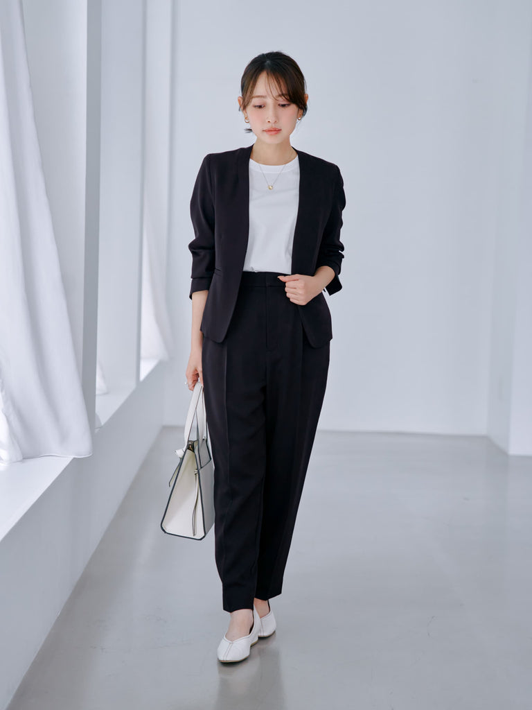 ※ネイビー/ブラックはソフトドビーシリーズ全てのアイテムとセットアップ着用可能です。 ピンクベージュのみ「ソフトドビーノーカラージャケット」とセットアップ着用可能です。