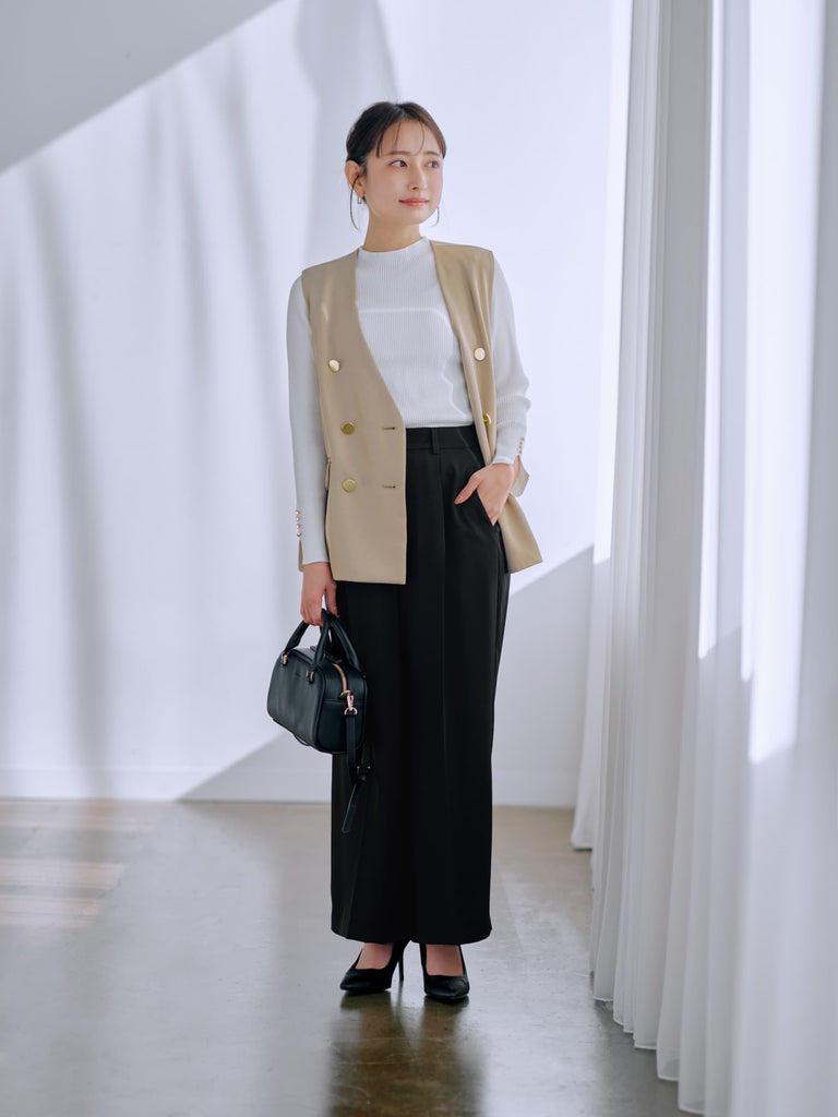 ※ネイビー/ブラックはソフトドビーシリーズ全てのアイテムとセットアップ着用可能です。 ピンクベージュのみ「ソフトドビーテーパードパンツ」「【cahoさんコラボ】ソフトドビーアシメラッフルワンピース」とセットアップ着用可能です。