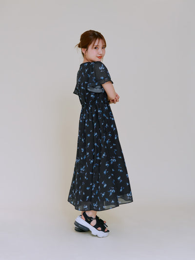 シャドーフラワーマチフレアワンピース -short & regular [通常]