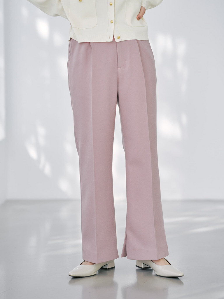 トーンの異なるピンクを重ねた、奥行きのあるワントーンコーデ。