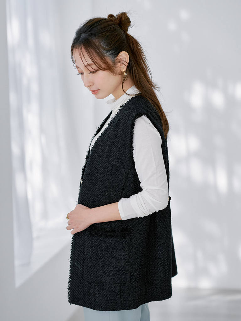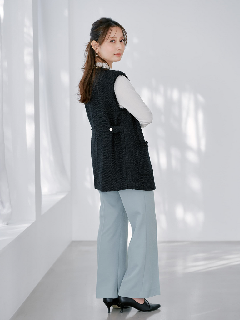 爽やかな配色に、ジレを重ねてきちんと感をプラス。