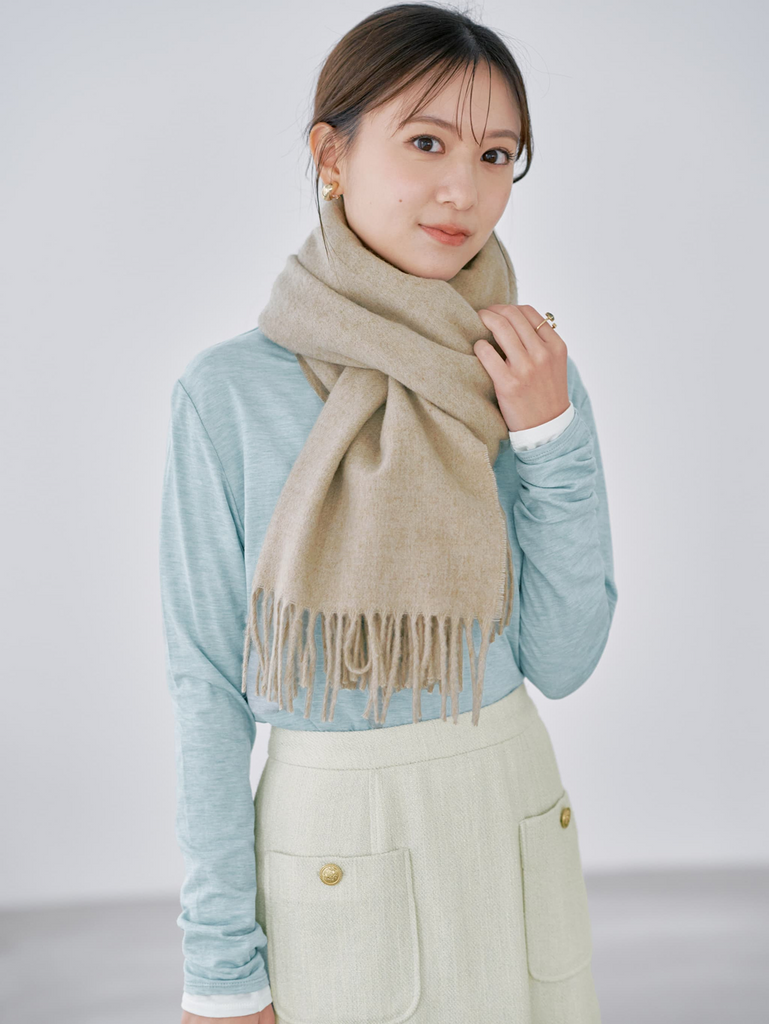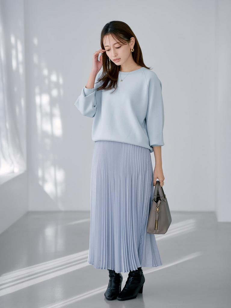 淡いカラー同士を組み合わせた、やさしく上品なコーディネート。